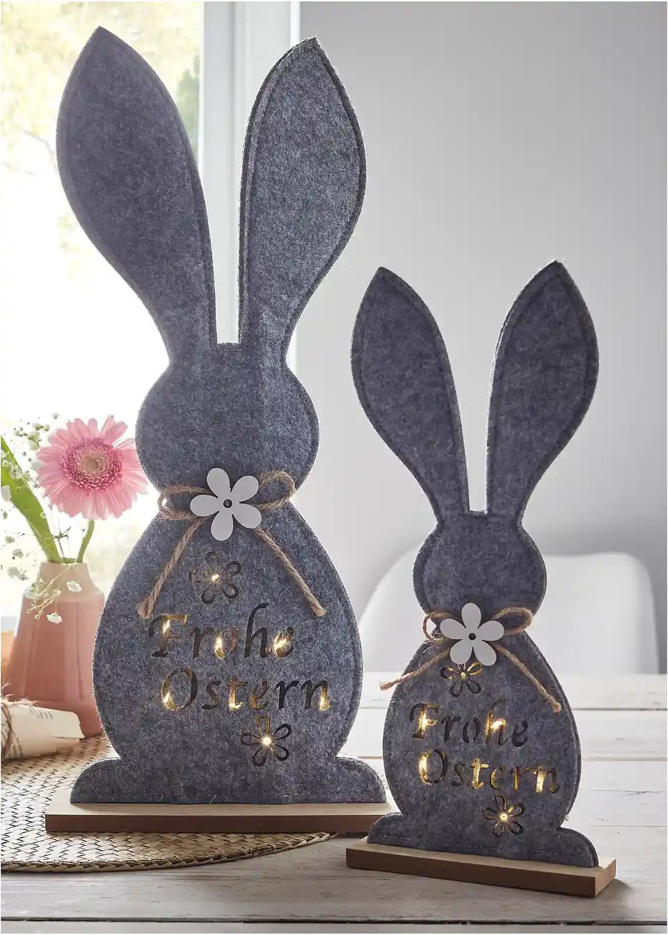 Lijepa uskrsna dekoracija - 2 LED zeca s natpisom "Frohe Ostern"