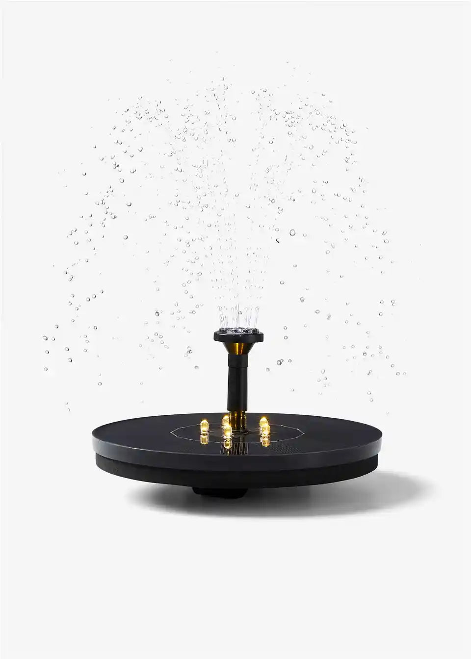 Mala fontana za vrt, terasu ili balkon s LED rasvjetom. S različitim nastavcima za različite prikaze vodenog mlaza. Jednostavno stavite LED solarnu fontanu u vodu i odmah je spremna za rad. Uključuje 1 x Li-ion bateriju, 3.7V 200mAh, s prekidačem za uključivanje/isključivanje.