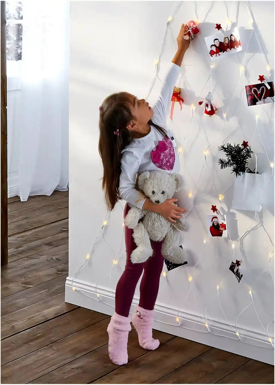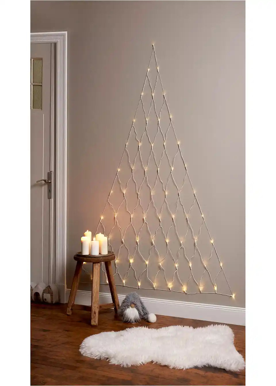 Ukupno 66 toplobijelih LED lampica pričvršćeno je na ovu božićnu mrežu za zid i vrata u obliku drvca. Ova svjetleća mreža namijenjena je isključivo za unutarnje prostore. Može se pričvrstiti na razna vrata ili zidove pomoću vakuumskih kukica i tako unijeti blagdanski ugođaj u svaku prostoriju. Po želji, mreža se može dodatno ukrasiti raznim dodacima poput kuglica ili božićnih privjesaka. LED zidni i vrata ukras u obliku drvca je moderan naglasak koji svakoj prostoriji daje blagdanski sjaj.