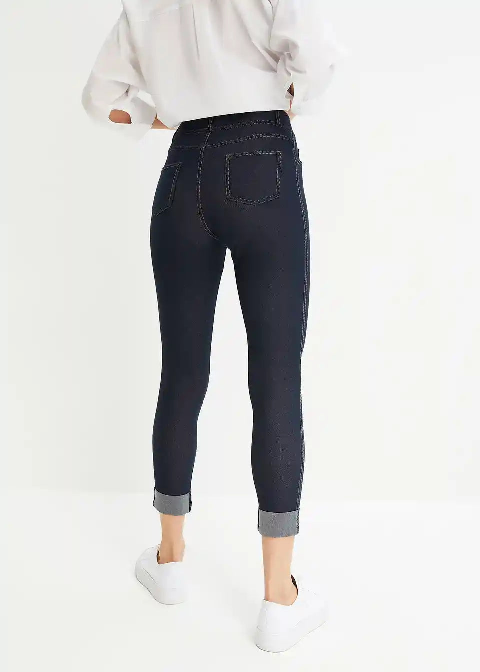 Moderne Leggings u izgledu traperica marke RAINBOW oduševljavaju uskim krojem. Jeggings, kombinacija hlača od trapera i Leggings, potpuno su u trendu i savršeno spajaju prednosti obje vrste hlača: cool izgled trapera i nenadmašnu udobnost nošenja Leggings. U kombinaciji s majicom i visokim petama, ove vrlo uske hlače mogu se uklopiti u jedinstveni outfit.