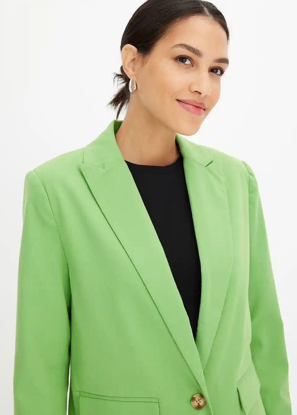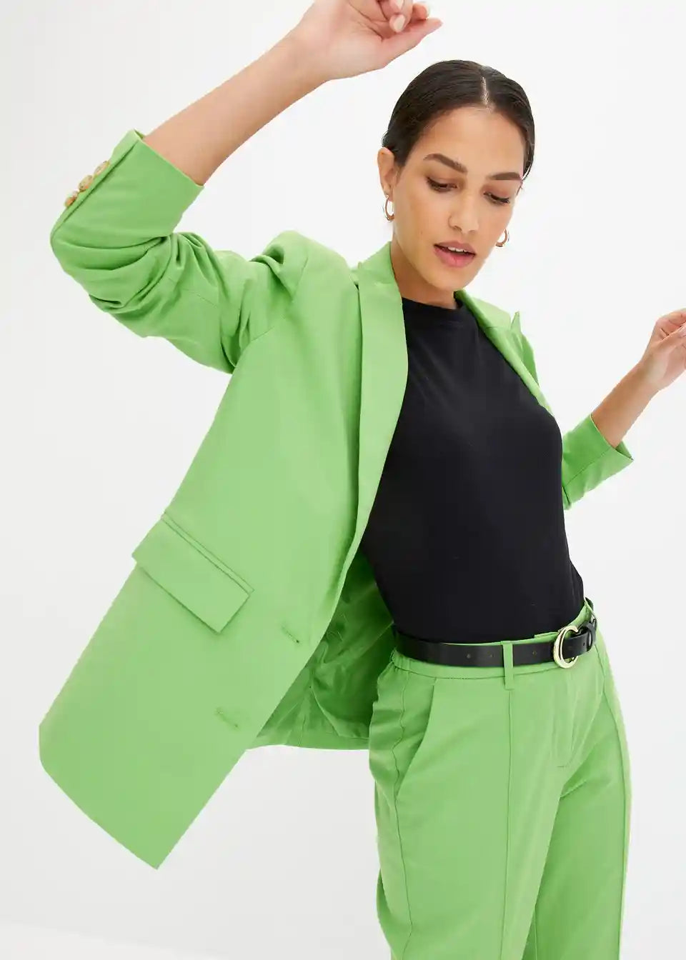 Model je visok 1,76 m i nosi veličinu 36.