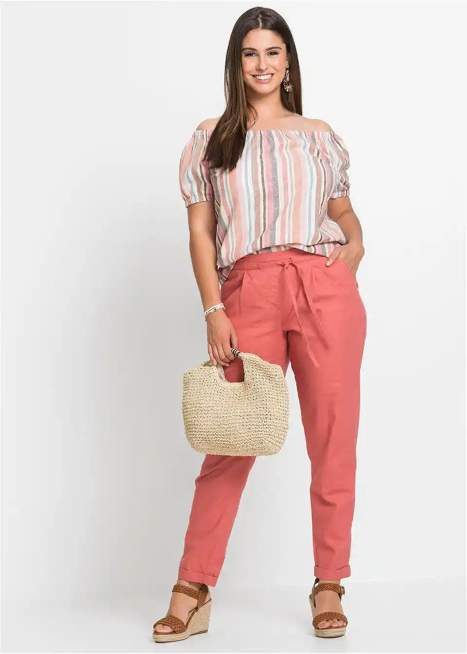 Ljetne lanene hlače s elastičnim pojasom
