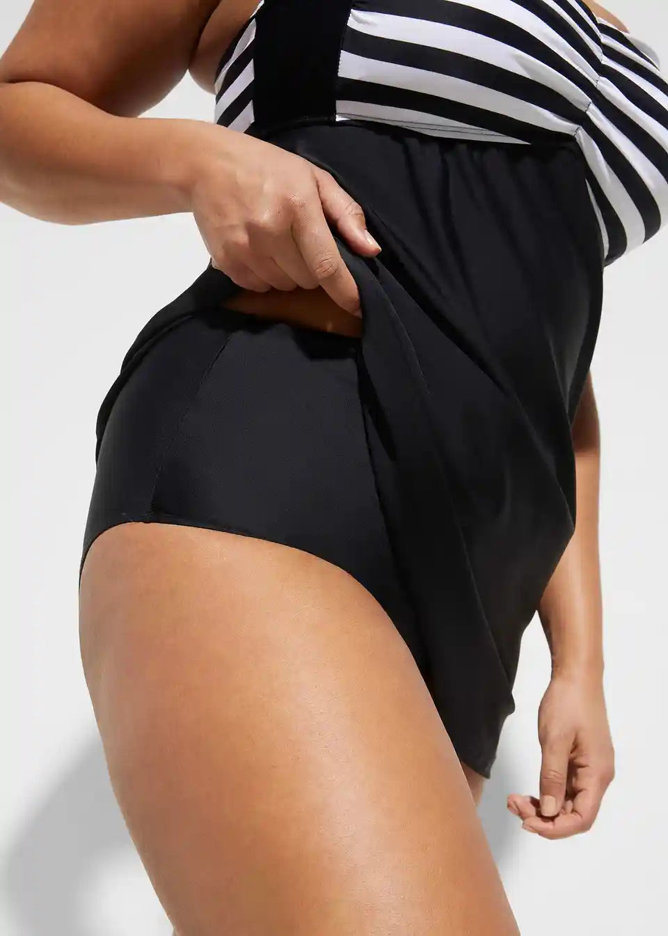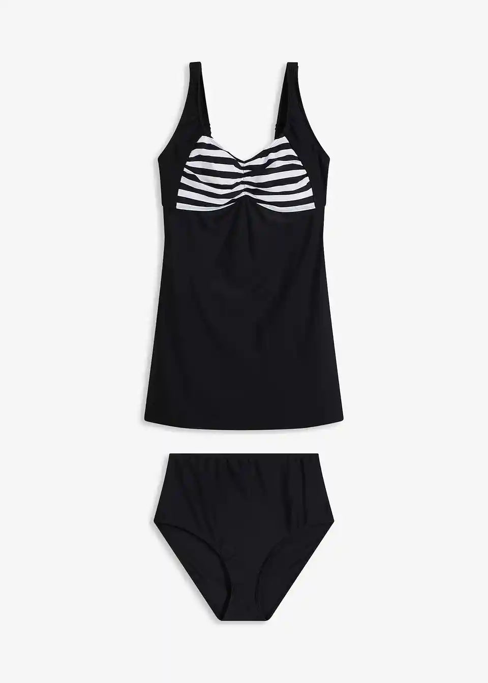 Ovaj vizualno privlačni Long Tankini impresionira posebnim osjećajem ugodnosti pri nošenju. To omogućuju duži, široko krojeni gornji dio i hlače s visokim strukom koji lijepo prikrivaju. Gornji dio s podesivim naramenicama donosi privlačan kontrast boja. Postava na području grudi, uklonjivi mekani košarice i guma ispod grudi pružaju dobru potporu i nježno oblikuju. Hlače s postavom na području prepona upotpunjuju ovaj Long Tankini iz BPC kolekcije.