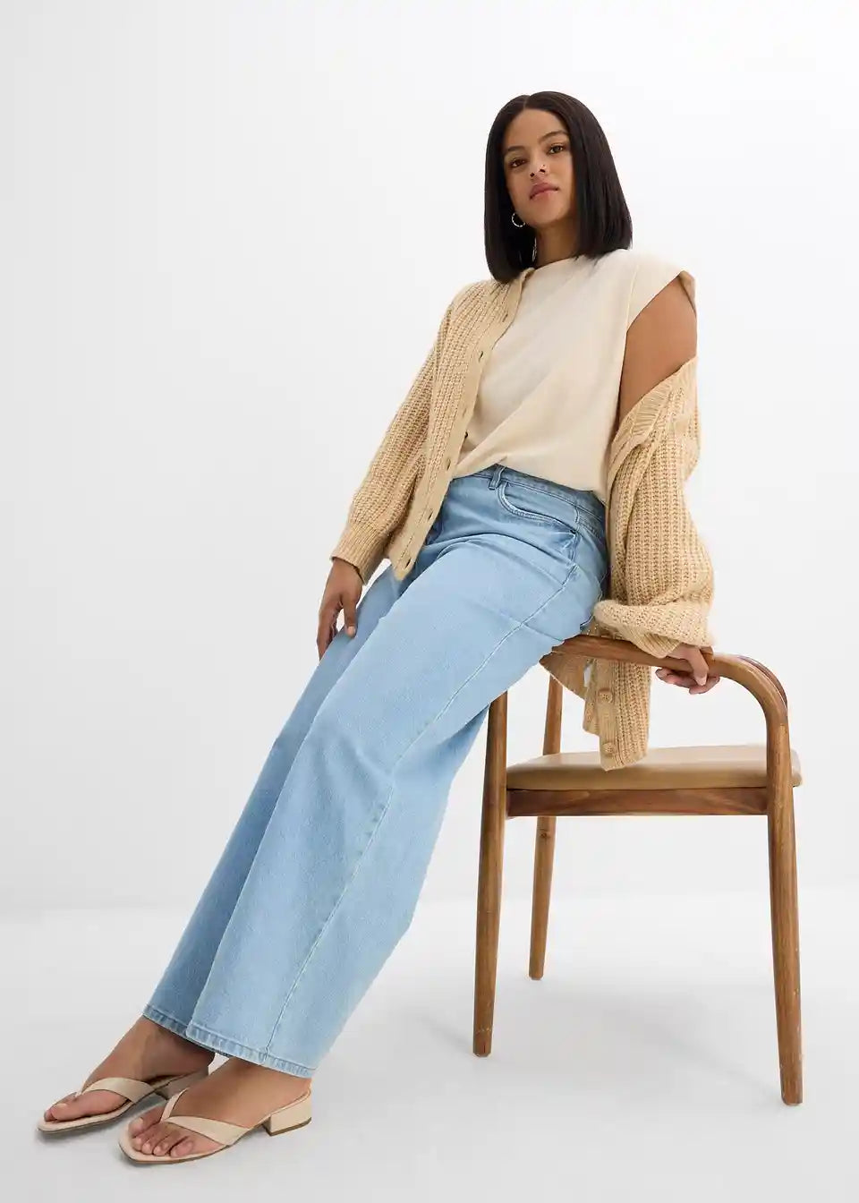 Komotne traperice ravnog kroja sa srednje visokim strukom