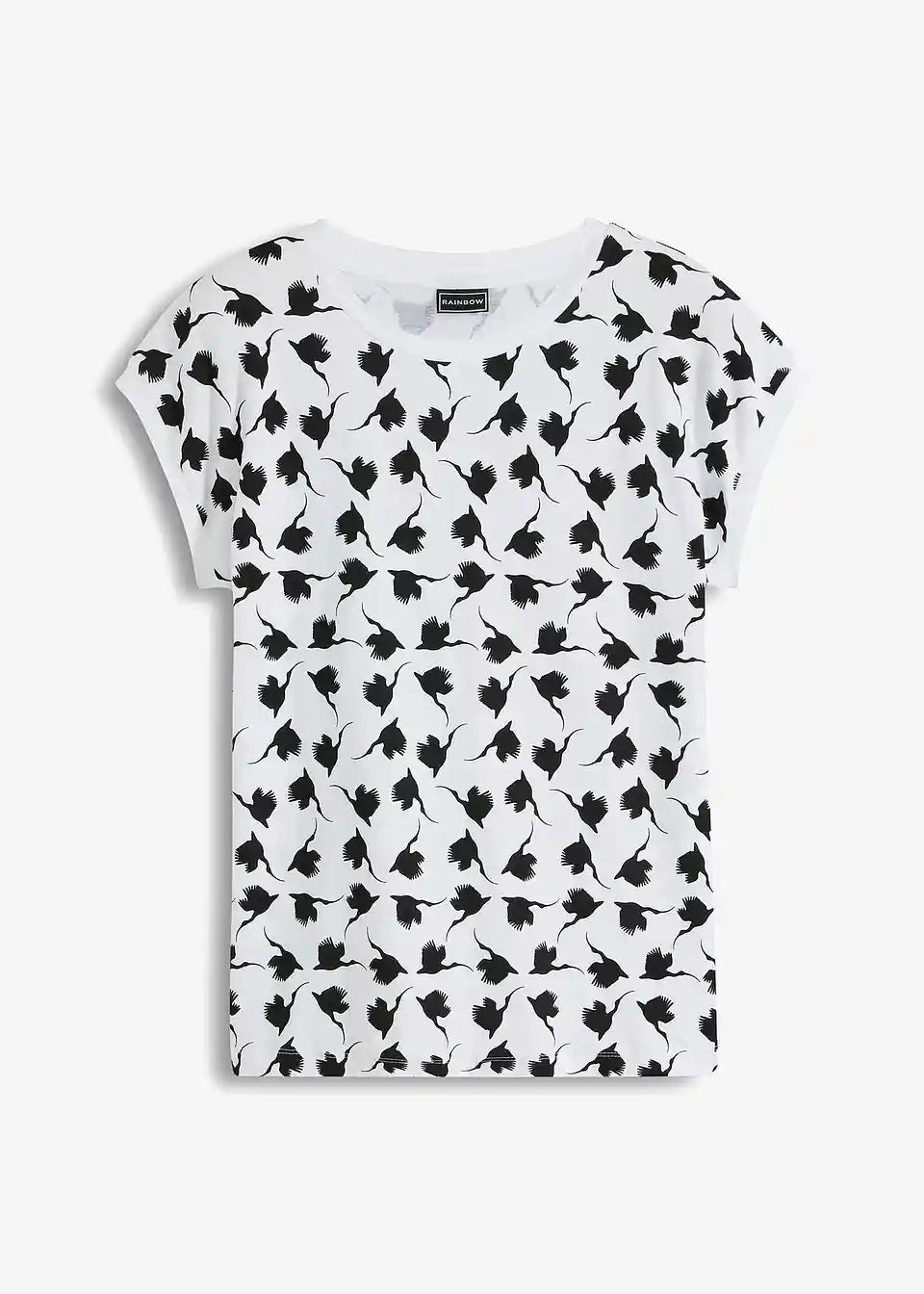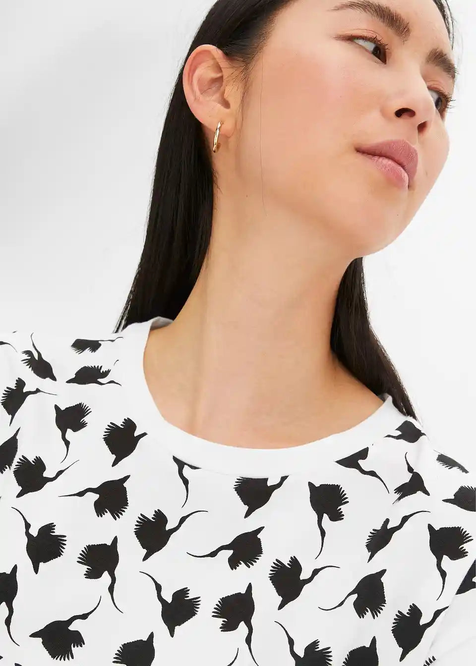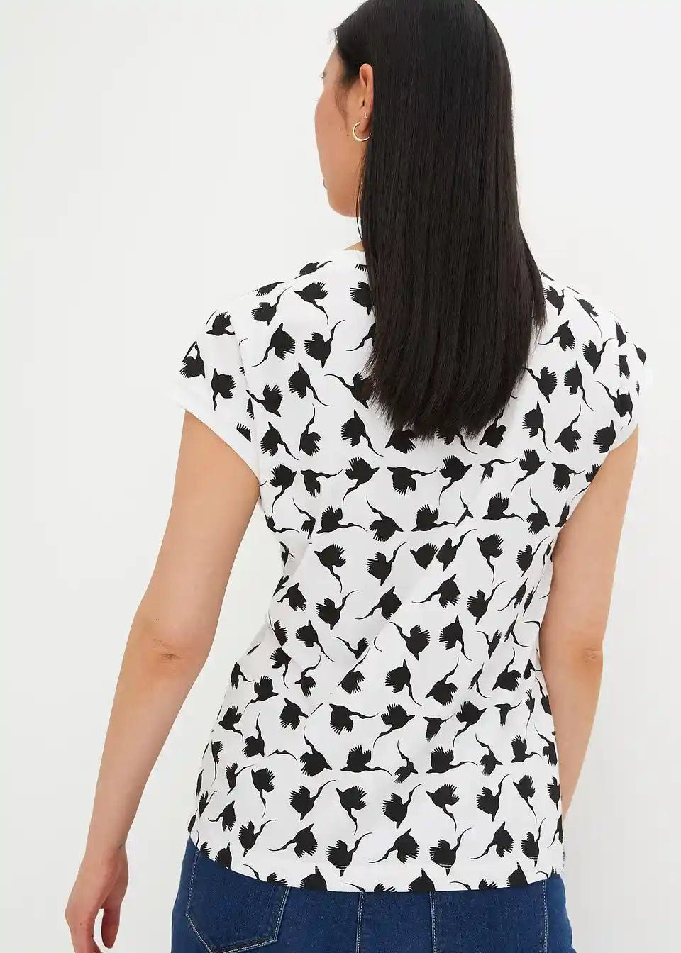 Udobna mješavina pamuka. Za mnoge prigode. S uzorkom sidra po cijeloj površini. Ležerno krojena. Okrugli izrez. Kratki rukav. Duljina mjereno na leđima u veličini 40/42 cca. 66 cm.