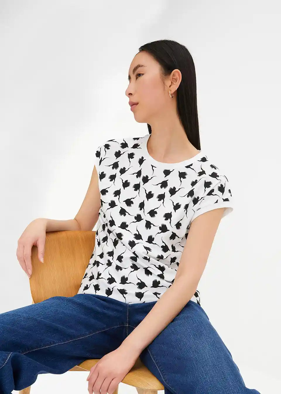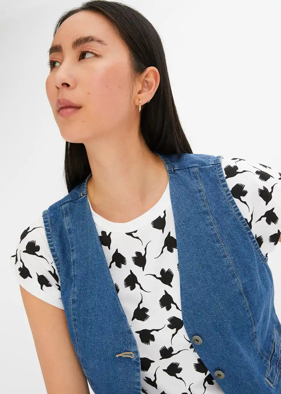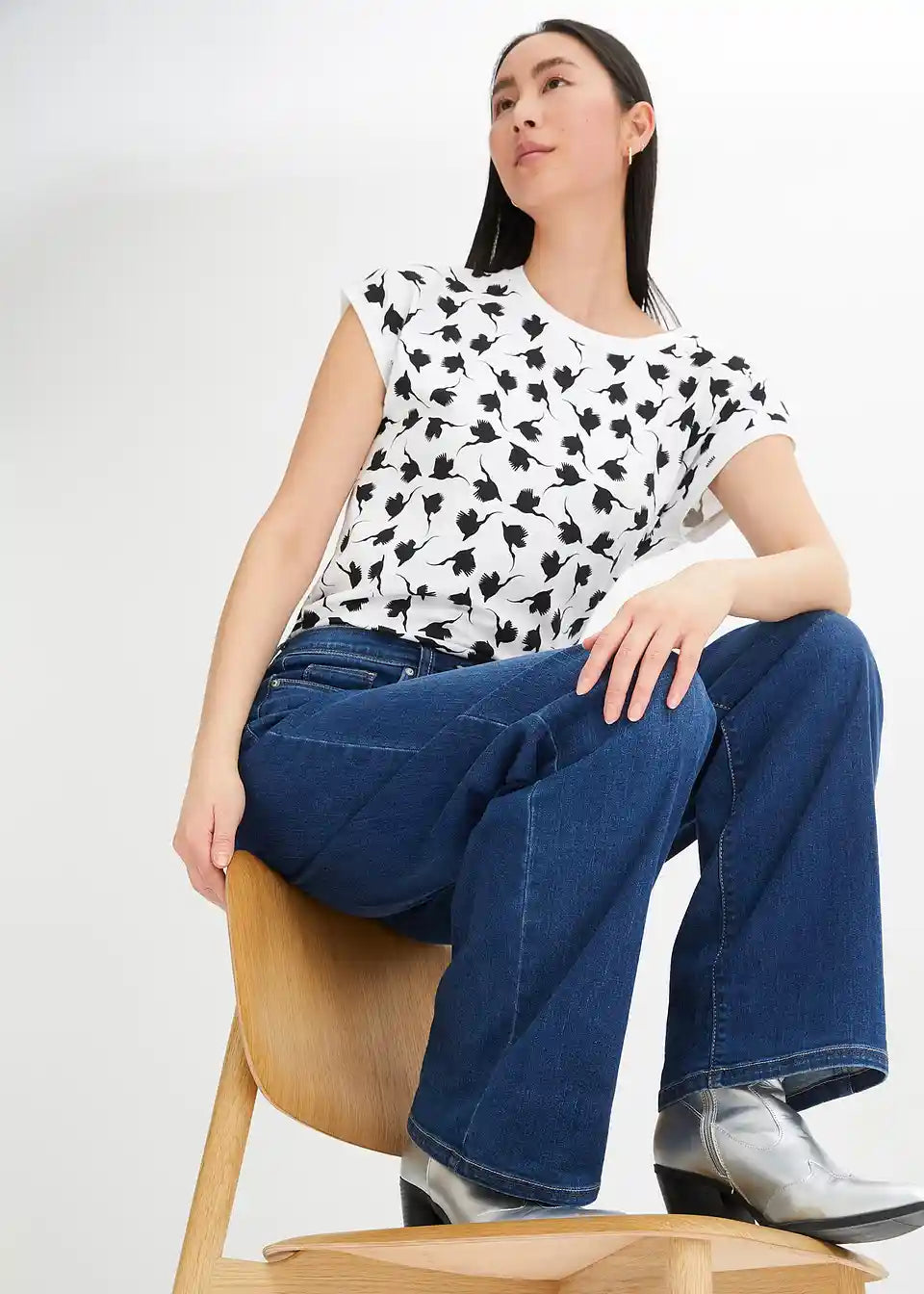 Udobna mješavina pamuka. Za mnoge prigode. S uzorkom sidra po cijeloj površini. Ležerno krojena. Okrugli izrez. Kratki rukav. Duljina mjereno na leđima u veličini 40/42 cca. 66 cm.