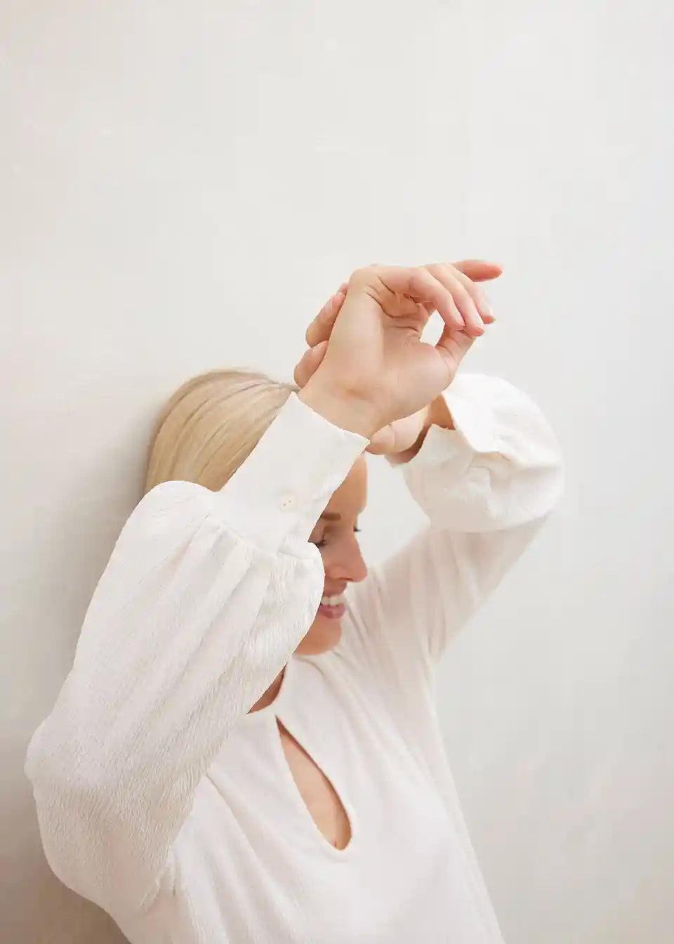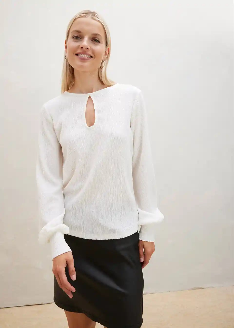 Šarmantna majica dugih rukava s balon rukavima i cut-out detaljem na dekolteu