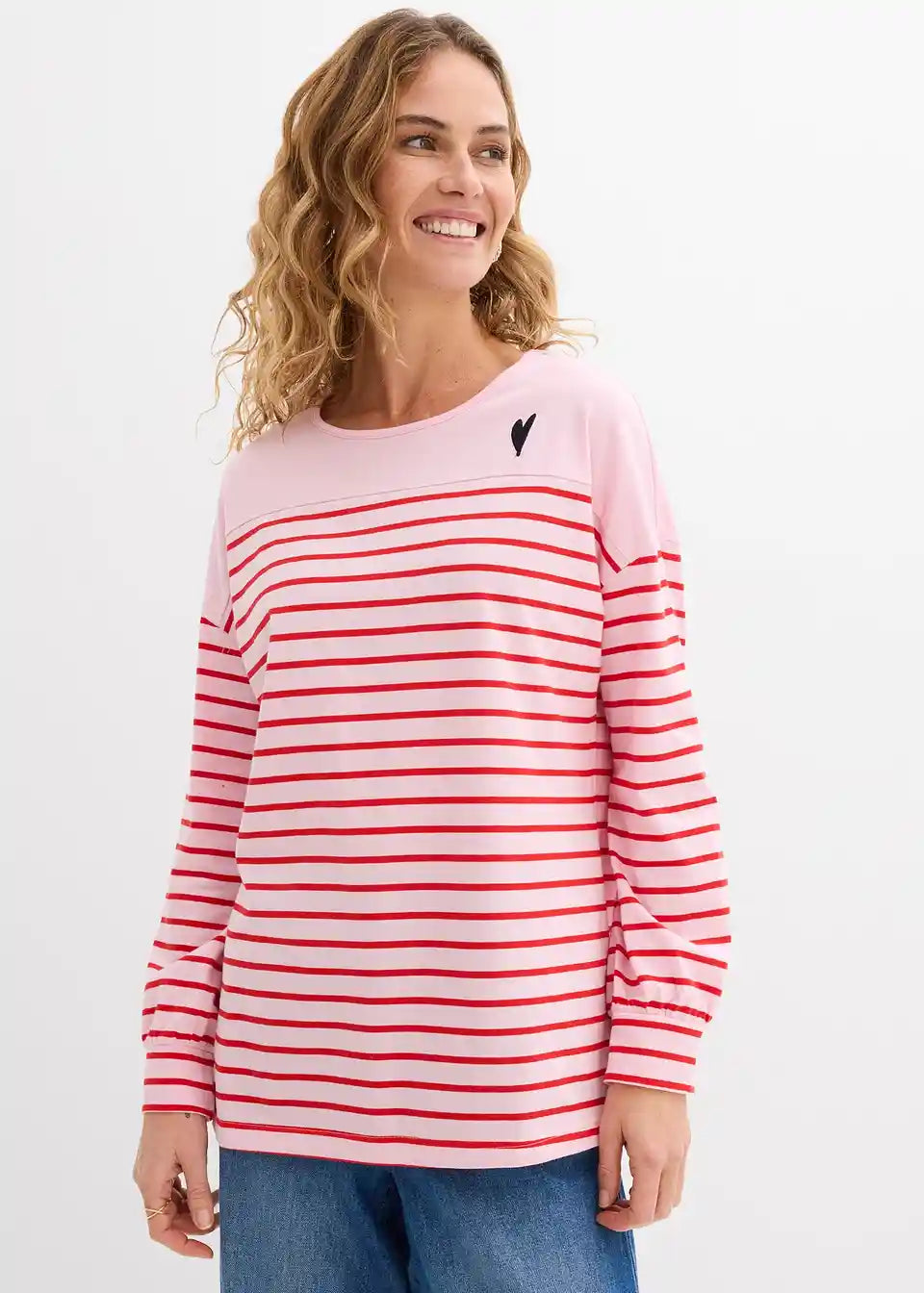 Prugasta majica dugih rukava s detaljem srca