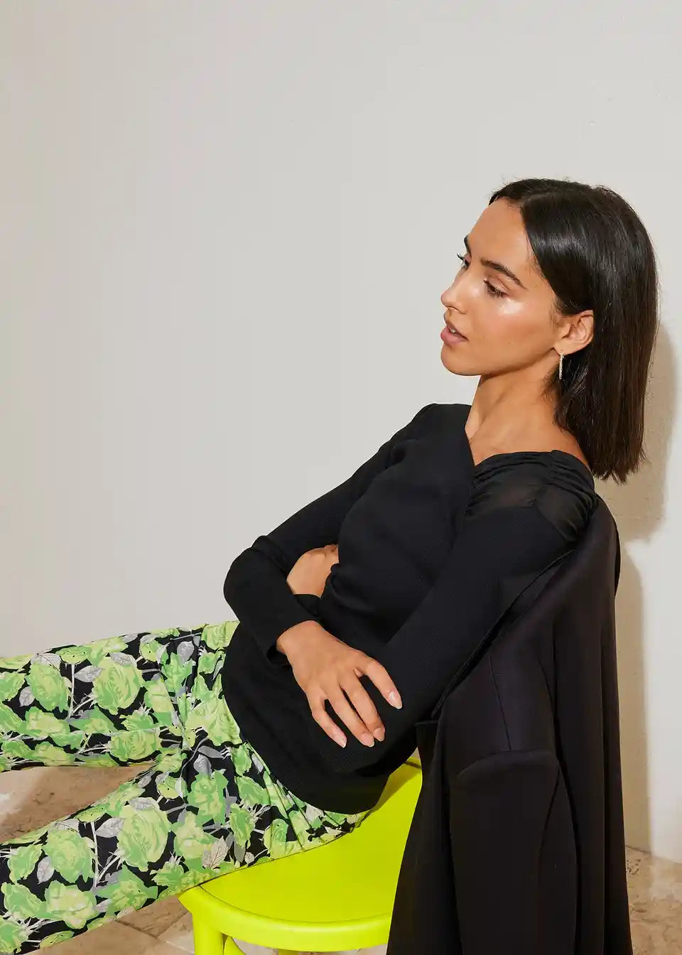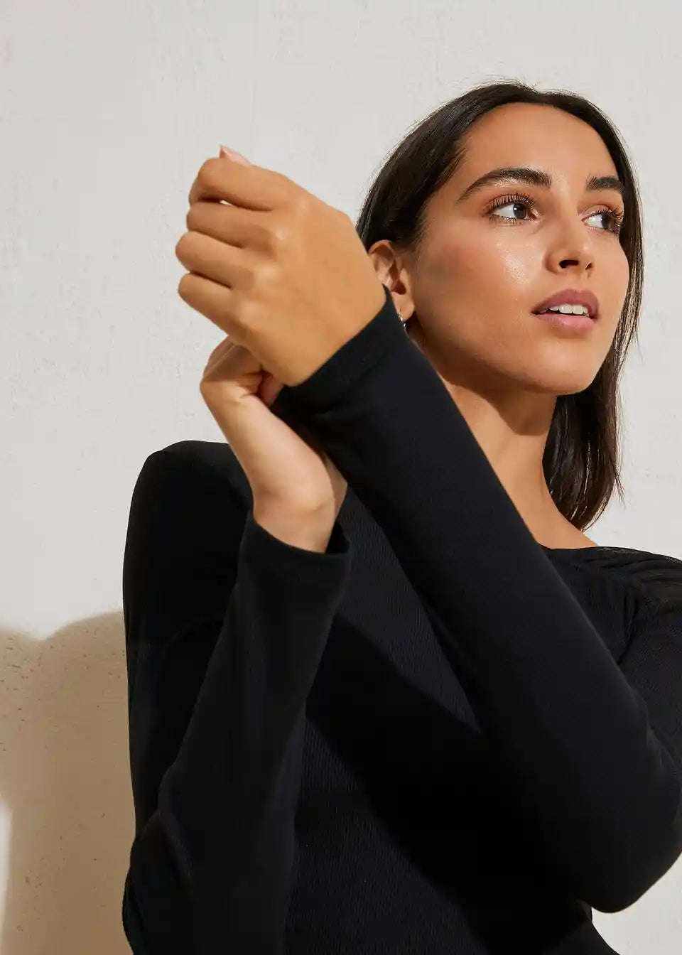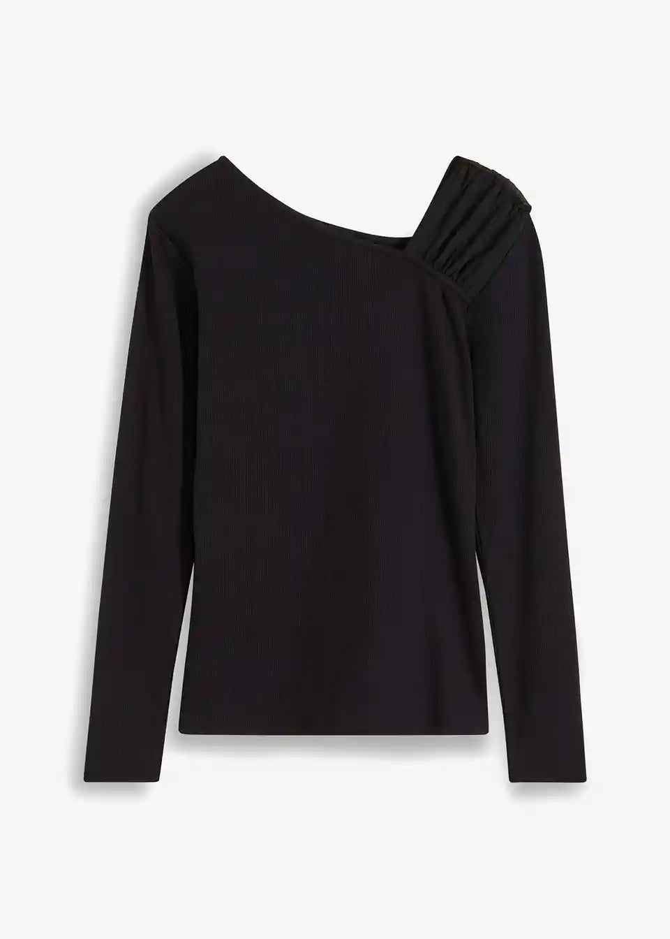 Moderna majica dugih rukava s efektnim umetkom od mreže na ramenu.