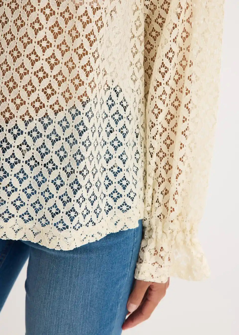 Moderna bezvremenska majica od visokokvalitetne čipke s uzbudljivim volanima