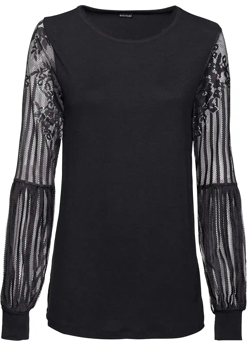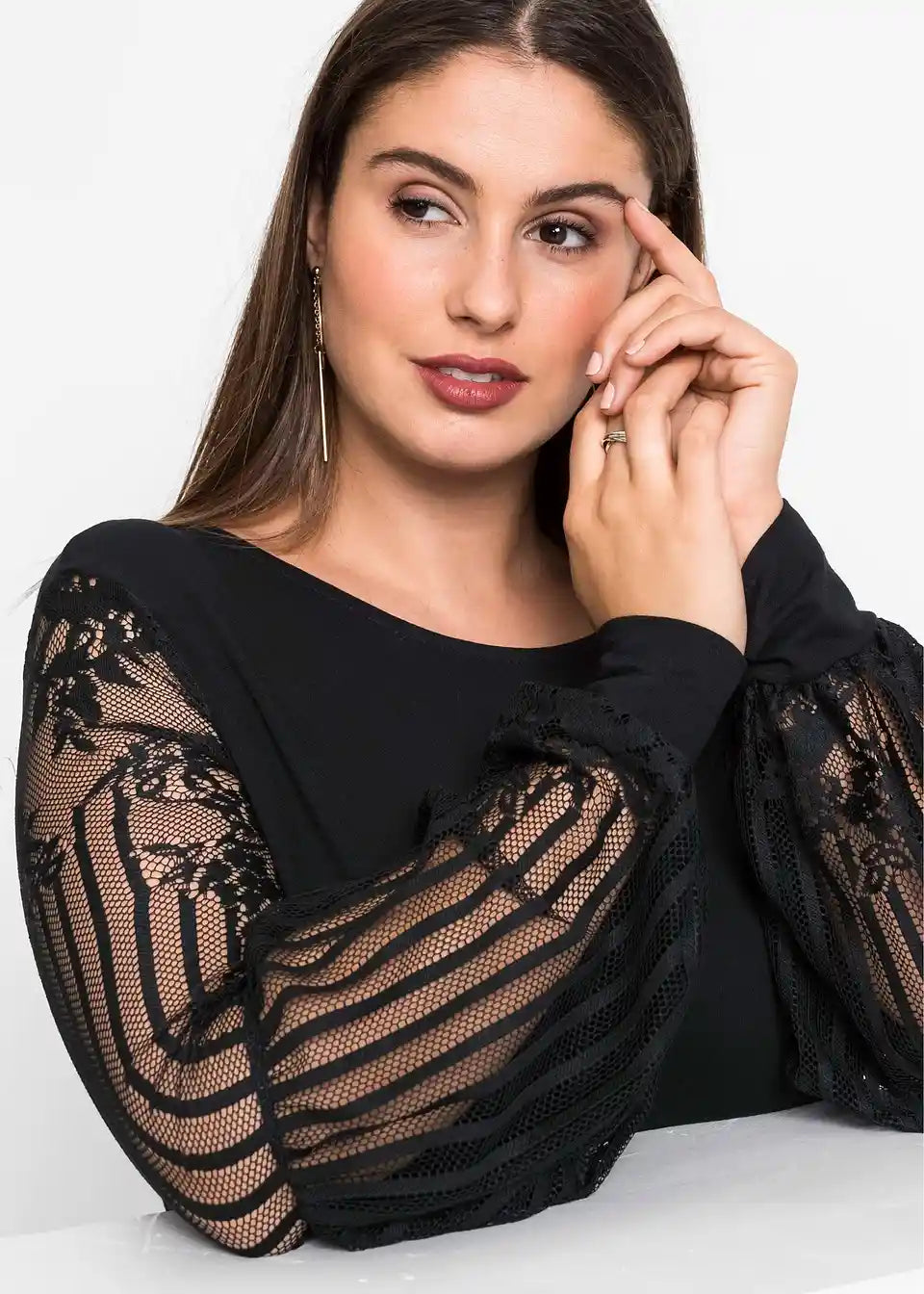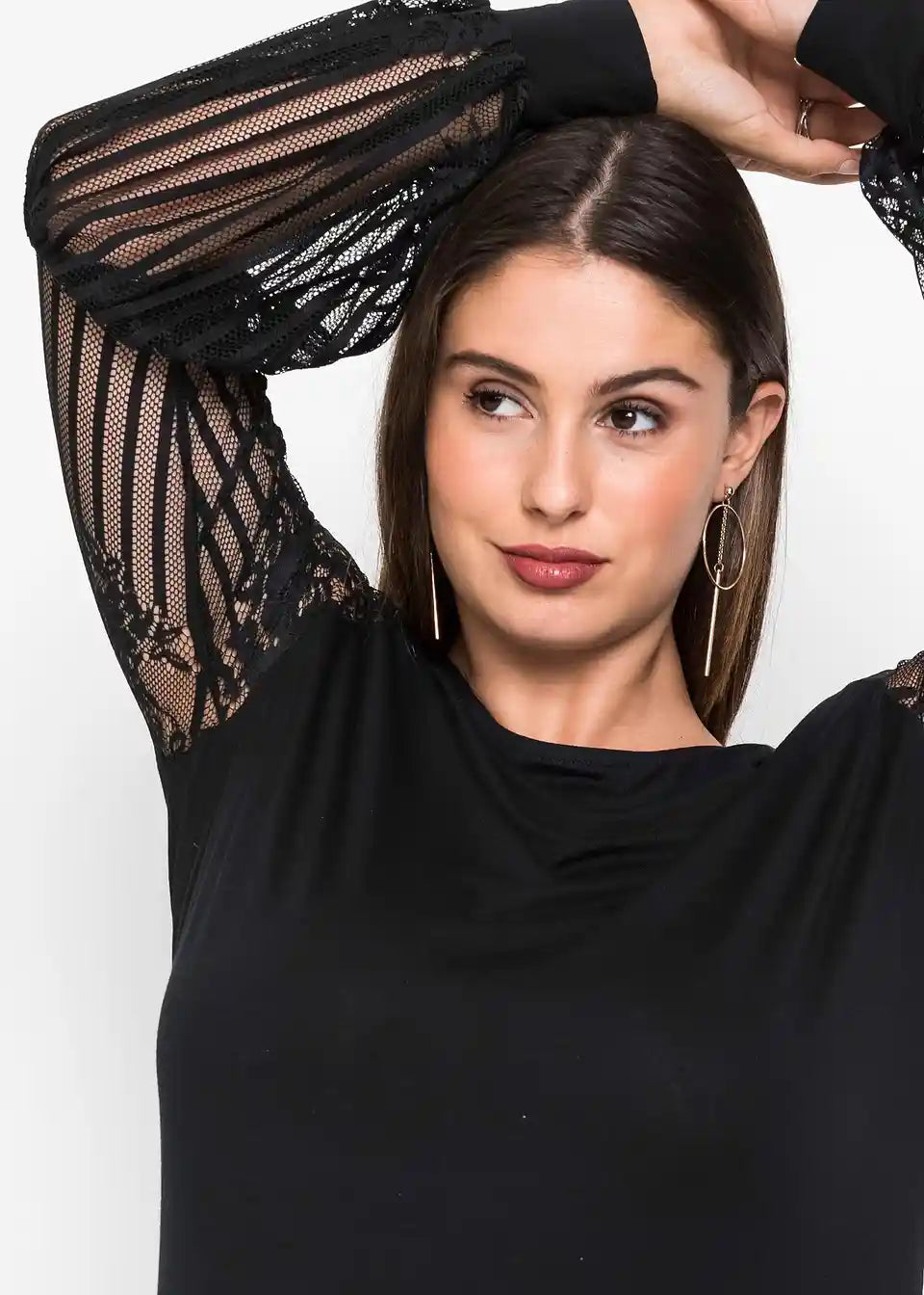 Elegantna majica s dugim rukavima i balon rukavima od čipke