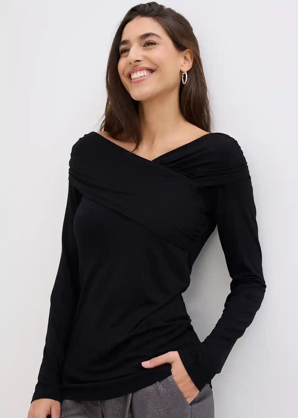 Majica s dugim rukavima i profinjenim šal ovratnikom