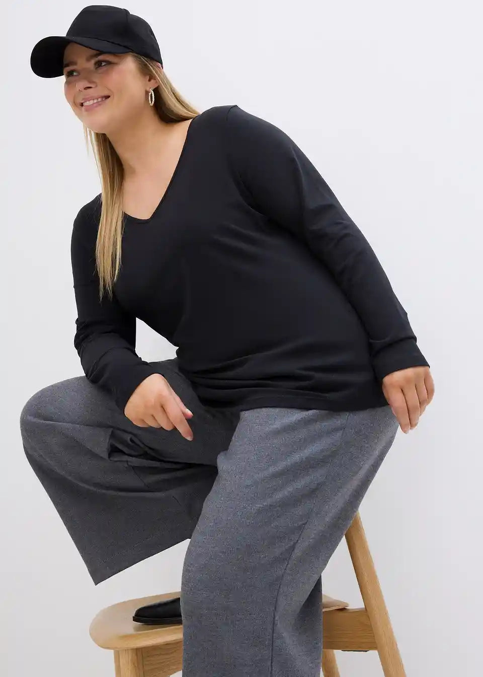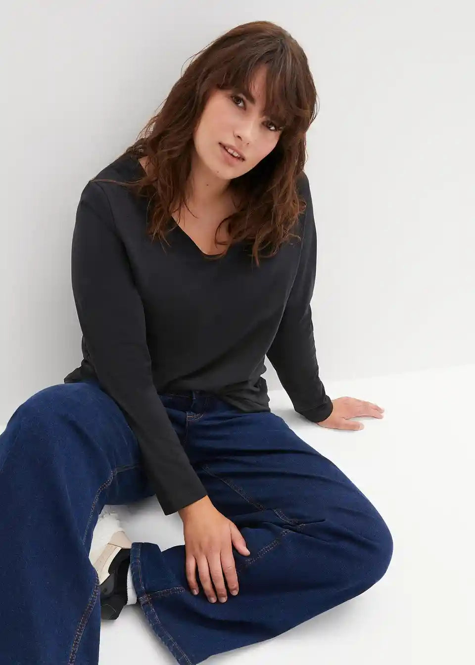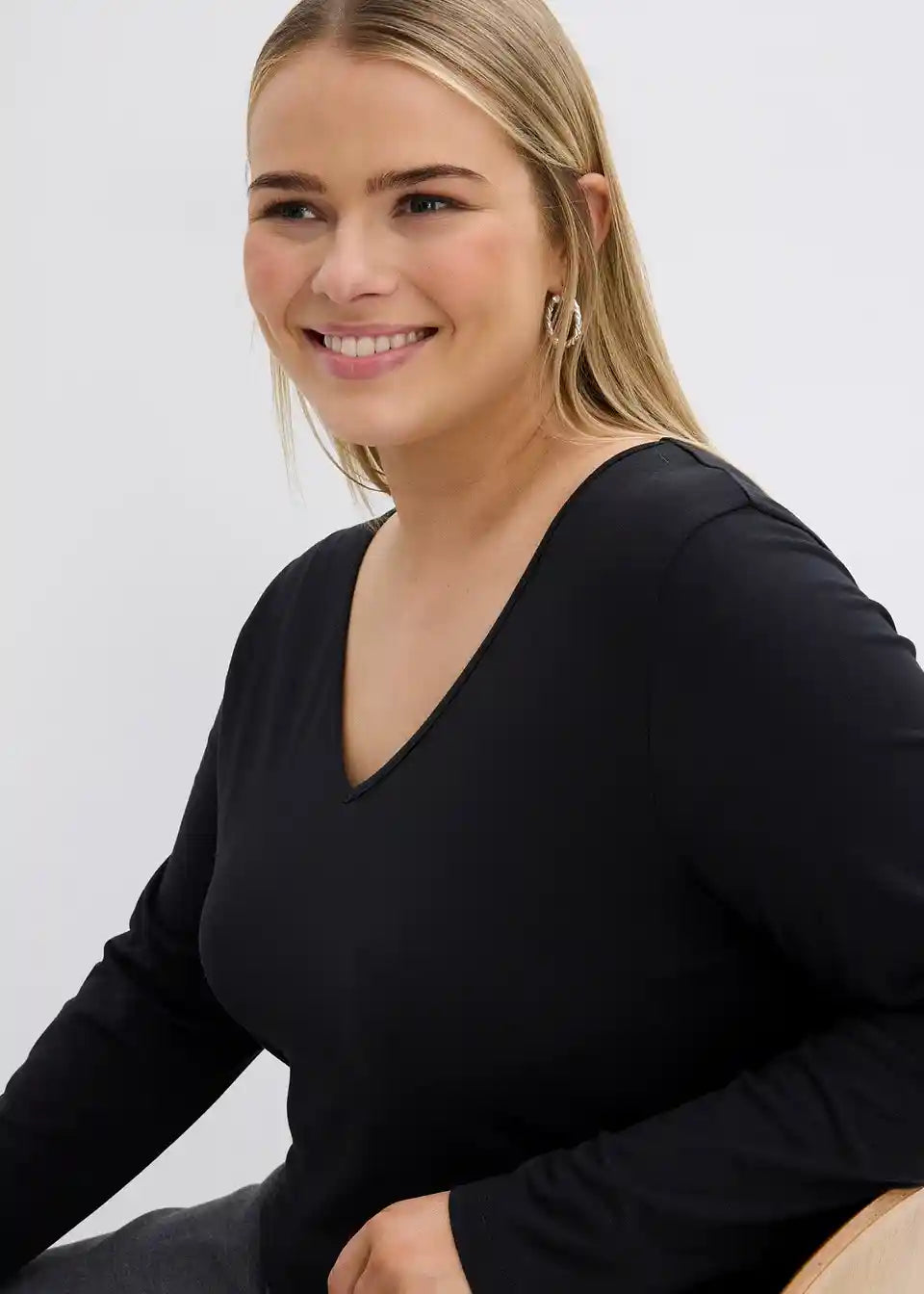 Klasična majica s dugim rukavima i V-izrezom, pakiranje od 2 komada