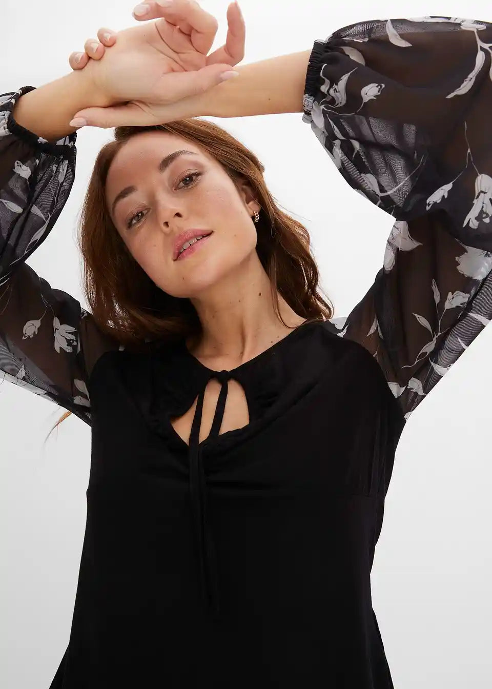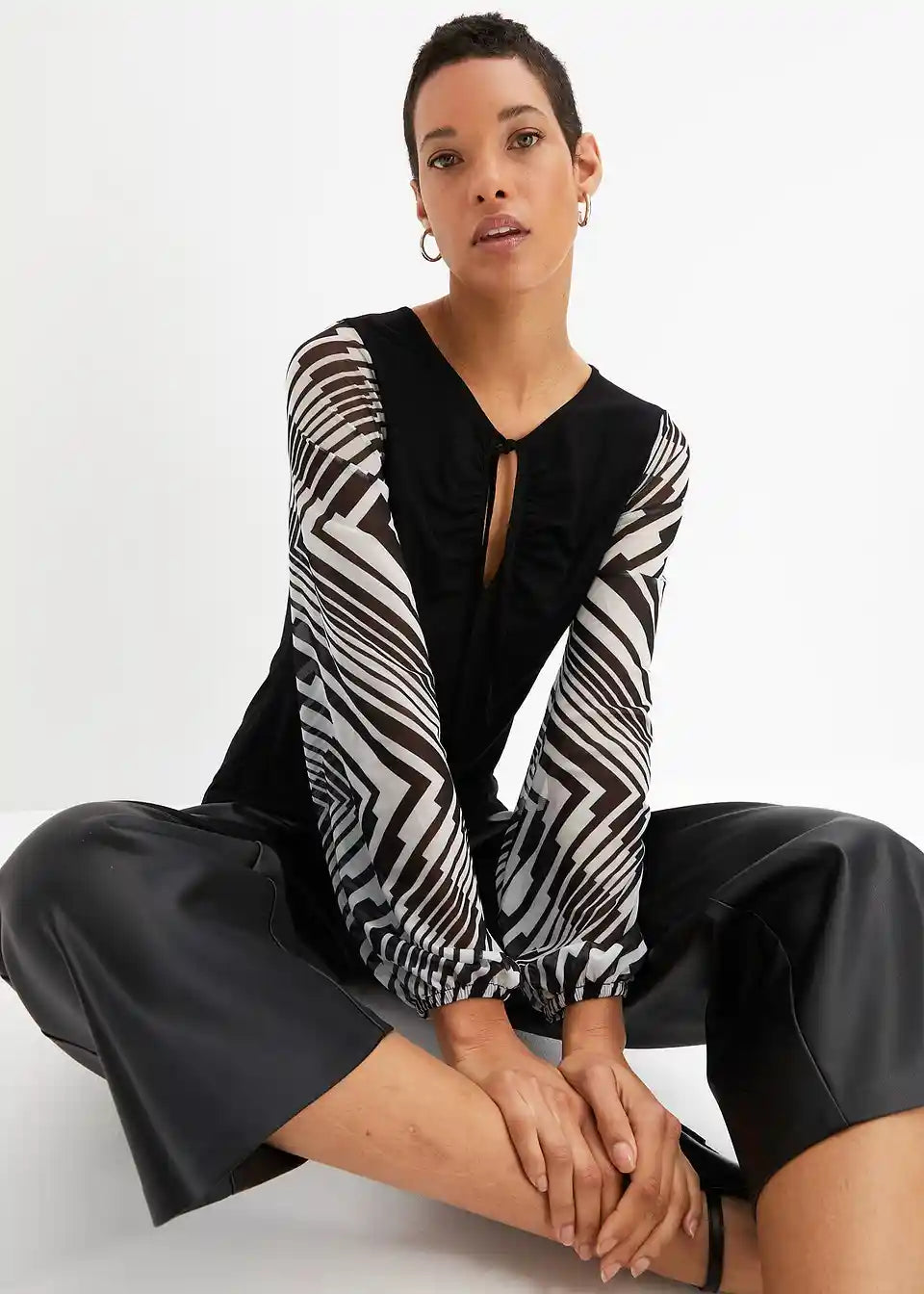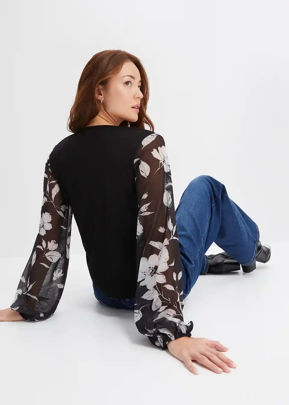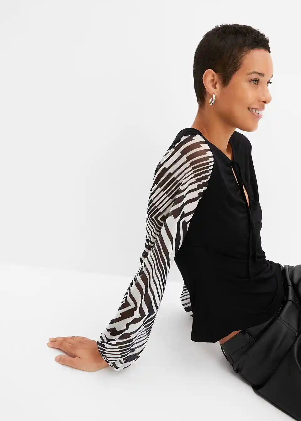 Moderna majica od održive viskoze. Široki rukavi od prekrasne mrežaste tkanine su lagano prozirni.