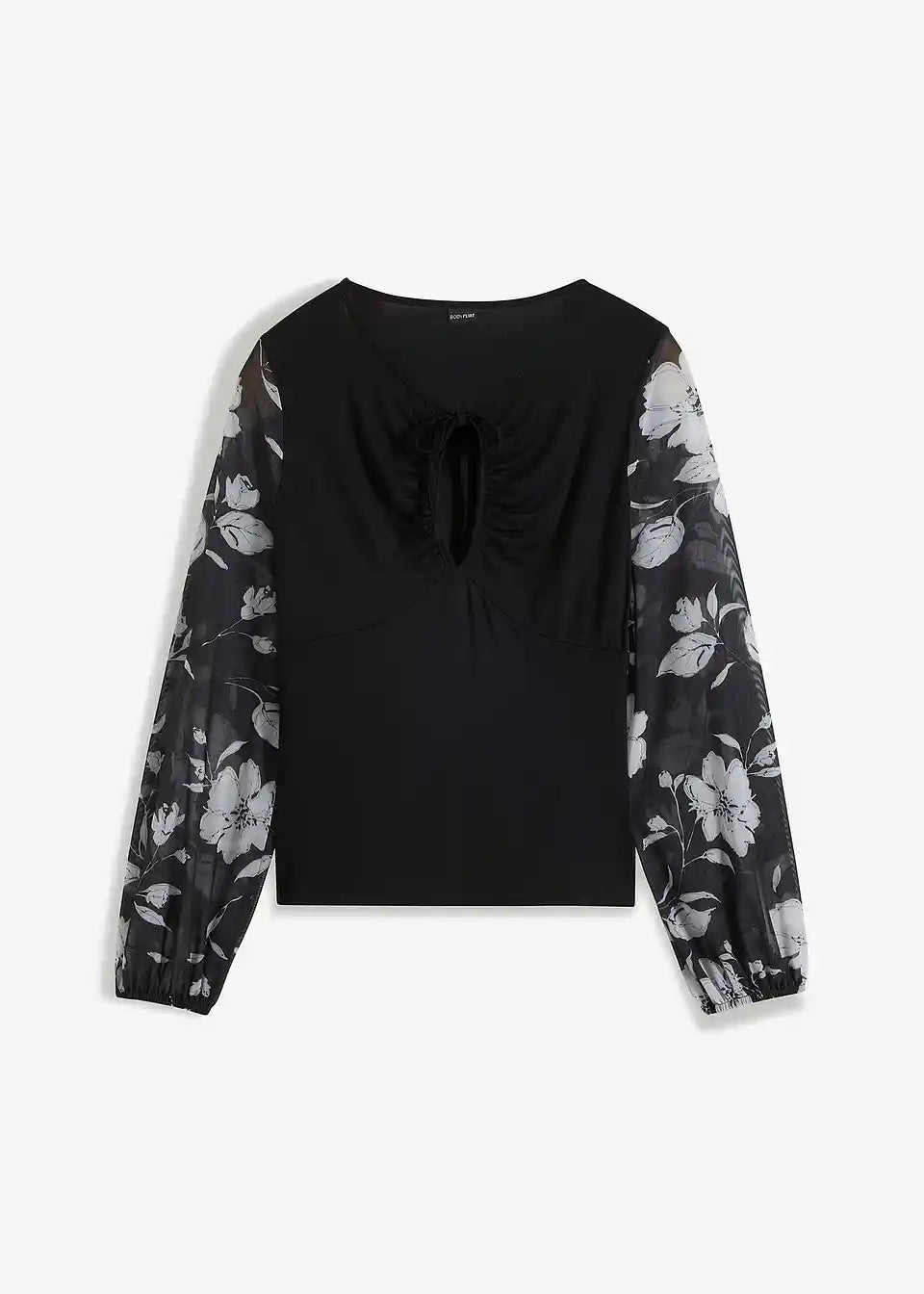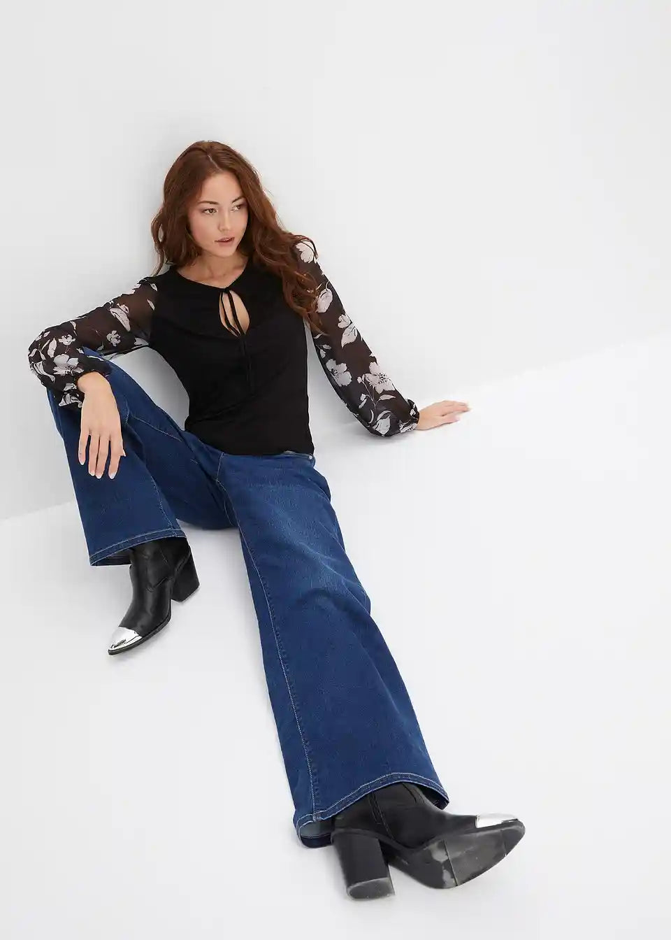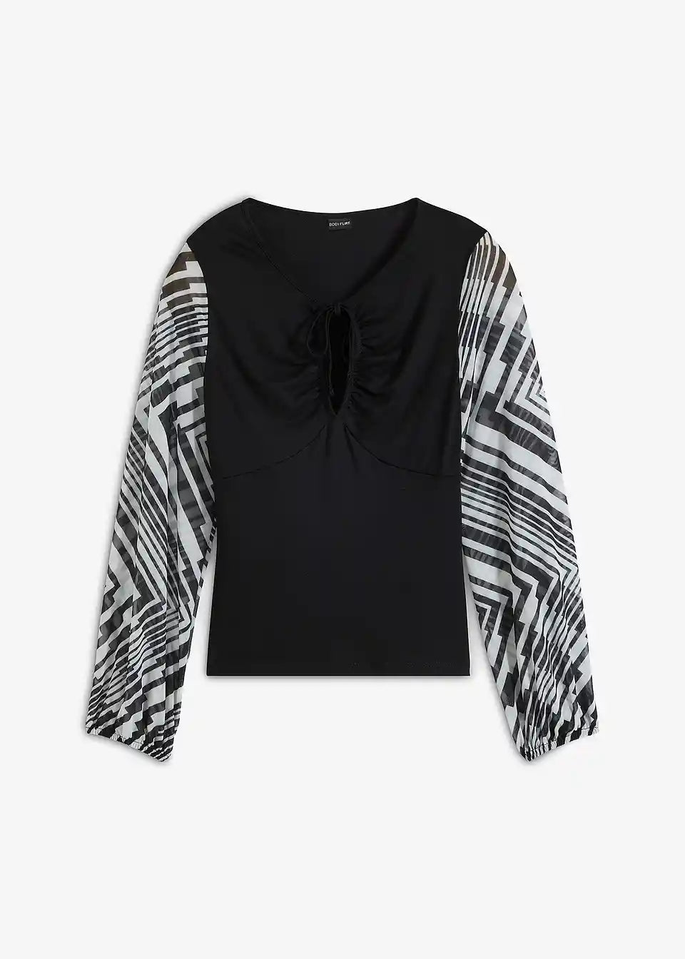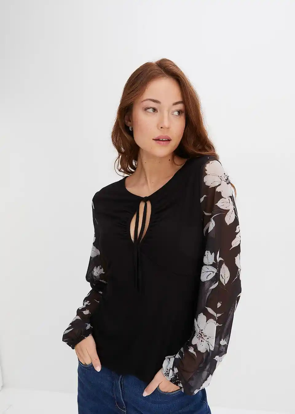 Moderna majica od održive viskoze. Široki rukavi od prekrasne mrežaste tkanine su lagano prozirni.