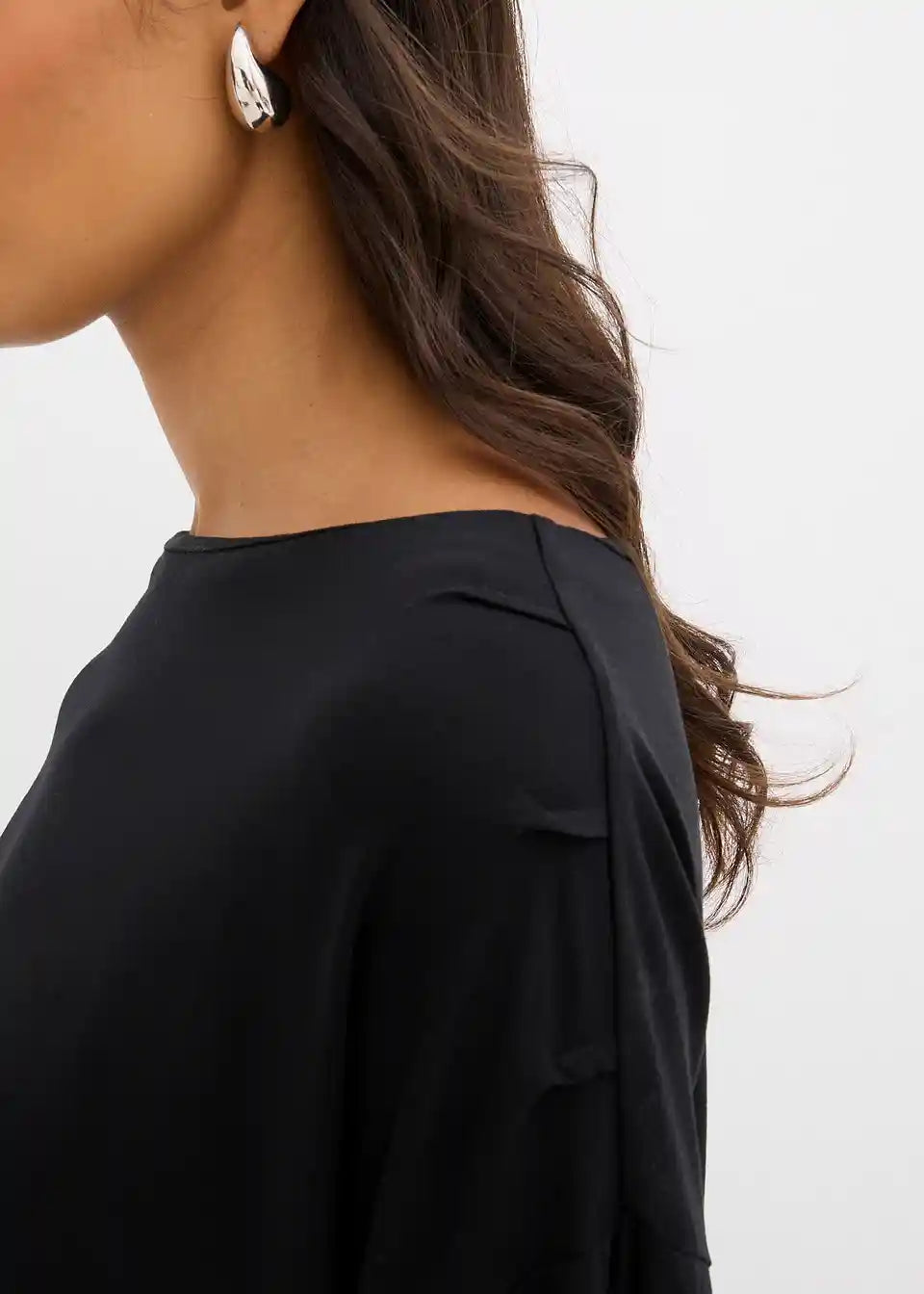 Majica s dugim rukavima uskog kroja s okruglim izrezom i naborima na ramenima