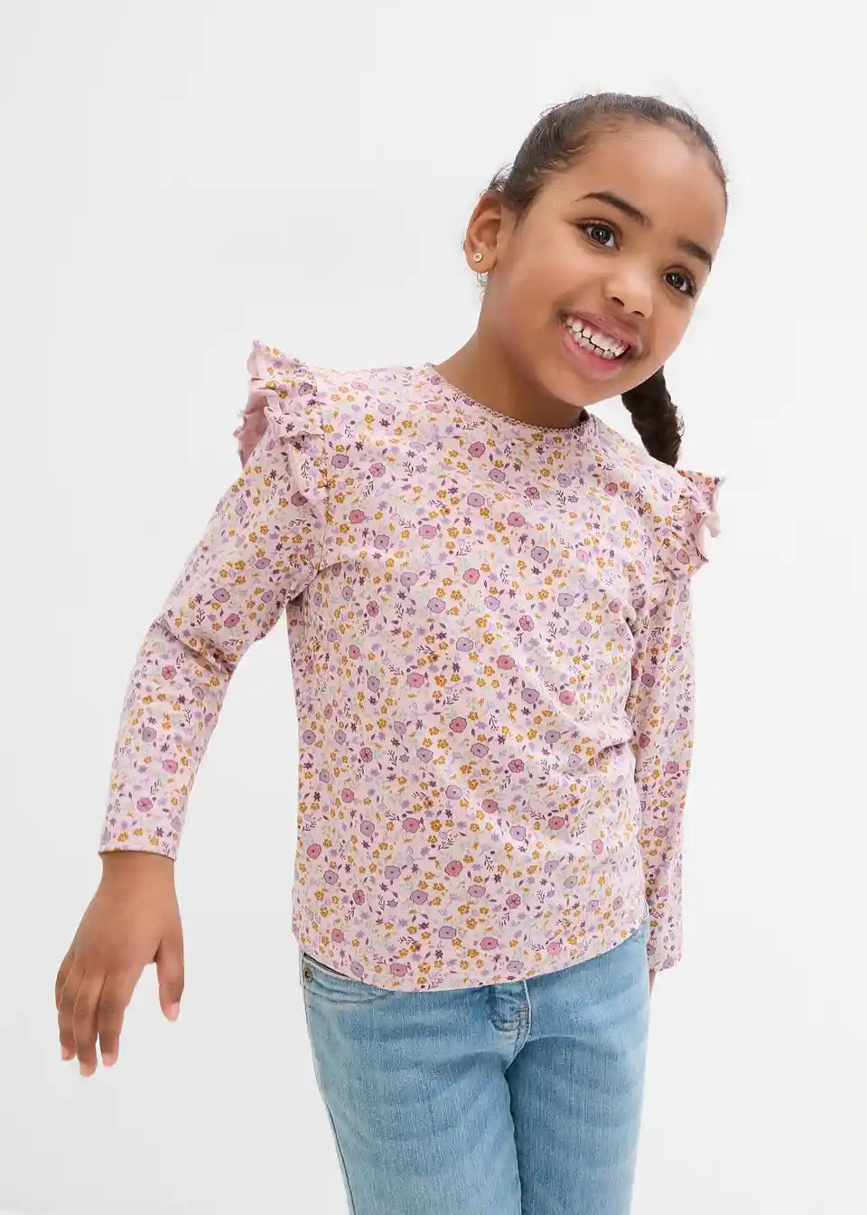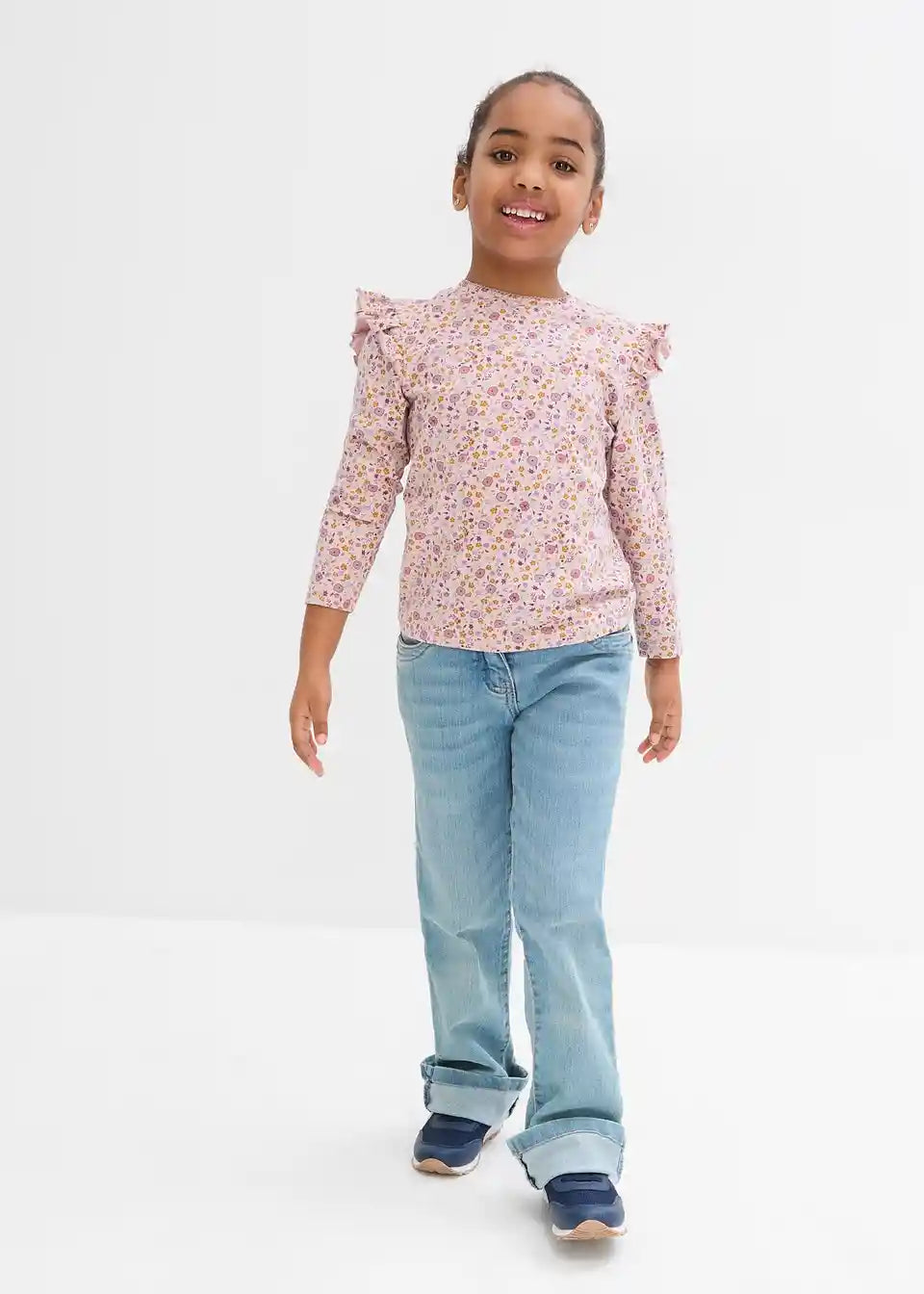 Majica s dugim rukavima za djevojčice s dekorativnim volanima na rukavu