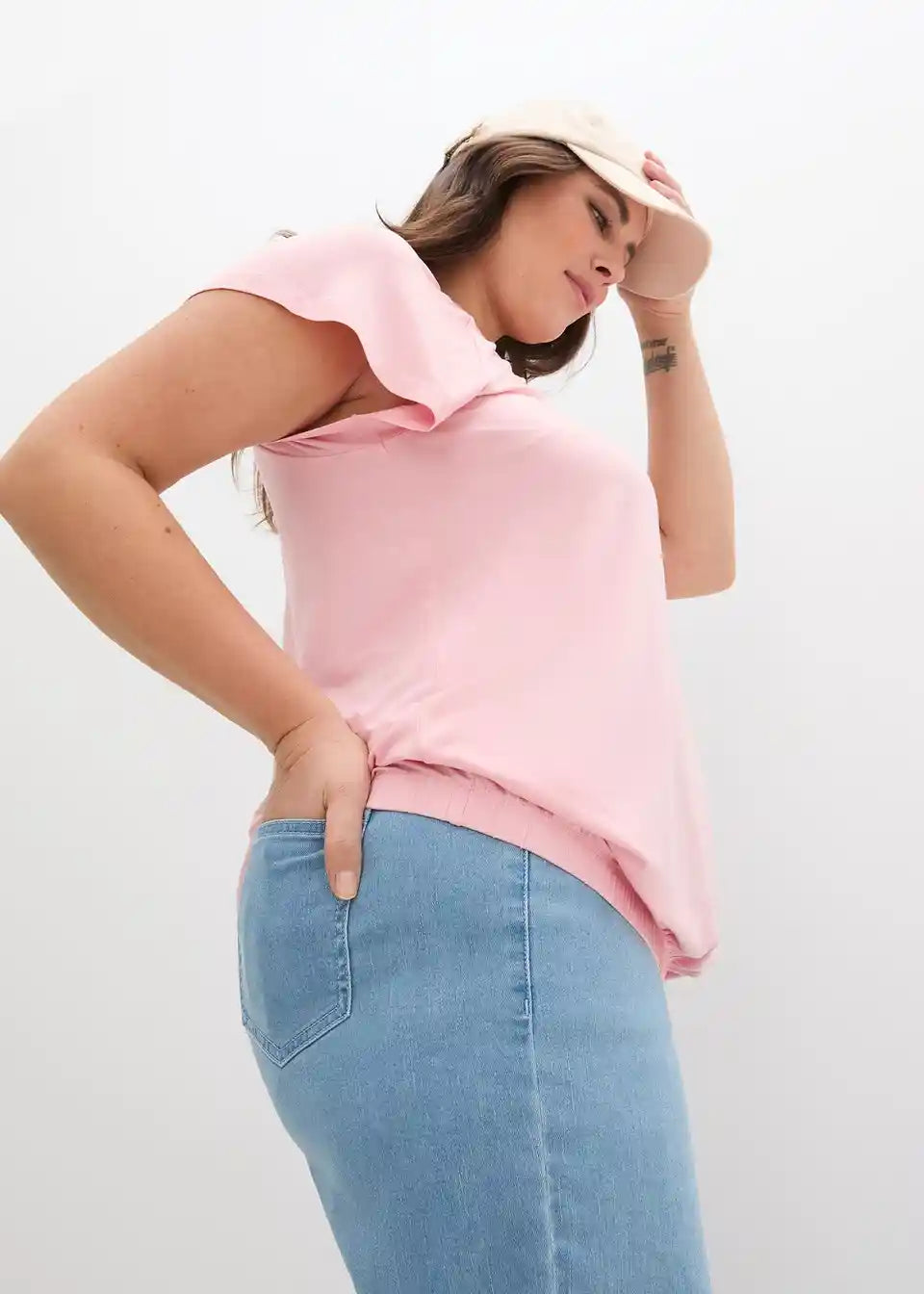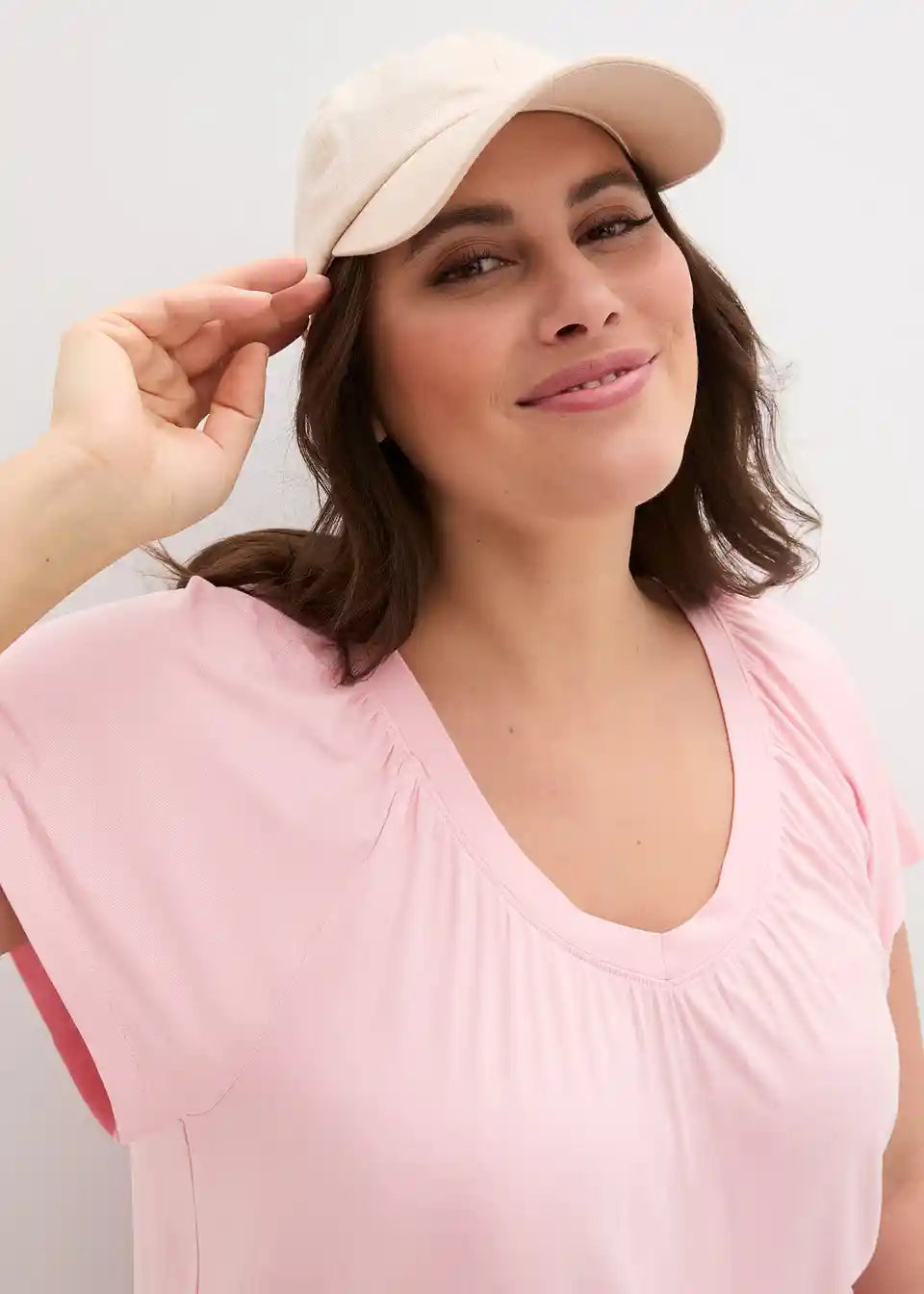 Majica koja se lako kombinira i skriva nedostatke s naborom na V-izrez, elastičnim obodom na rubu i malim krilatim rukavima