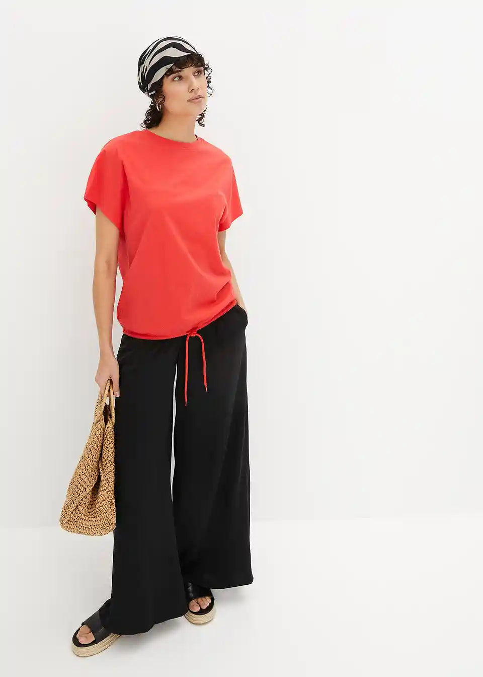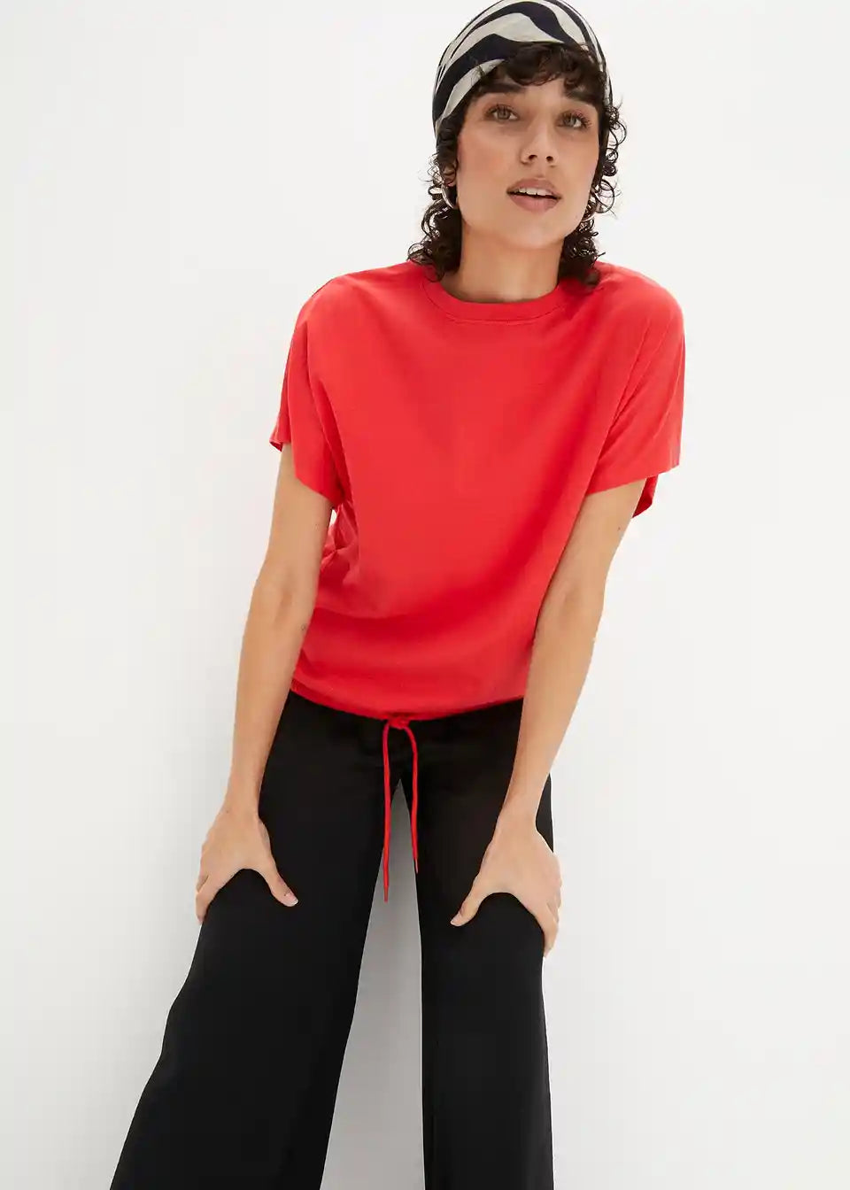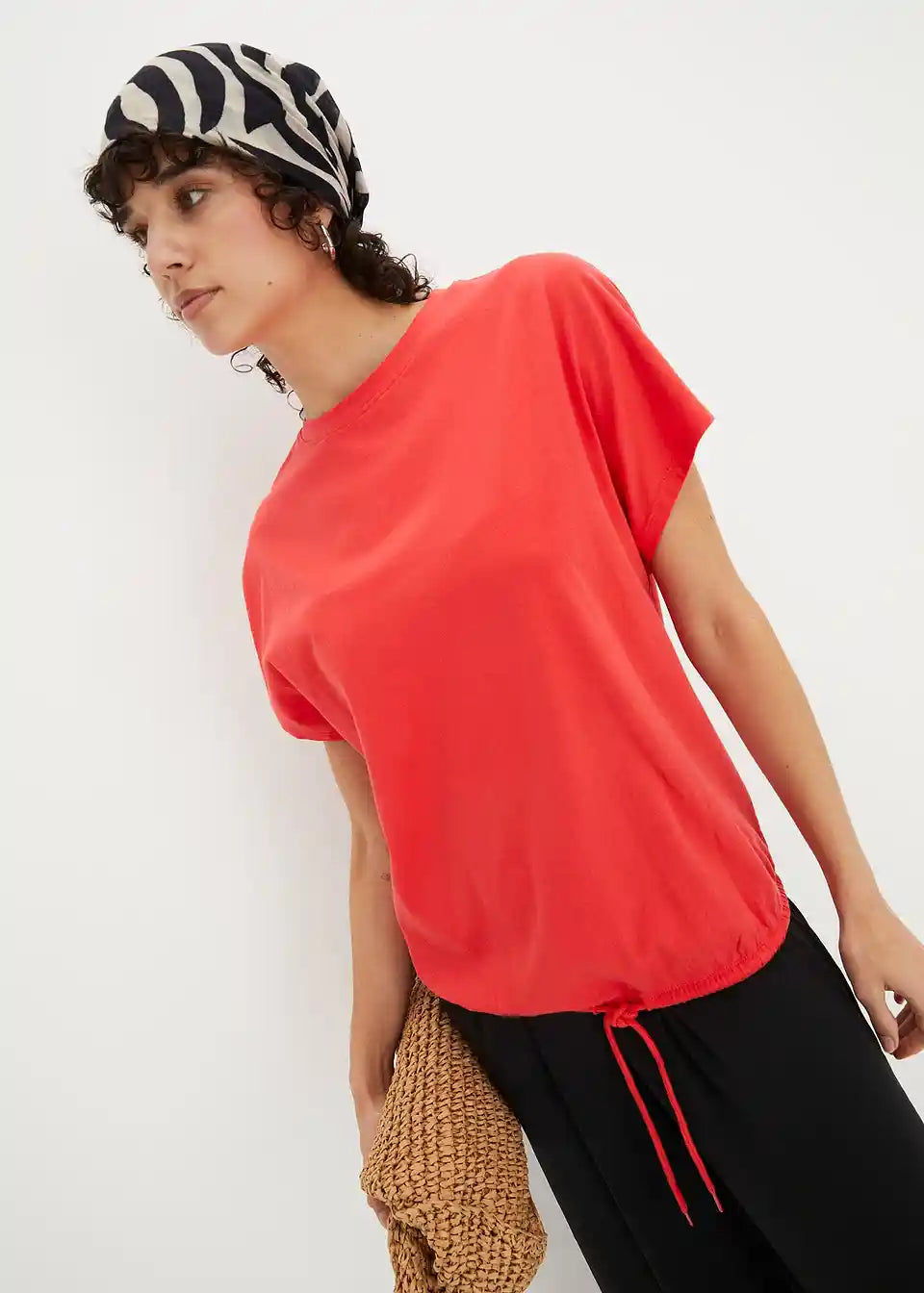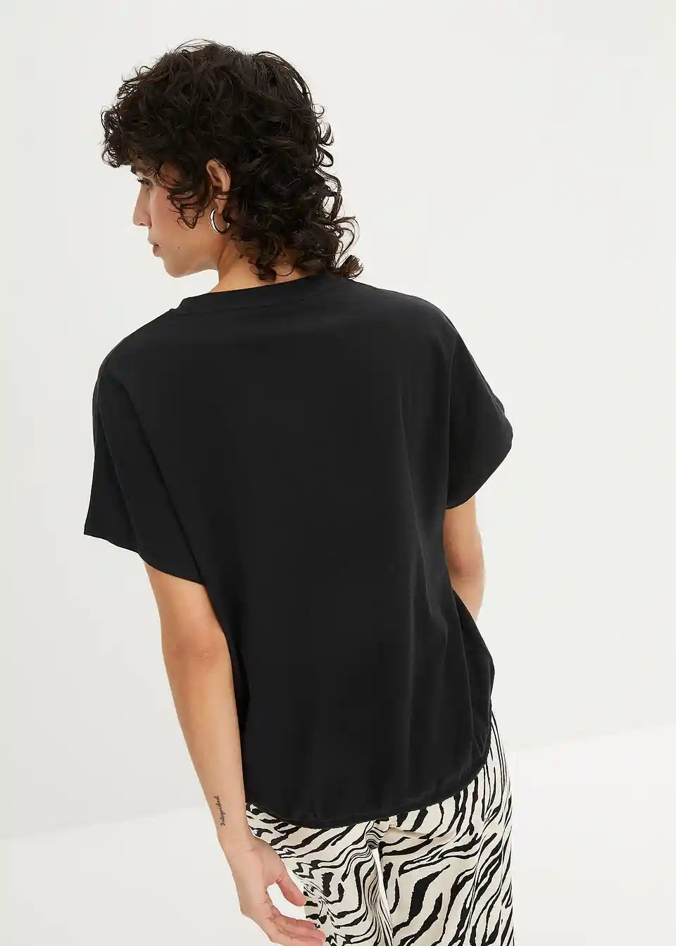 Široko krojena majica može se individualno podesiti pomoću vezice u struku