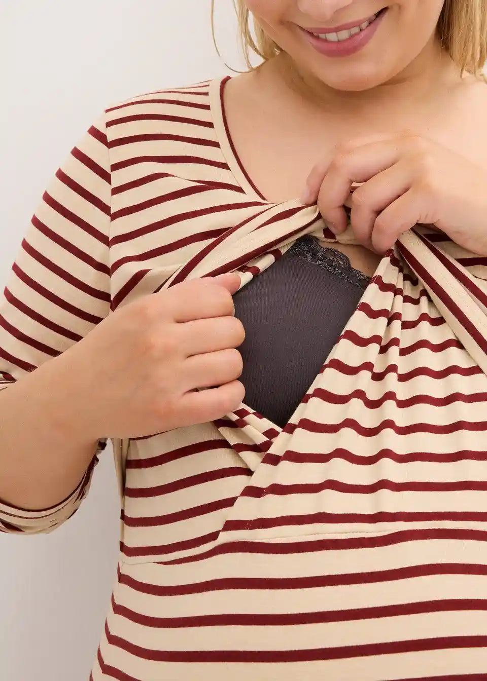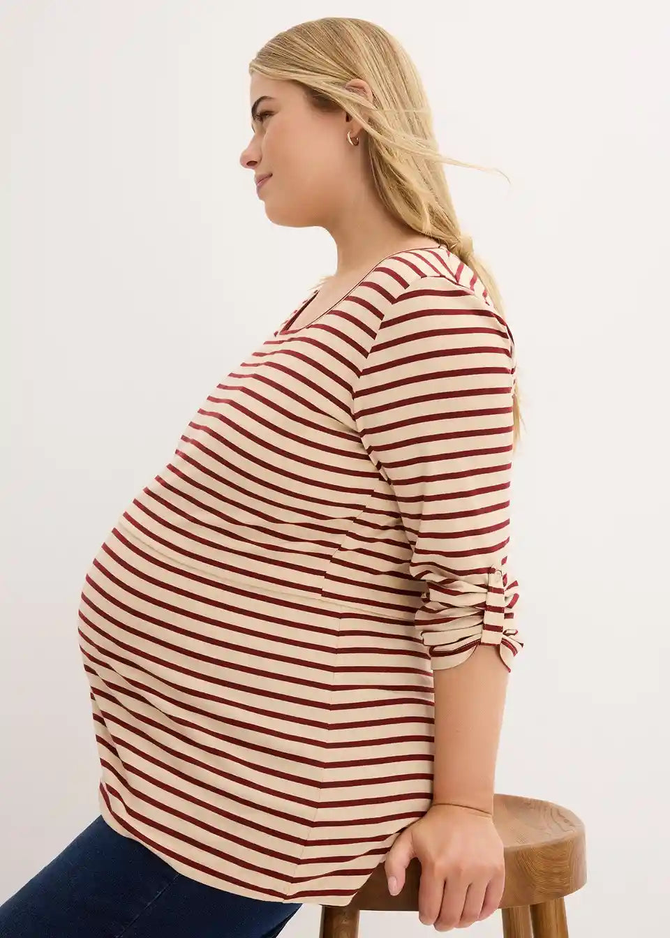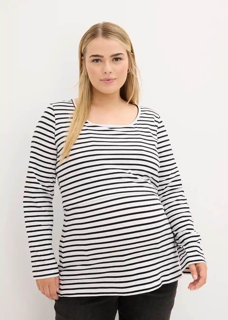 Dugih rukava, Majica od jerseya izrađena od organskog pamuka i elastana. Dizajn s dvostrukim slojevima pomaže u sprečavanju gubitka topline i štiti bebu, stvarajući mirnu atmosferu tijekom dojenja.