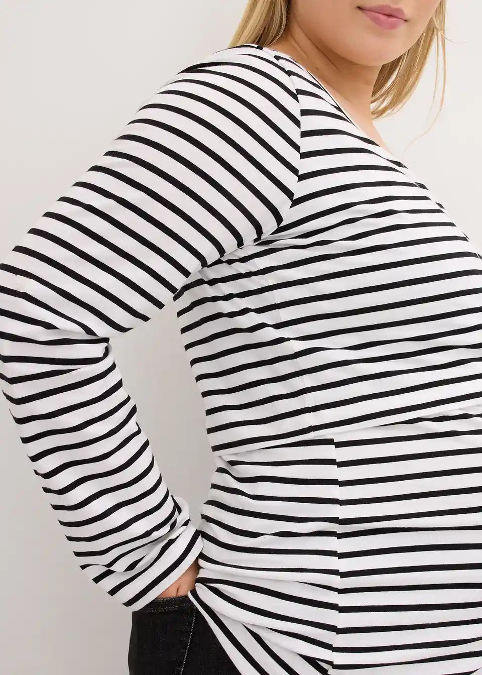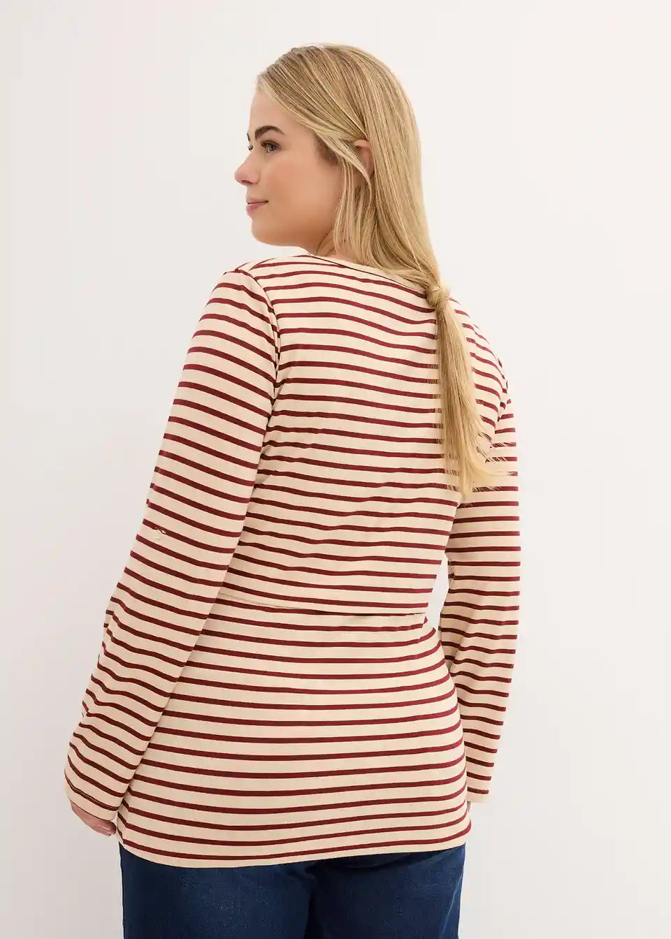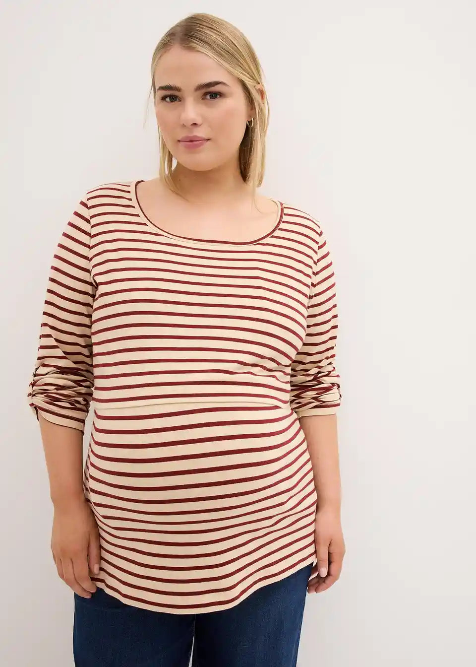 Dugih rukava, Majica od jerseya izrađena od organskog pamuka i elastana. Dizajn s dvostrukim slojevima pomaže u sprečavanju gubitka topline i štiti bebu, stvarajući mirnu atmosferu tijekom dojenja.