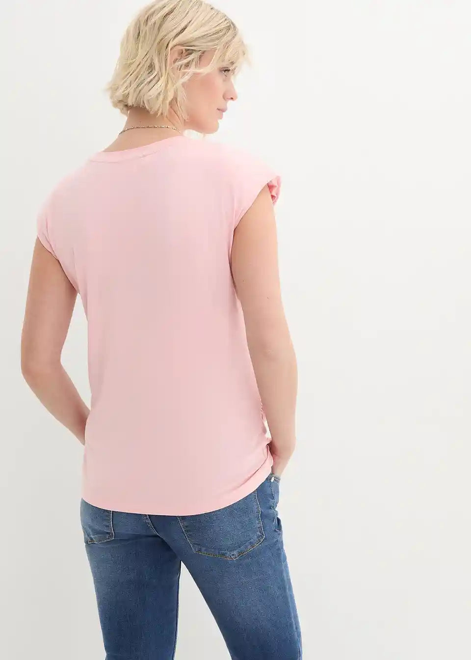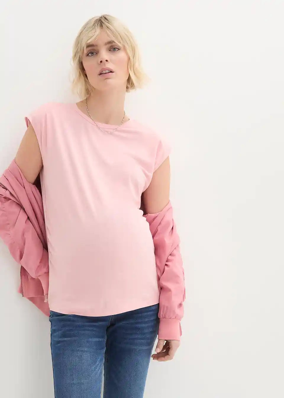 Otkrijte našu modernu majicu za trudnoću s jastučićima za ramena – savršena za svakodnevicu i posebne prigode! U nježnoj boji, naša majica je univerzalna i odgovara kako poslovnom izgledu tako i opuštenim svakodnevnim kombinacijama. Izrađena od održive i certificirane viskoze, nije samo ekološki prihvatljiva, već i nevjerojatno meka na koži. S dodatnom širinom u predjelu trbuha, naša majica pruža izvrstan osjećaj udobnosti tijekom trudnoće. Jastučići za ramena daju majici moderan ton i naglašavaju modne detalje. Uživajte u luksuzu udobnosti i stila u majici koja savršeno prati vašu trudnoću. Investirajte u kvalitetu i održivost za bezbrižan i moderan izgled – bilo u uredu ili u slobodno vrijeme.
