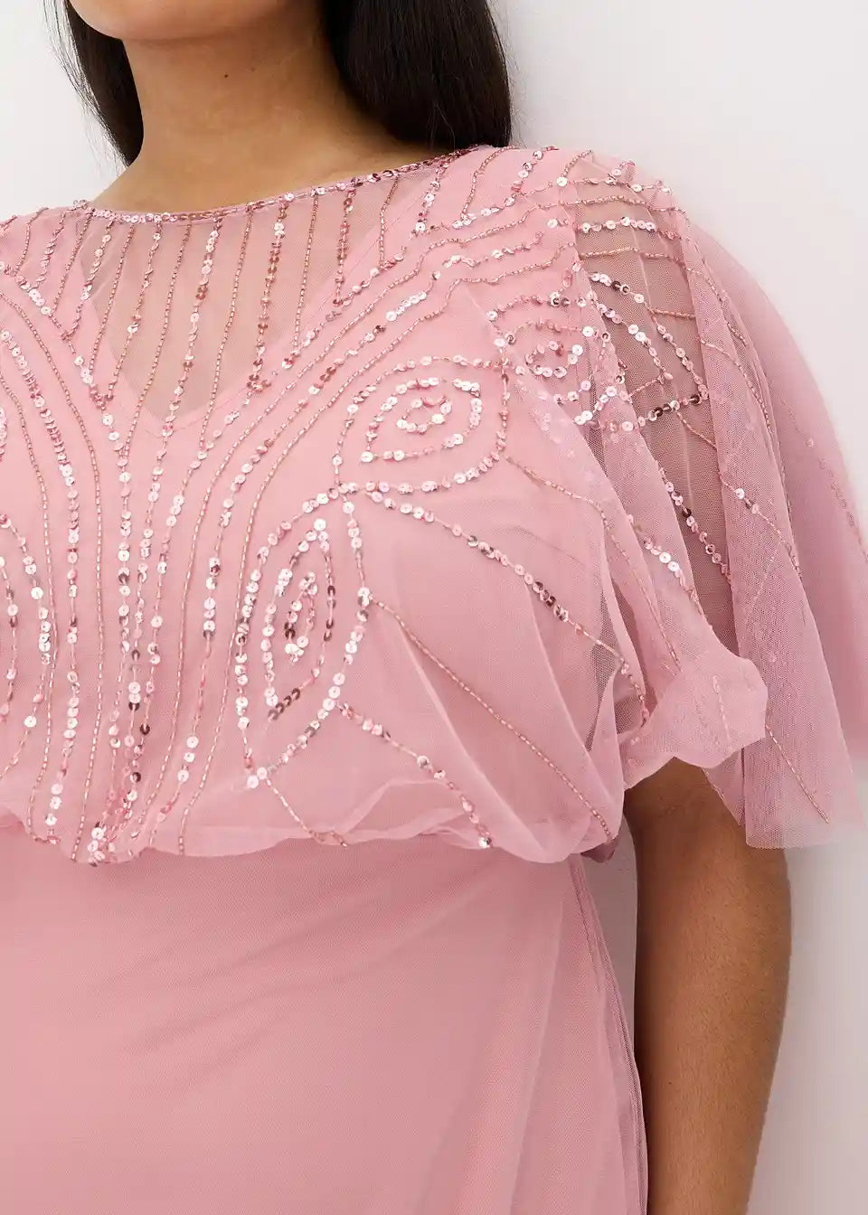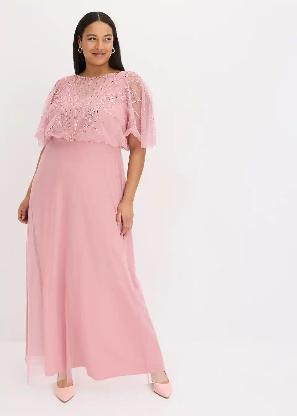 Klasična i ženstvena: večernja haljina maksi dužine od finog tila s vezom od šljokica