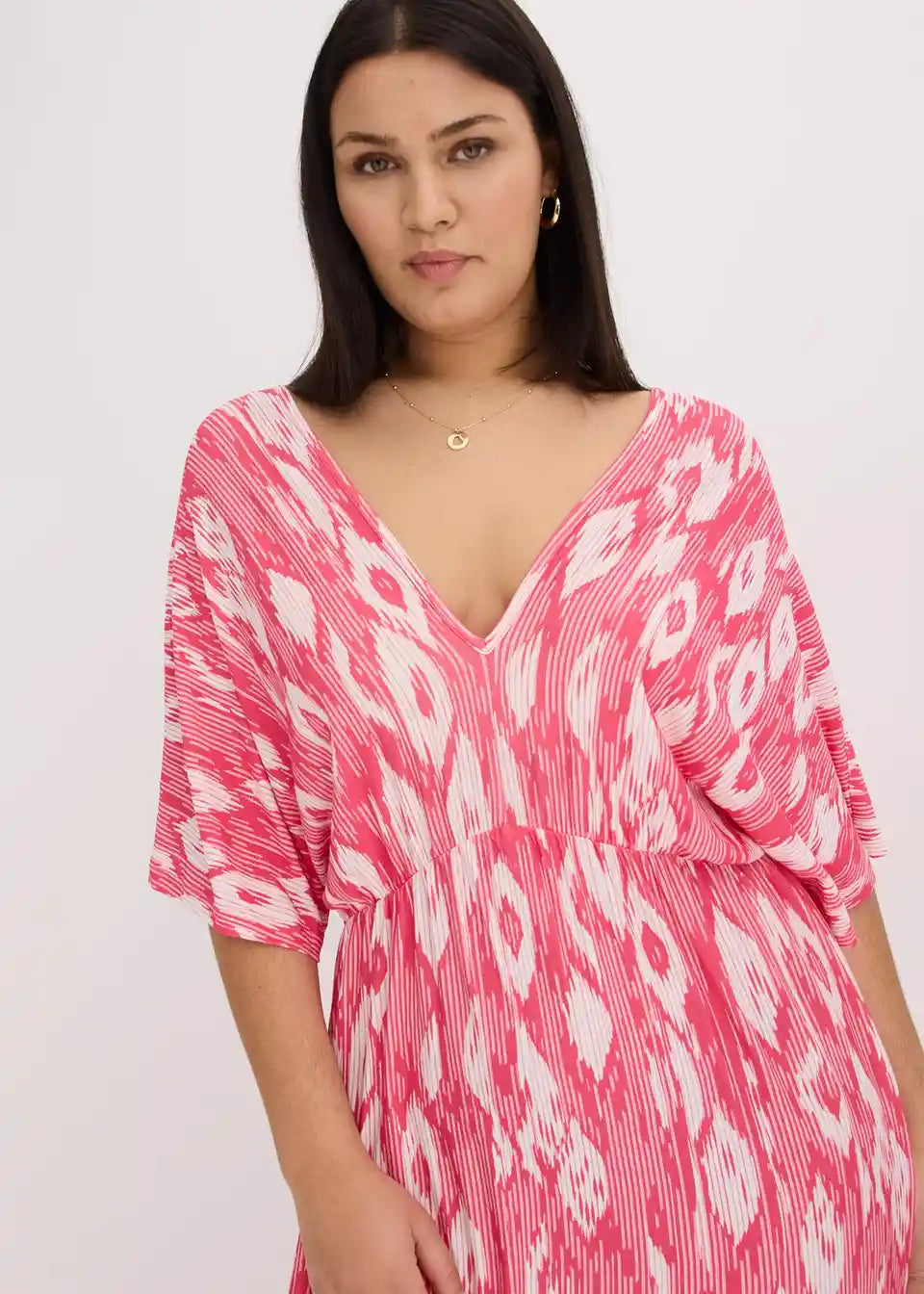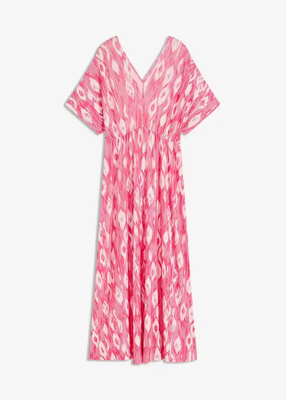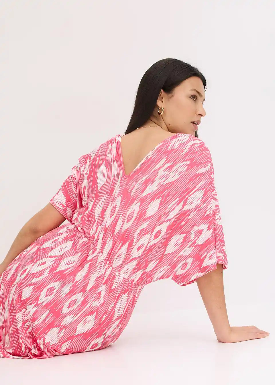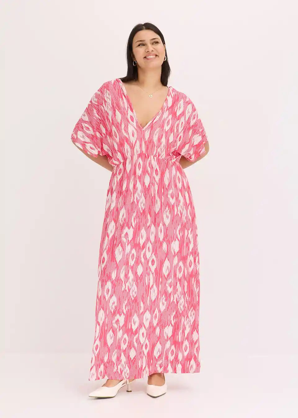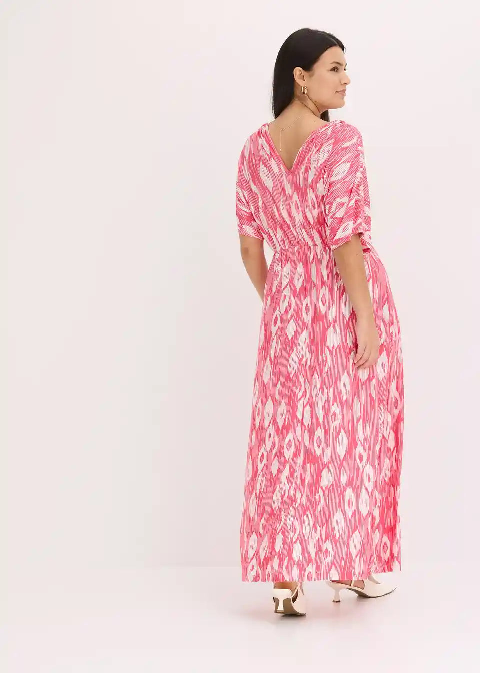 modno tiskana haljina od jerseya maksi duljine sa široko krojenim rukavima i dubokim V-izrezom sprijeda