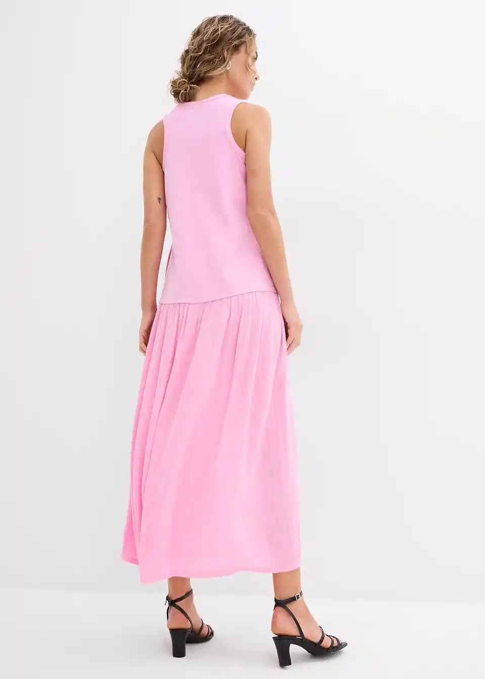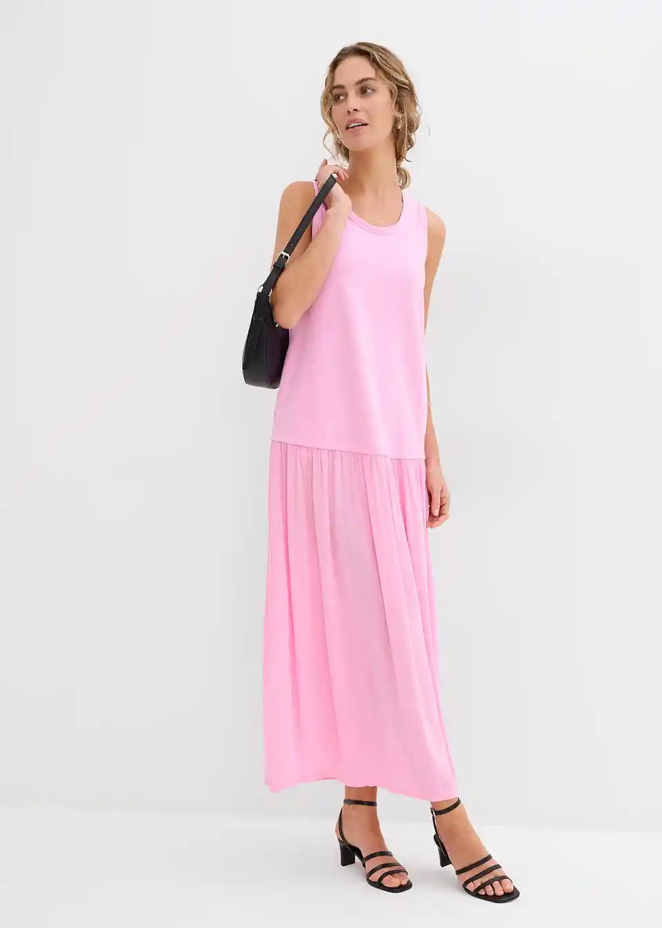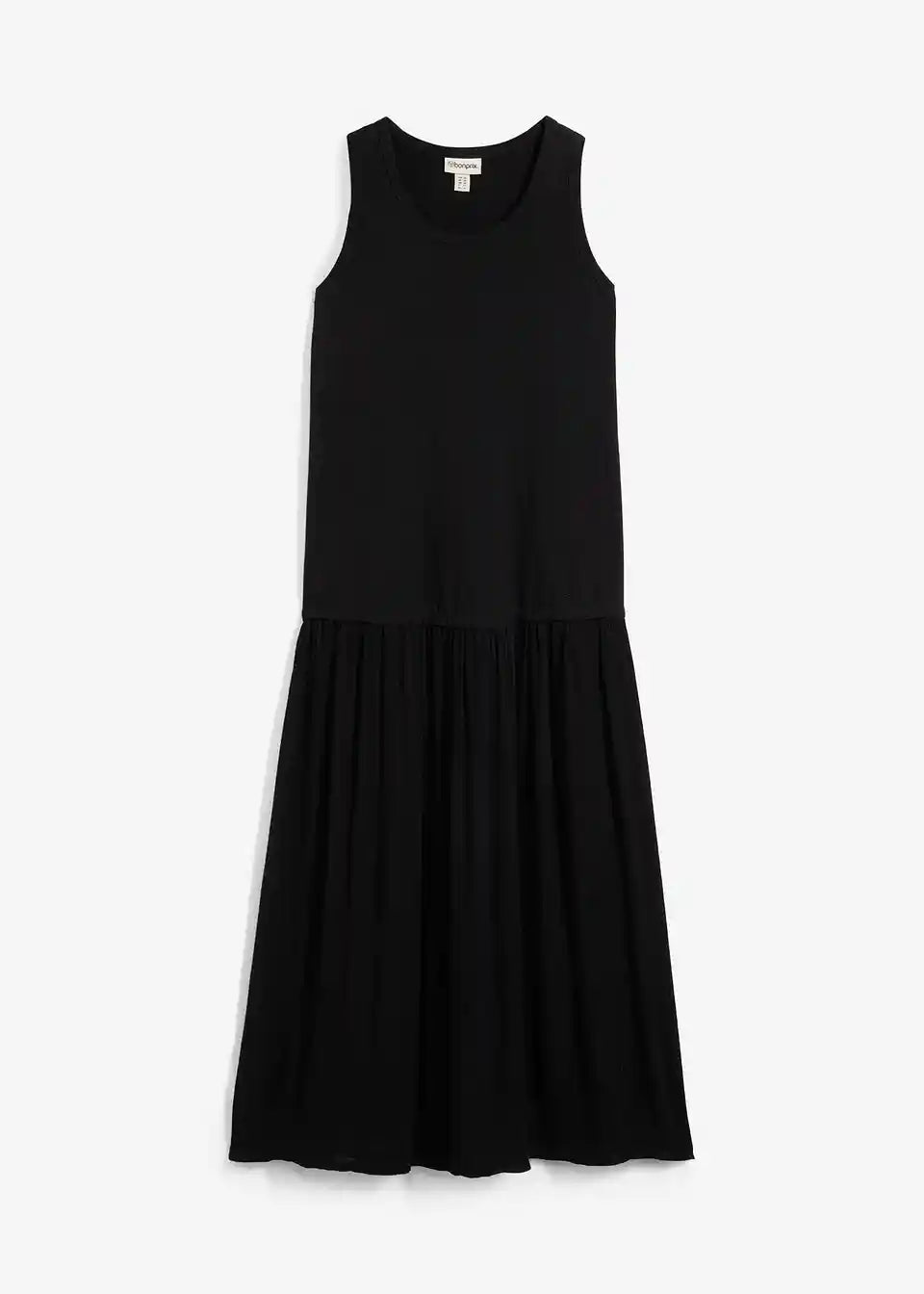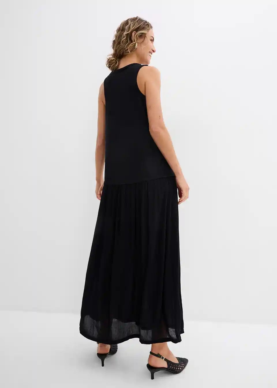 Haljina s dužim gornjim dijelom u stilu potkošulje i suknjom od različitih materijala