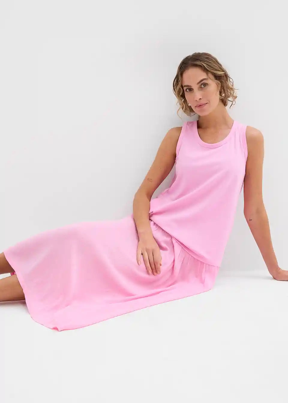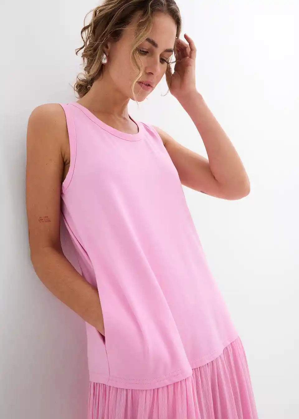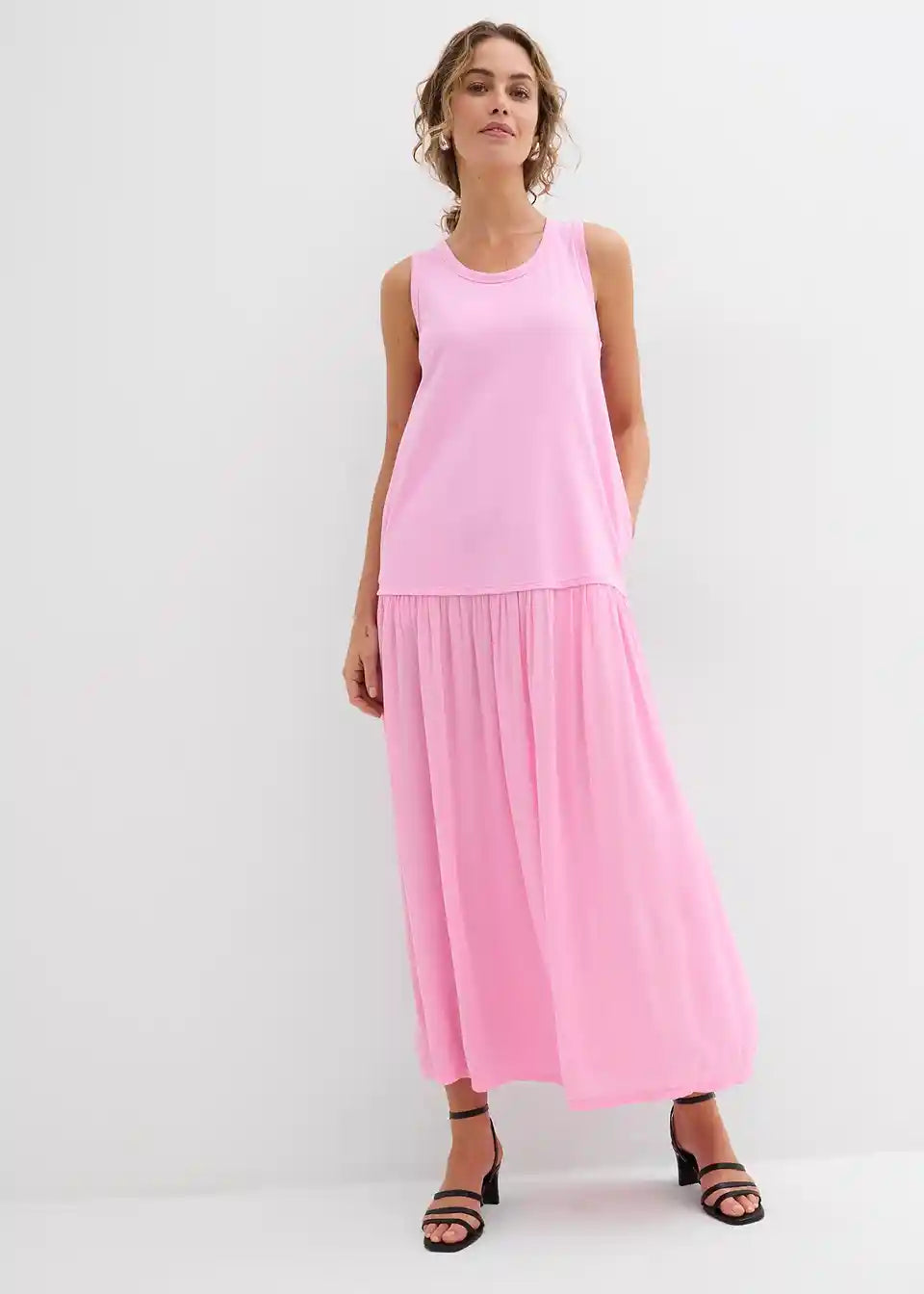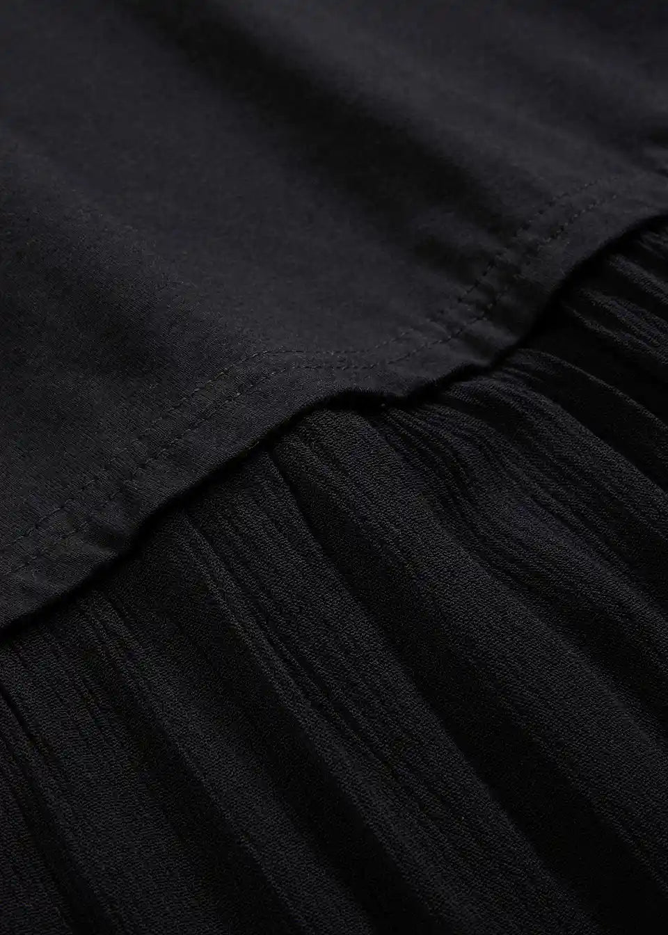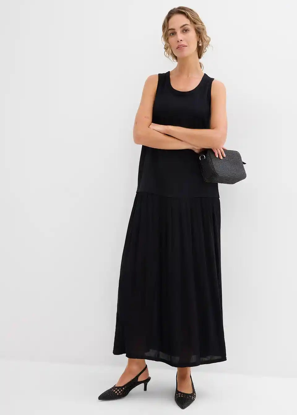 Haljina s dužim gornjim dijelom u stilu potkošulje i suknjom od različitih materijala