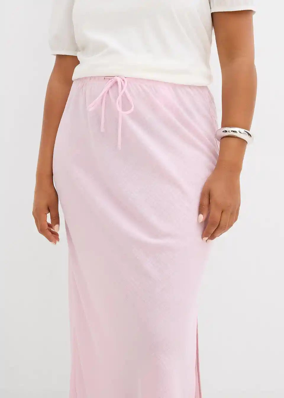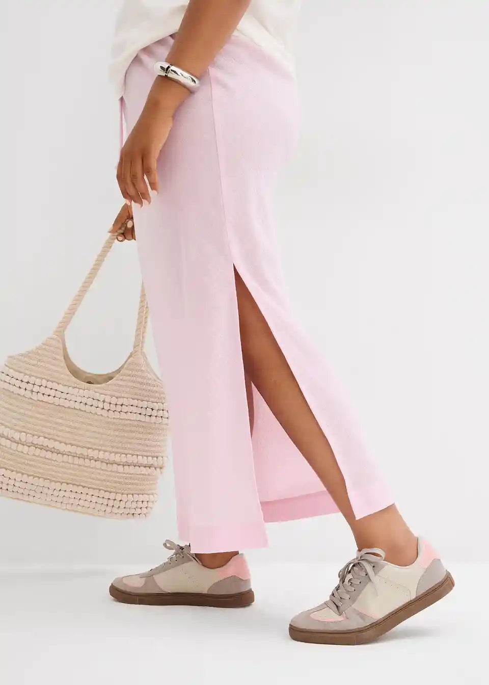 Moderna maksi suknja s prorezom i sirovim rubovima