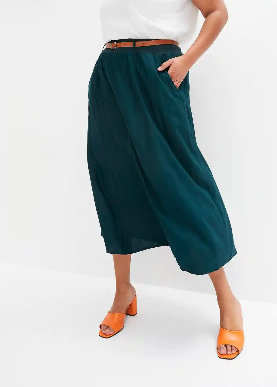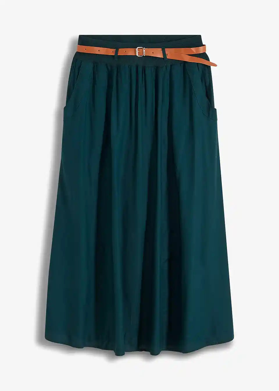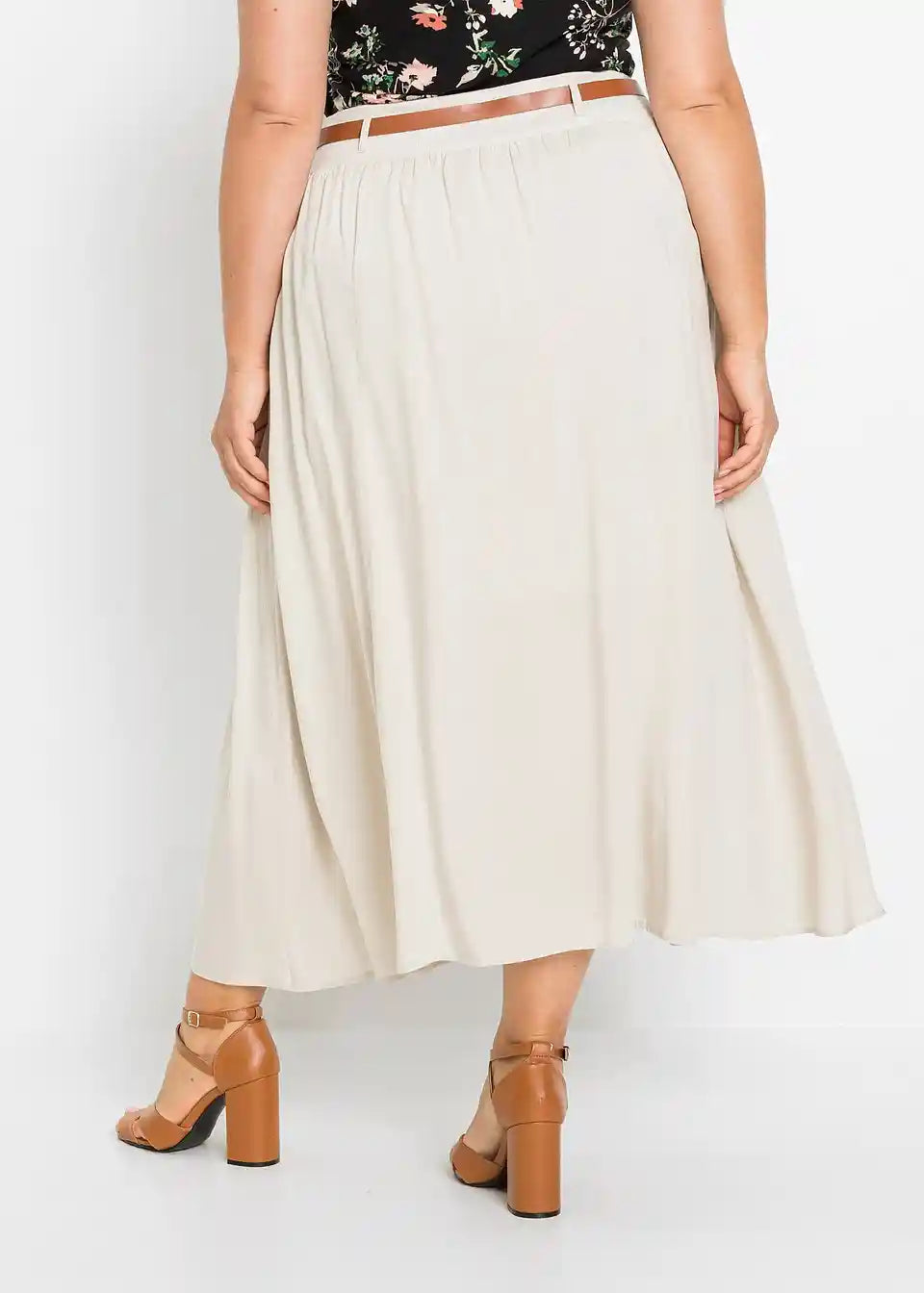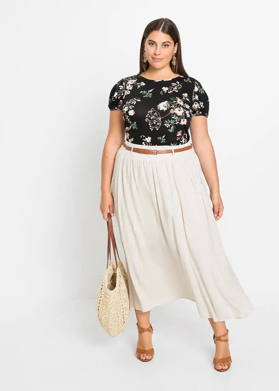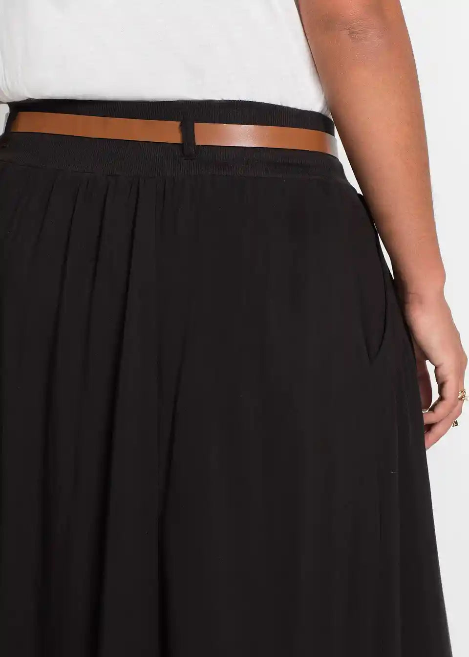 Ova lijepa maksi suknja od BODYFLIRT-a savršena je za toplije dane. Maksi suknja ima široki pojas izrađen od fine rebraste tkanine i dolazi sa uskim remenom. Na prednjoj strani suknje nalaze se dva džepa. Materijal lagano pada niz nogu. Maksi suknja sjajno se kombinira sa sandalama i ženstvenim topovima.