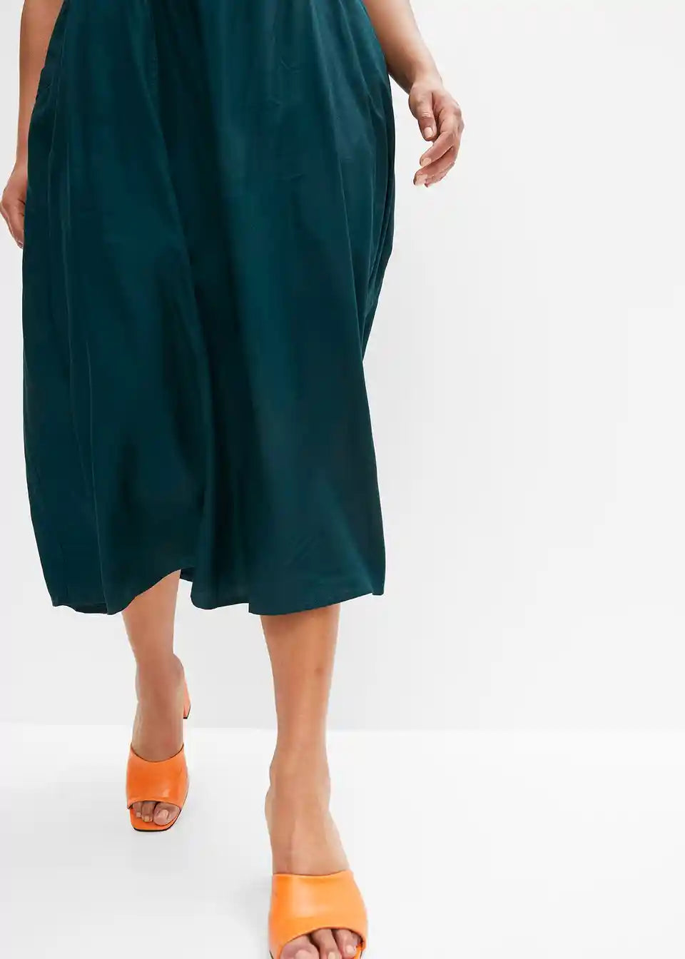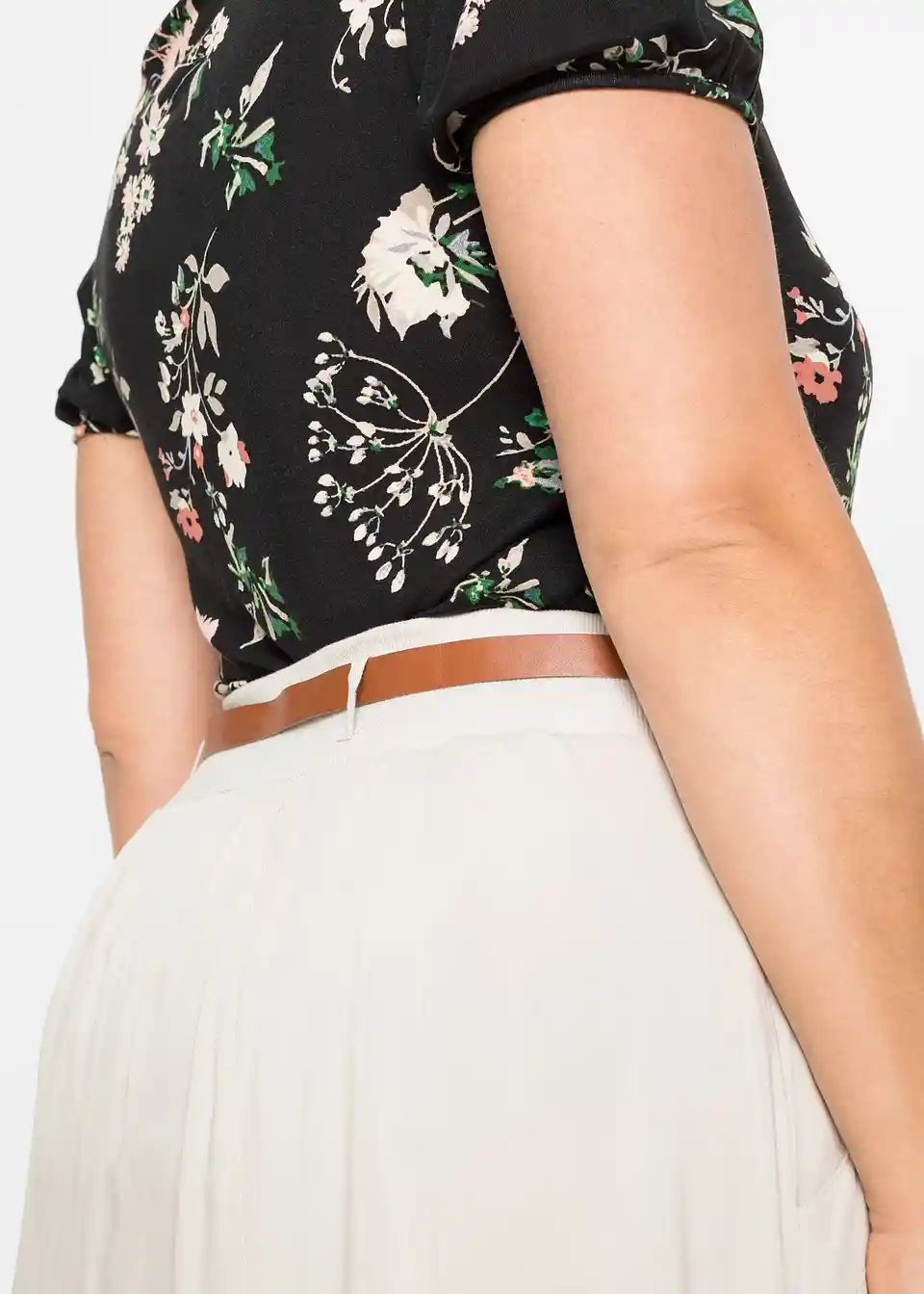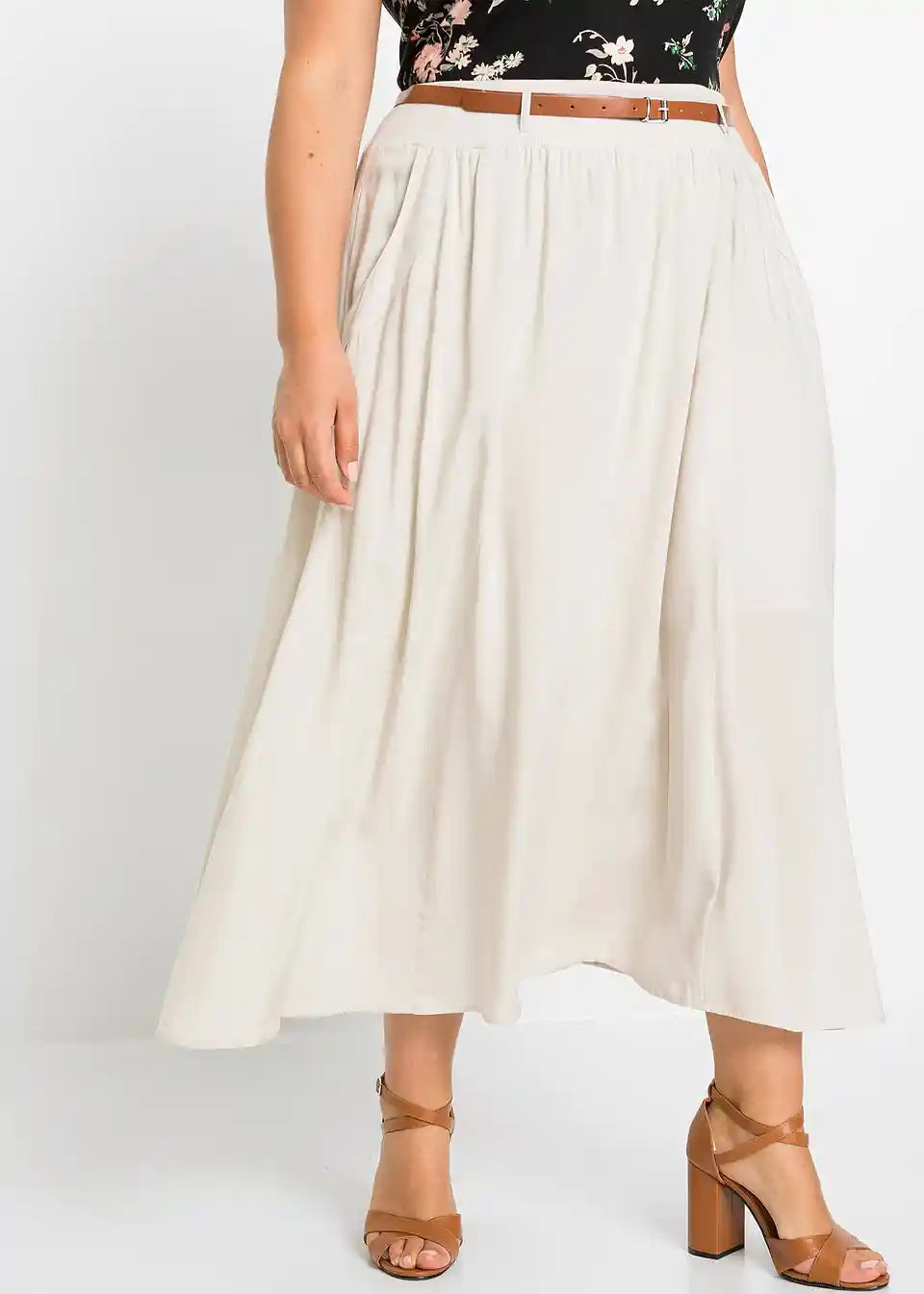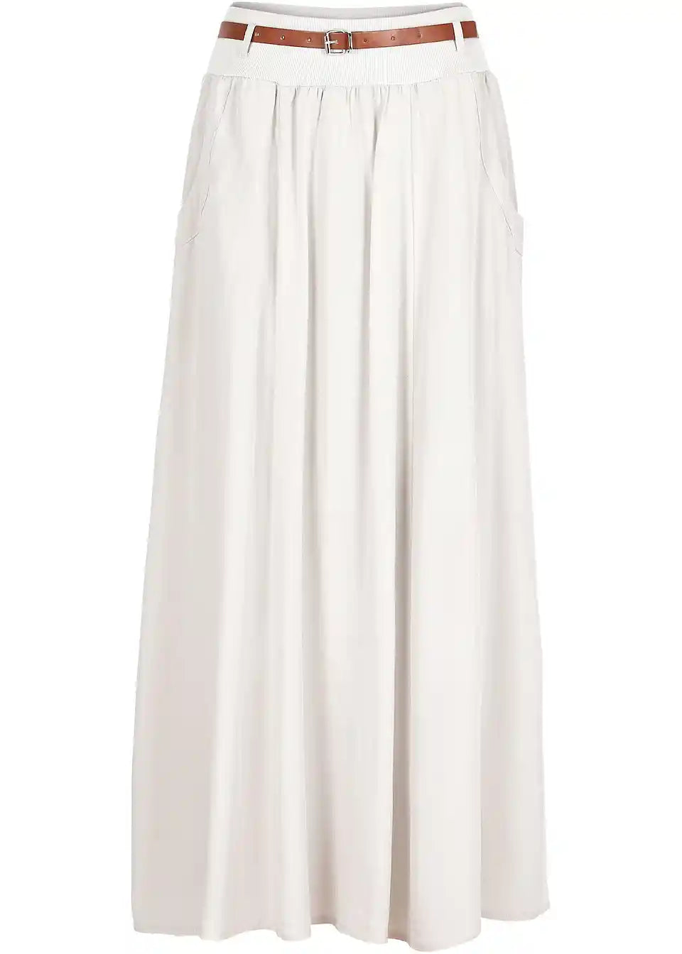 Ova lijepa maksi suknja od BODYFLIRT-a savršena je za toplije dane. Maksi suknja ima široki pojas izrađen od fine rebraste tkanine i dolazi sa uskim remenom. Na prednjoj strani suknje nalaze se dva džepa. Materijal lagano pada niz nogu. Maksi suknja sjajno se kombinira sa sandalama i ženstvenim topovima.