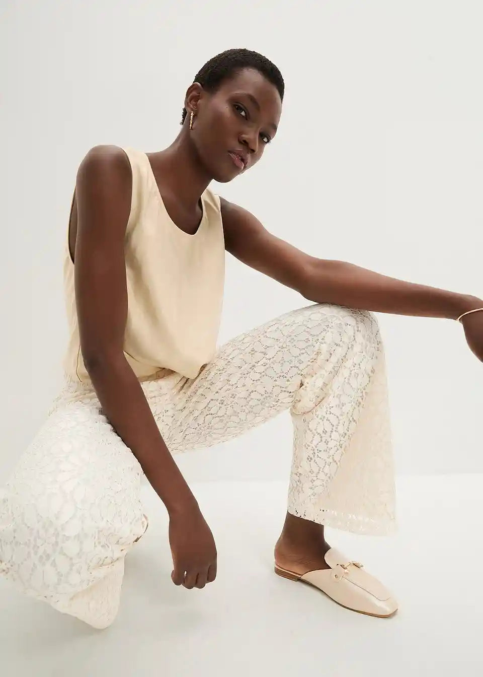 elegantne hlače od cvjetne čipke, podstavljene ugodnim pamukom