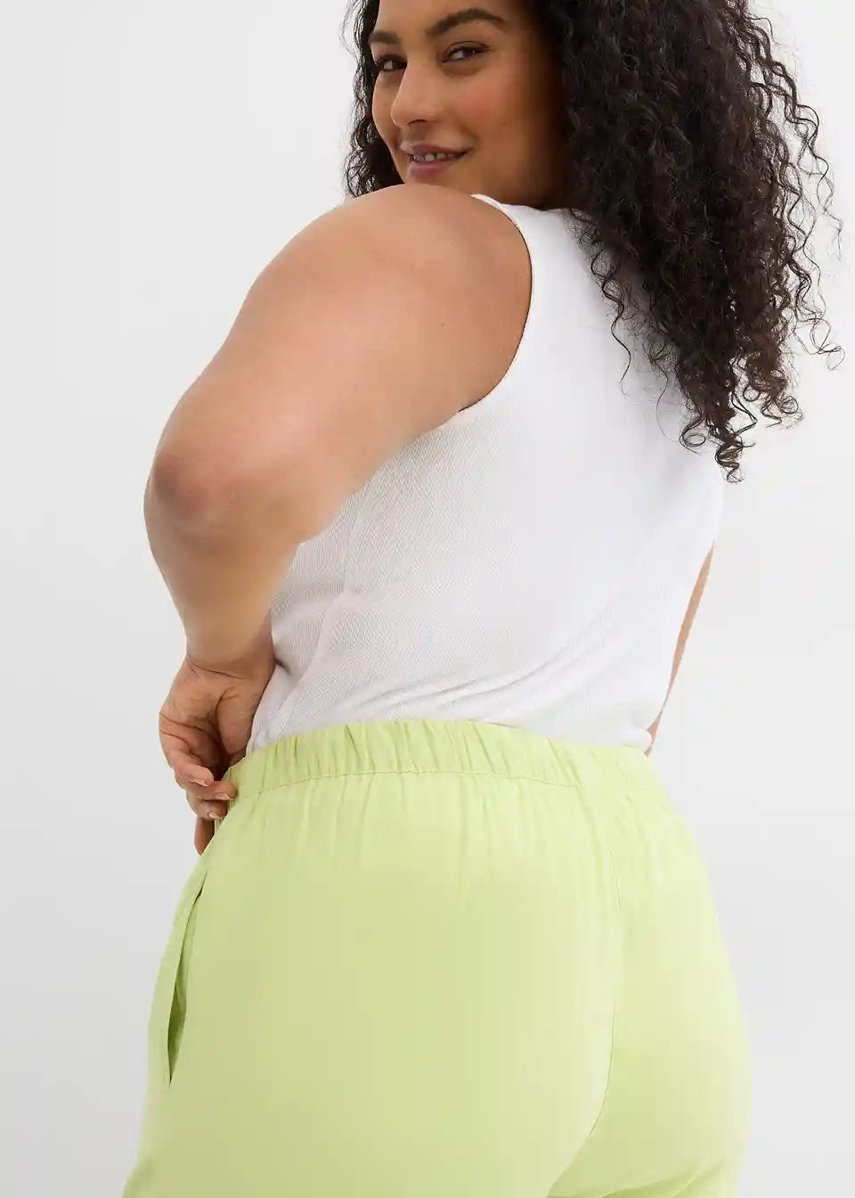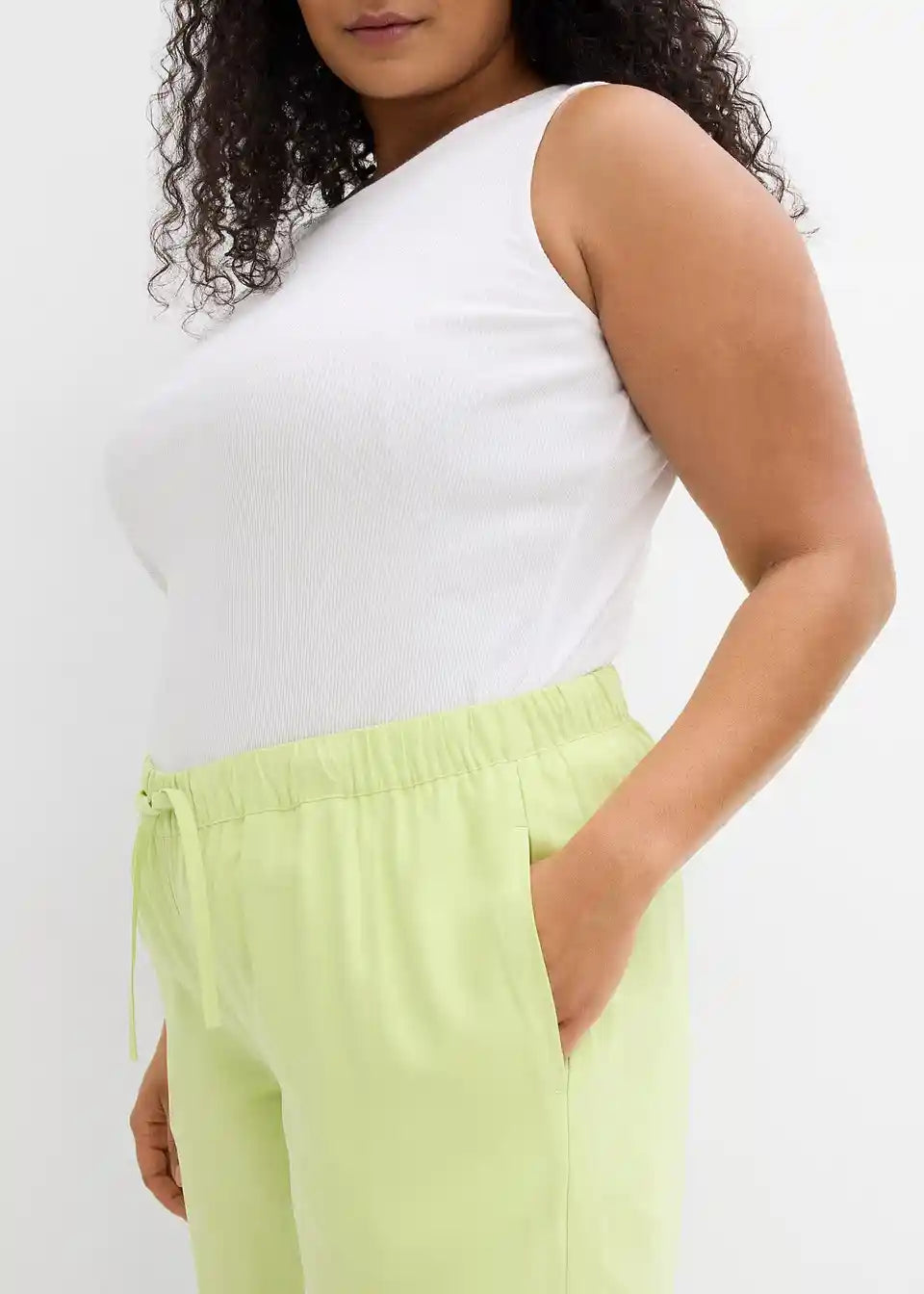 Značajka kroja:pruži komfor, olakšava kretanje zbog rastezljivog umetka, sakrije puniji trbuh, stražnjicu, šire bokove i bedra