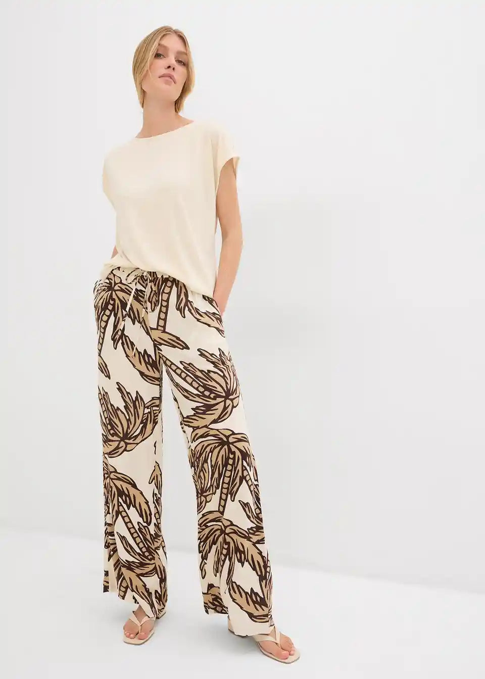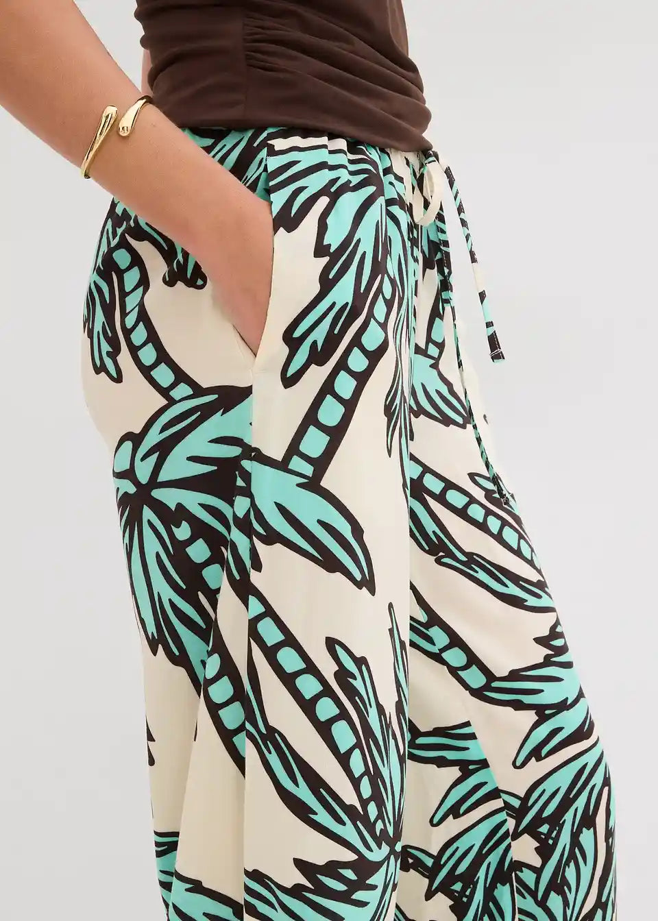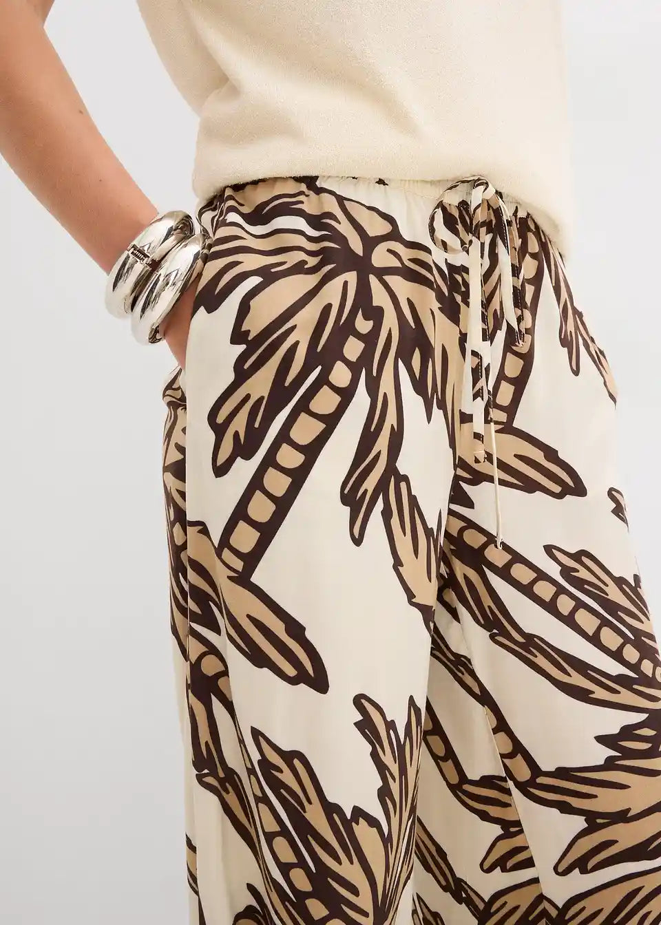 tiskane Marlene hlače od lepršave viskoze s elastičnim pojasom