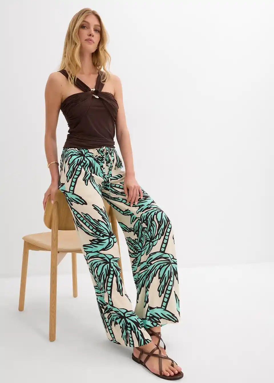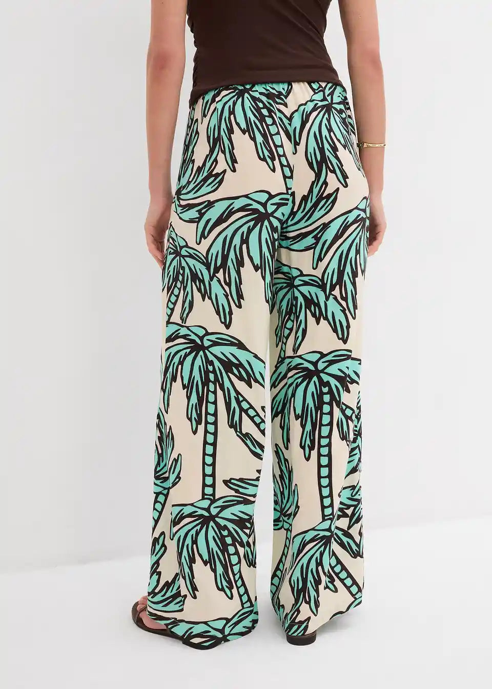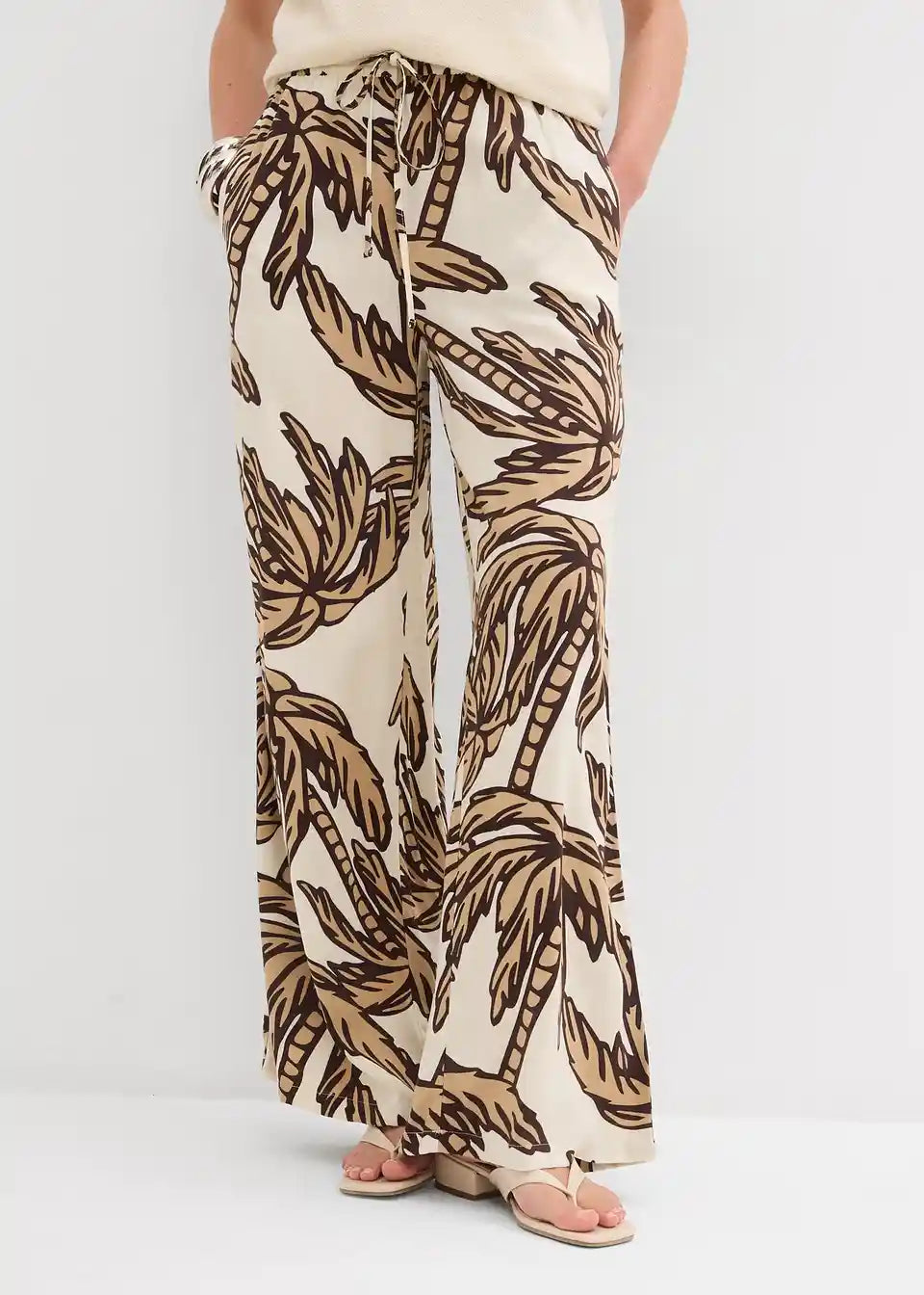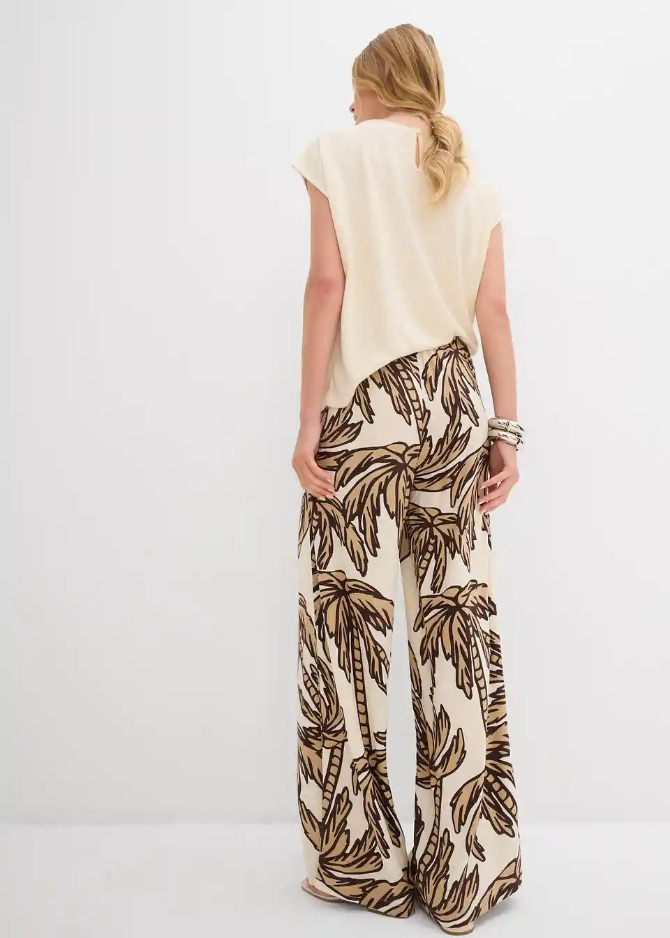 tiskane Marlene hlače od lepršave viskoze s elastičnim pojasom