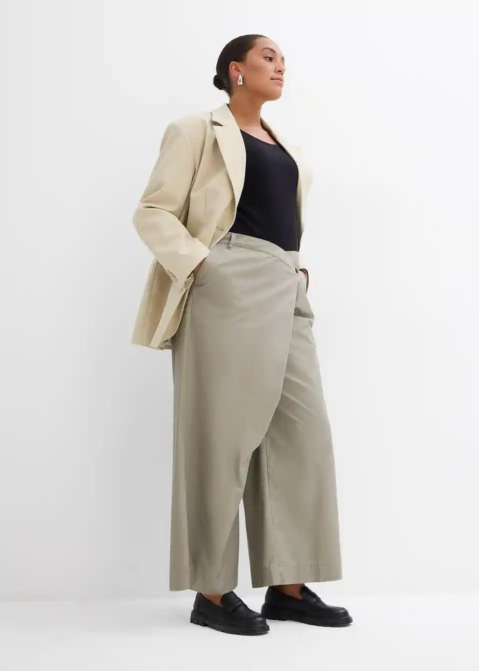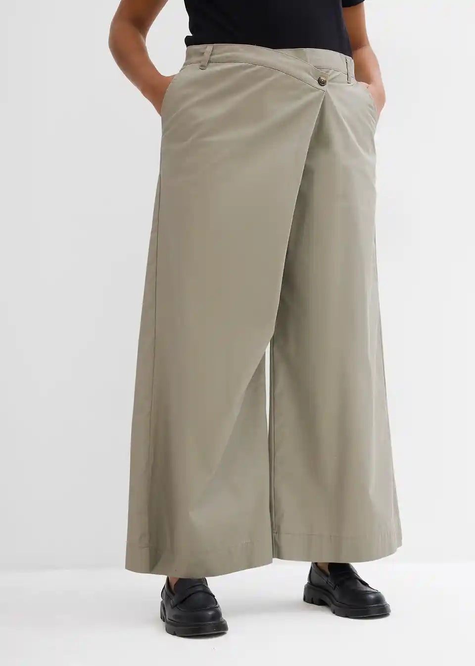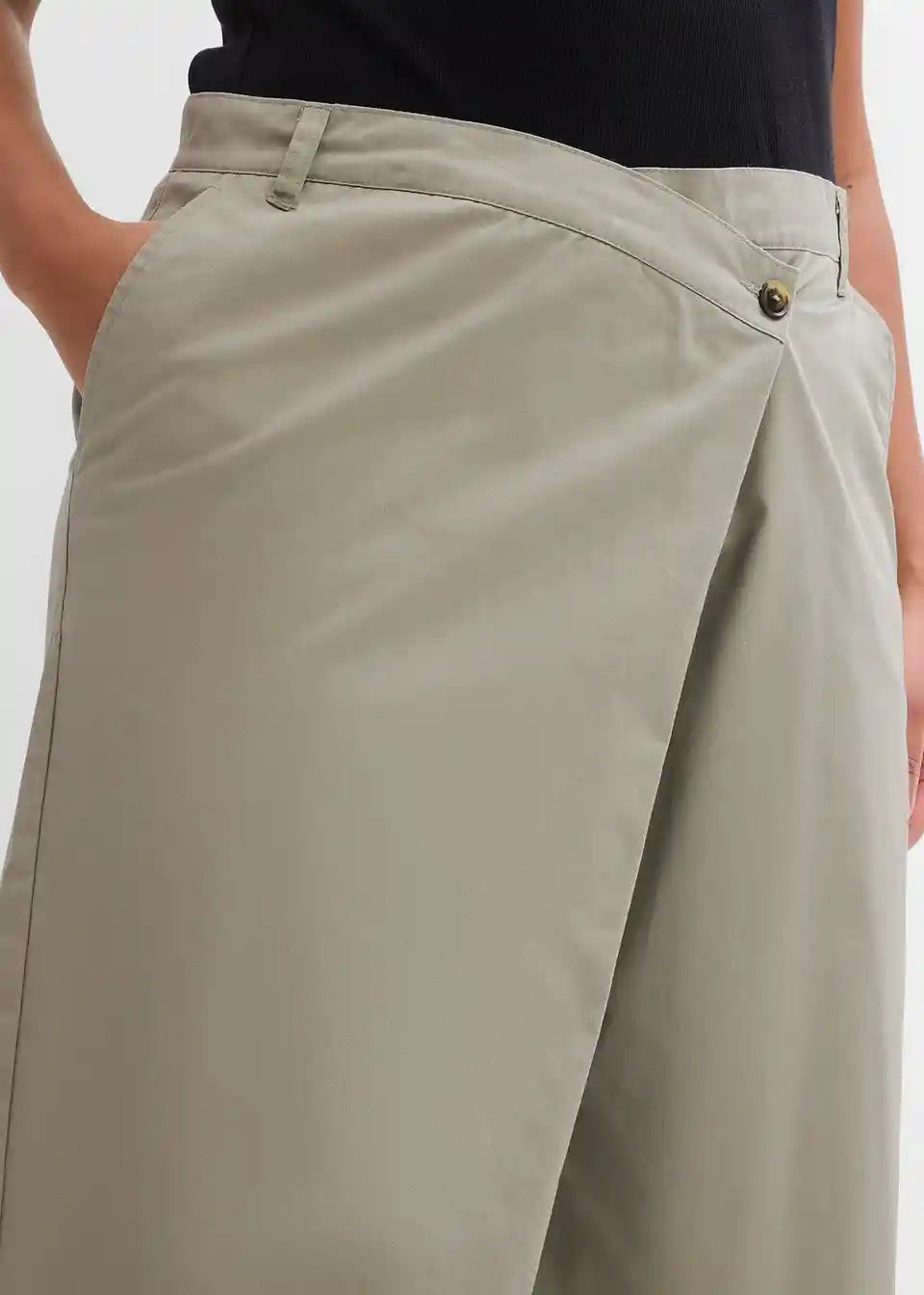 Marlene hlače širokih nogavica s asimetričnim kopčanjem na gumb