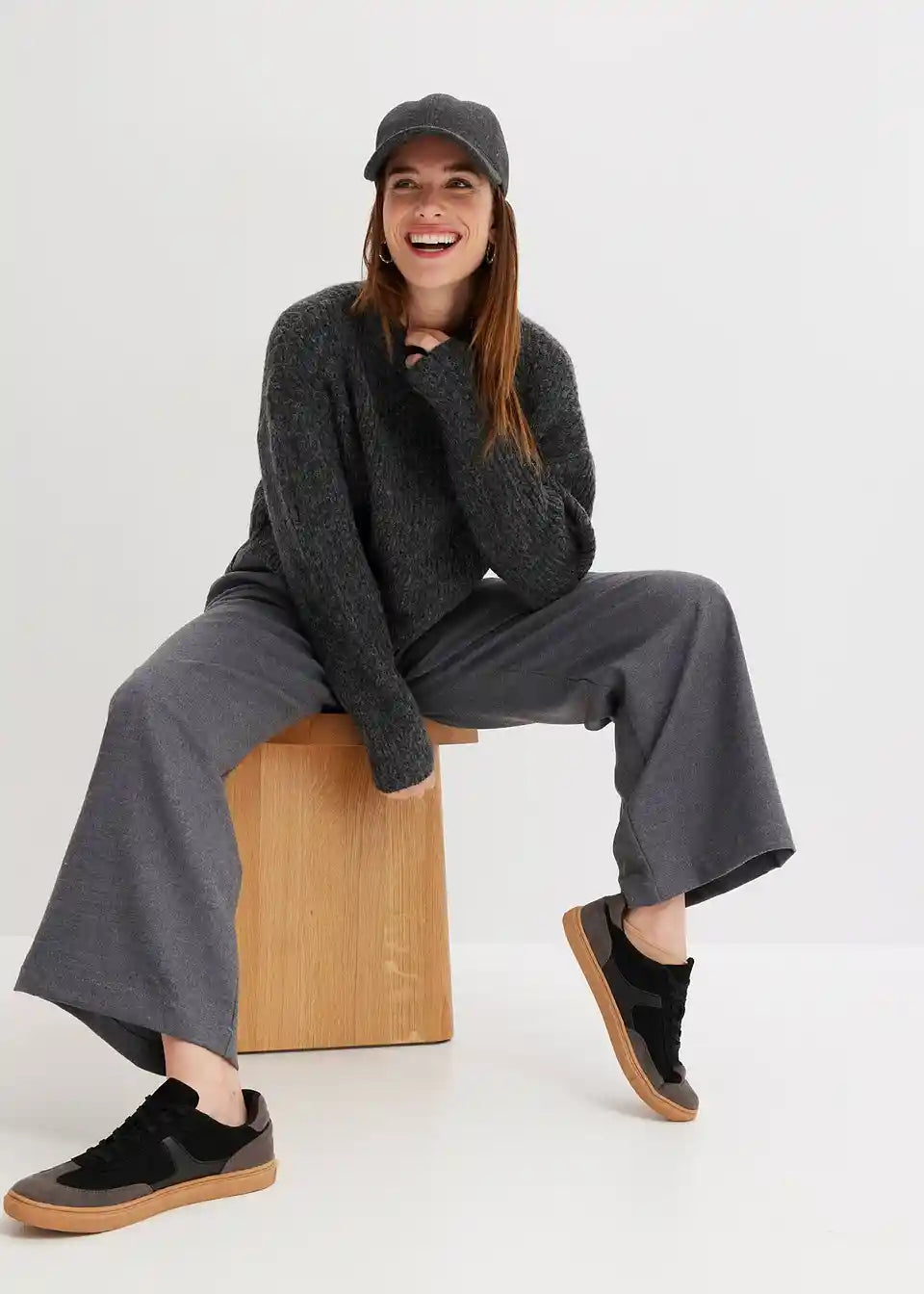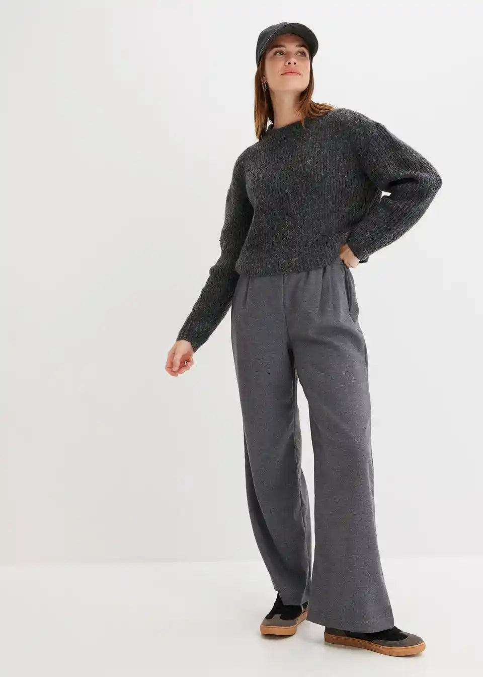 Udobne hlače na navlačenje u uzorku sol-papra s udobnim pojasom