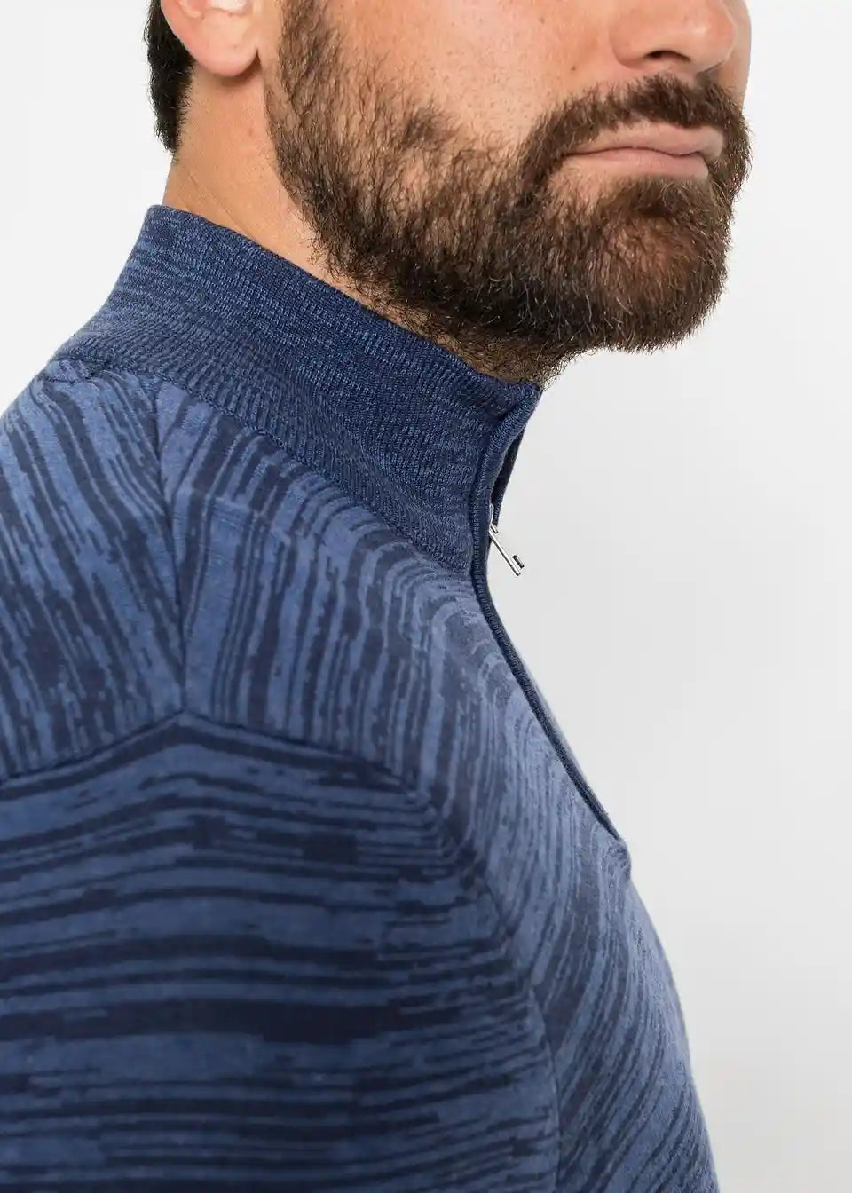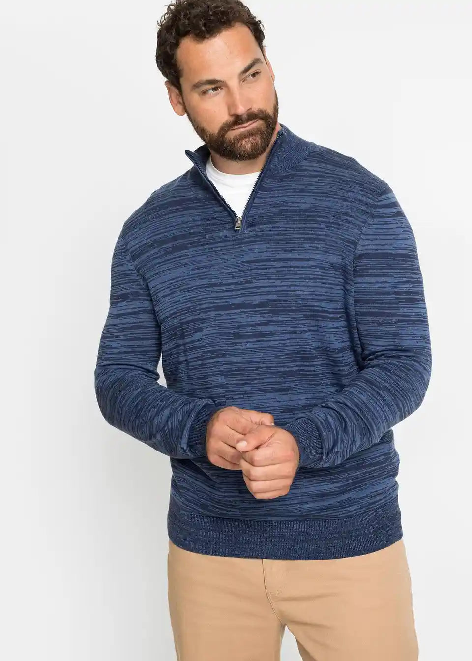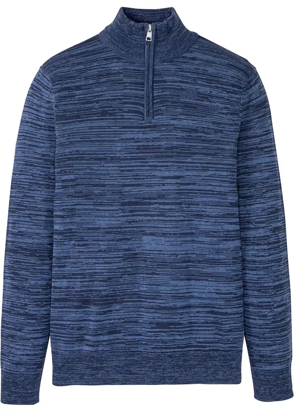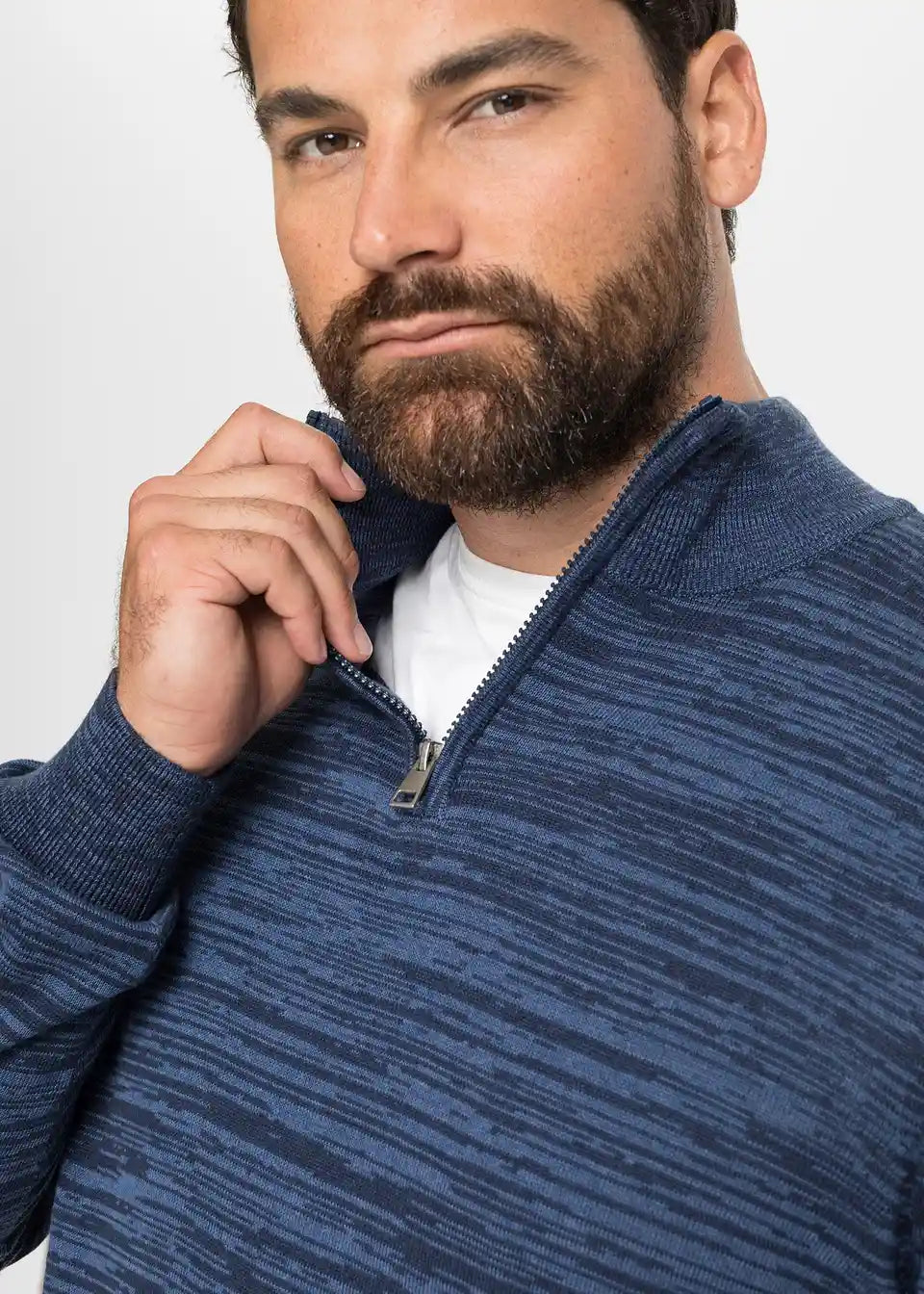 Melanž pulover s visokim ovratnikom s patentnim zatvaračem i pamukom