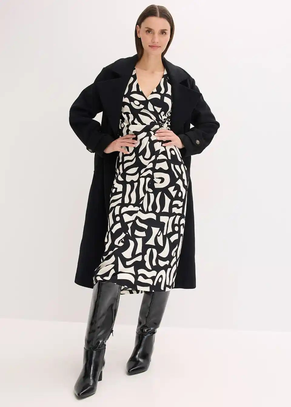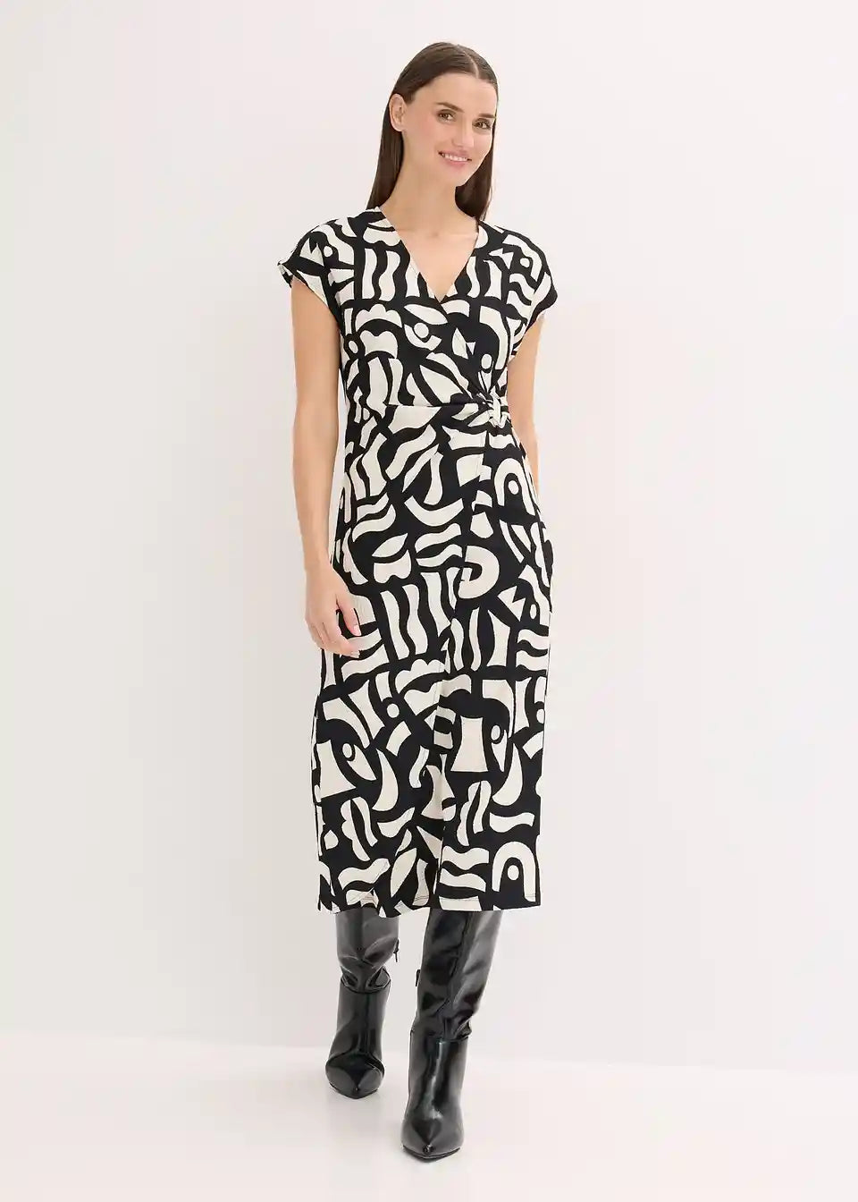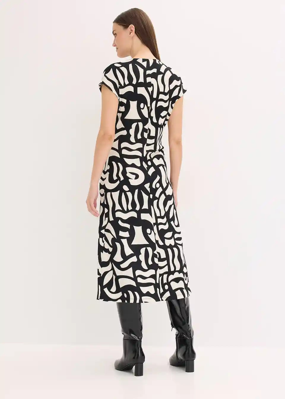 Grafički tiskana midi haljina s dekorativnim prsten-detaljem sa strane u struku