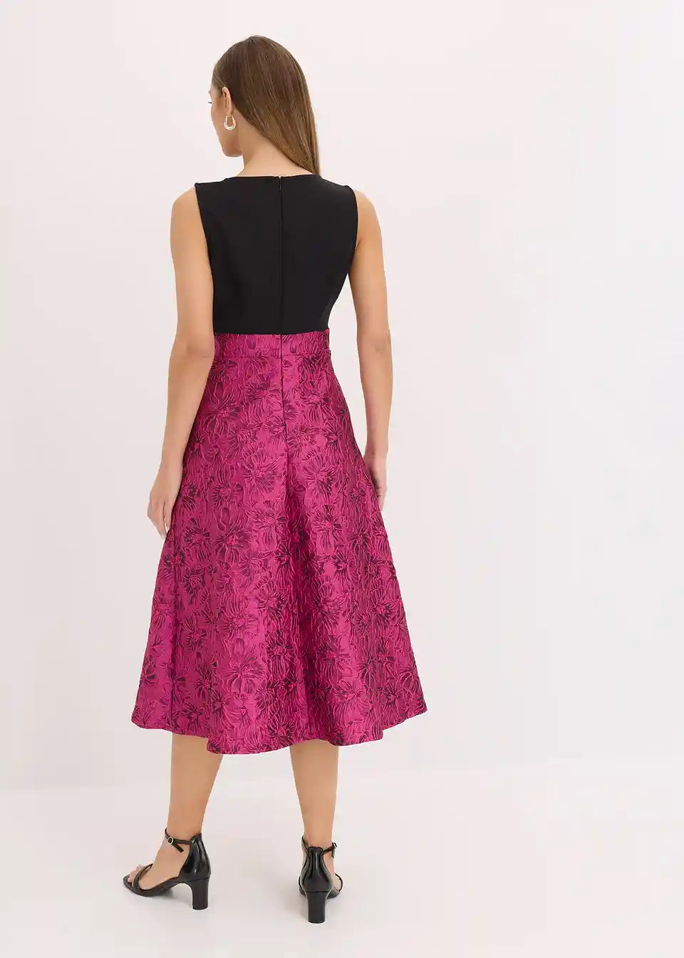 Moderna i ženstvena: koktel haljina midi dužine s lepršavom suknjom od sjajnog žakarda