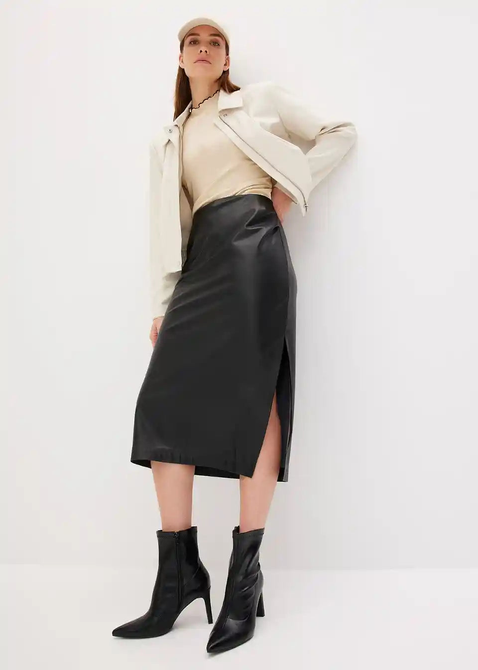 Midi suknja od imitacije kože