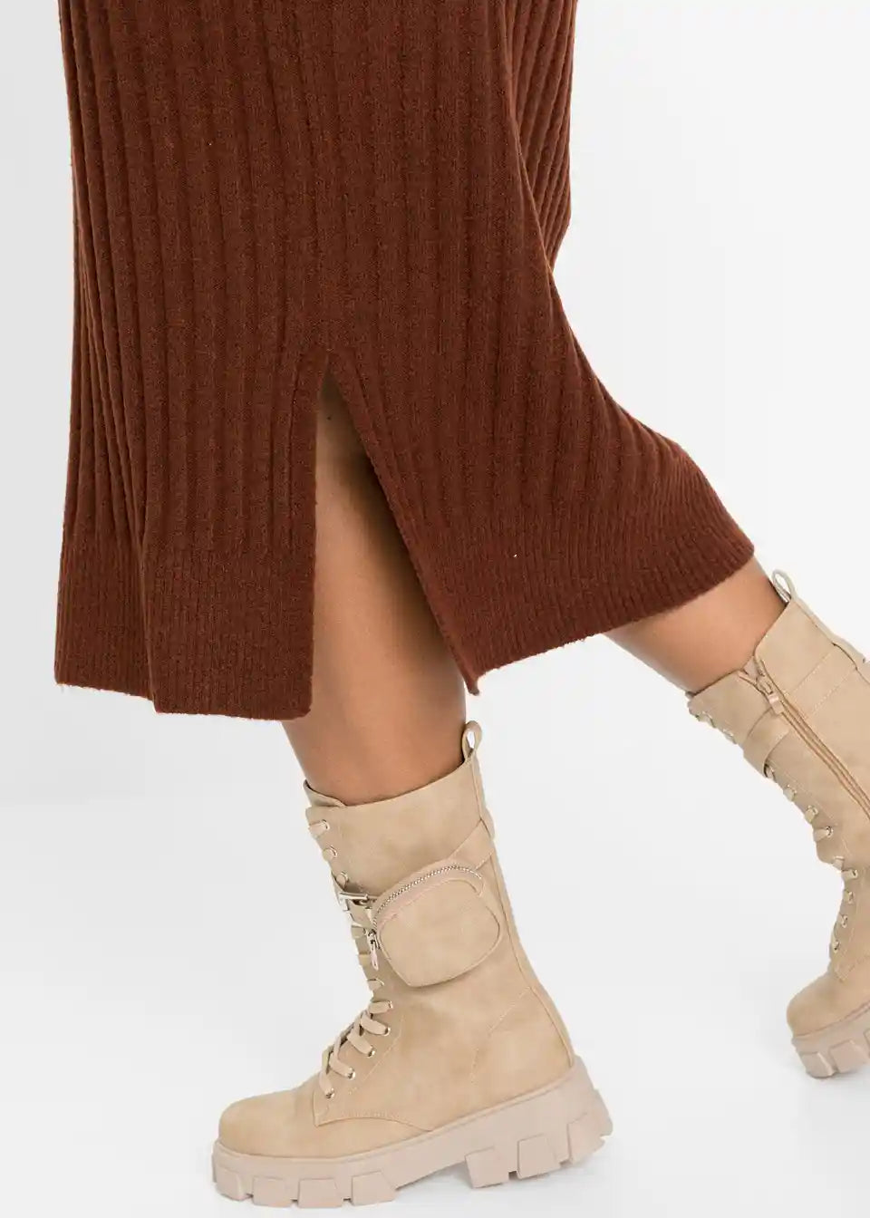 Midi pletena haljina s prorezom i V-izrezom