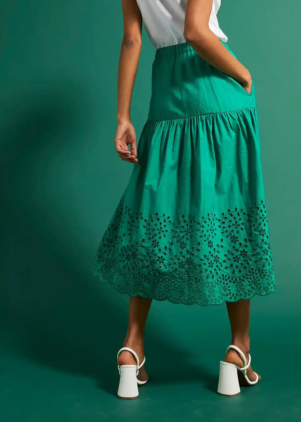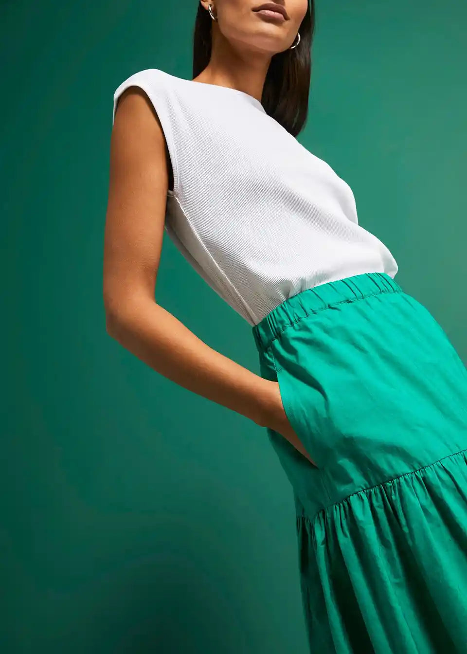 Zavodljiva midi suknja u A-kroju s elastičnim pojasom.