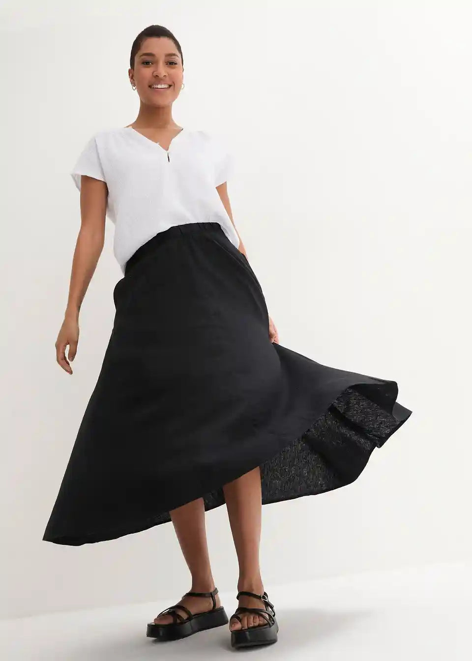 A-kroj suknje od prozračnog lanenog miksa obavija tijelo svake siluete