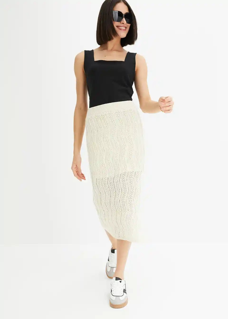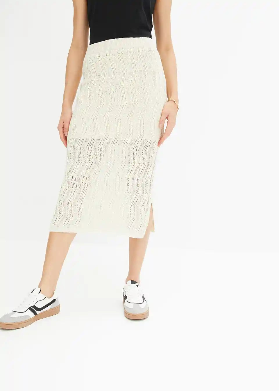Midi suknja s rupičastim pletenim uzorkom