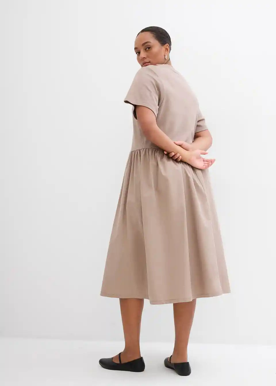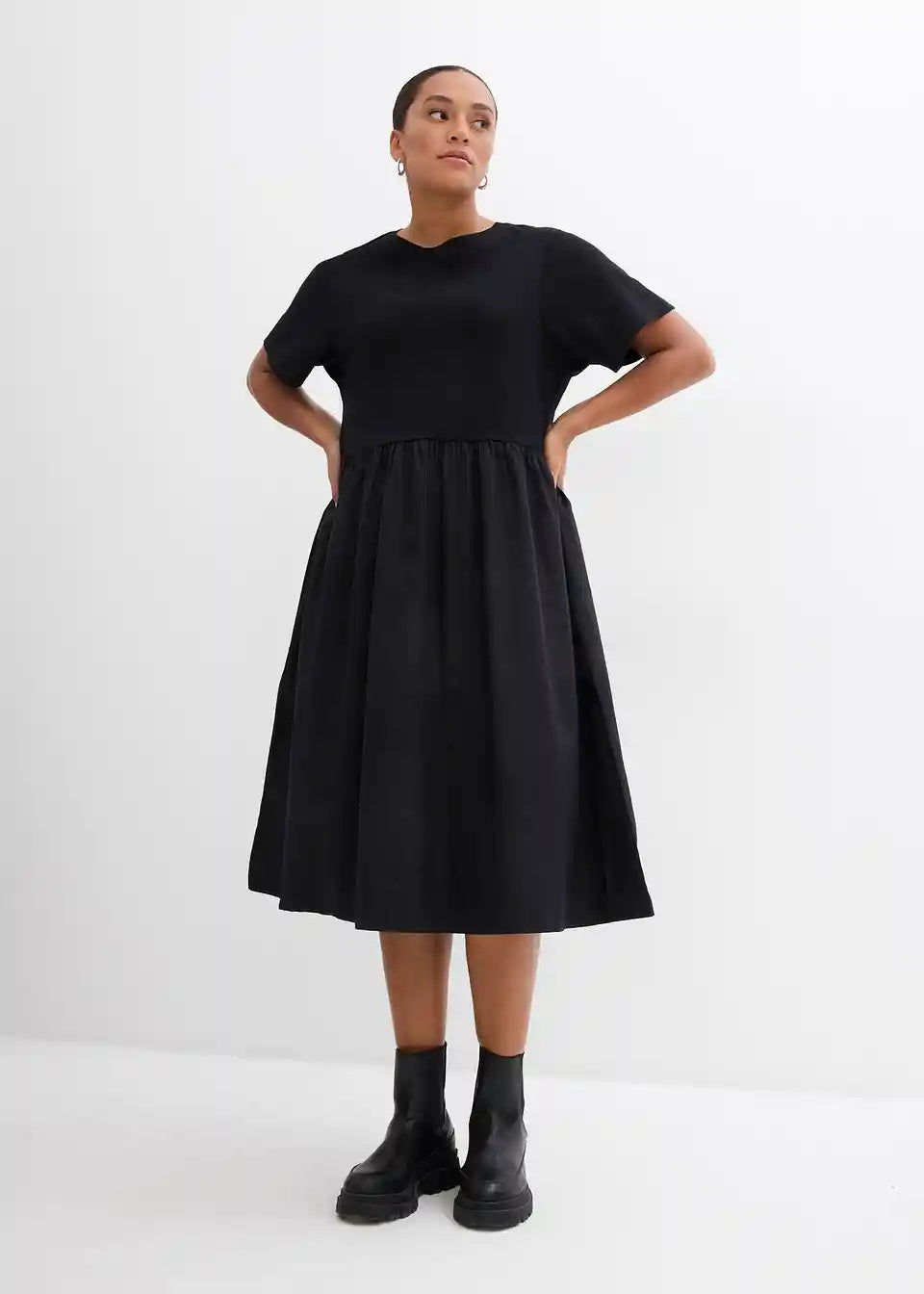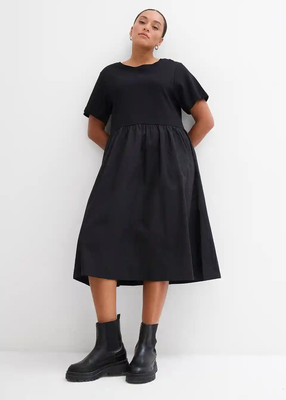 Midihaljina s dugim rukavima i kontrastnim umetkom