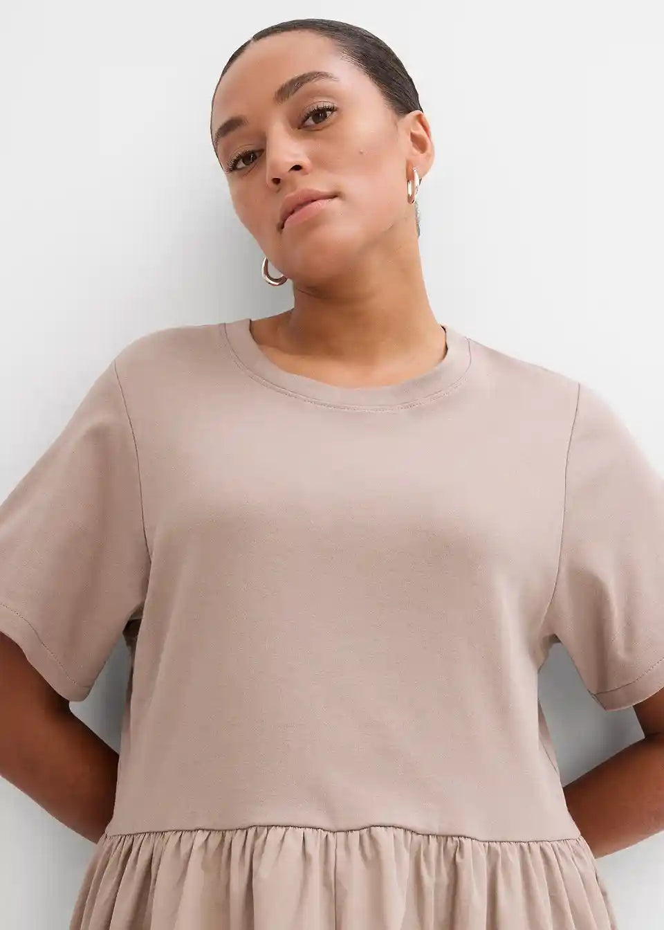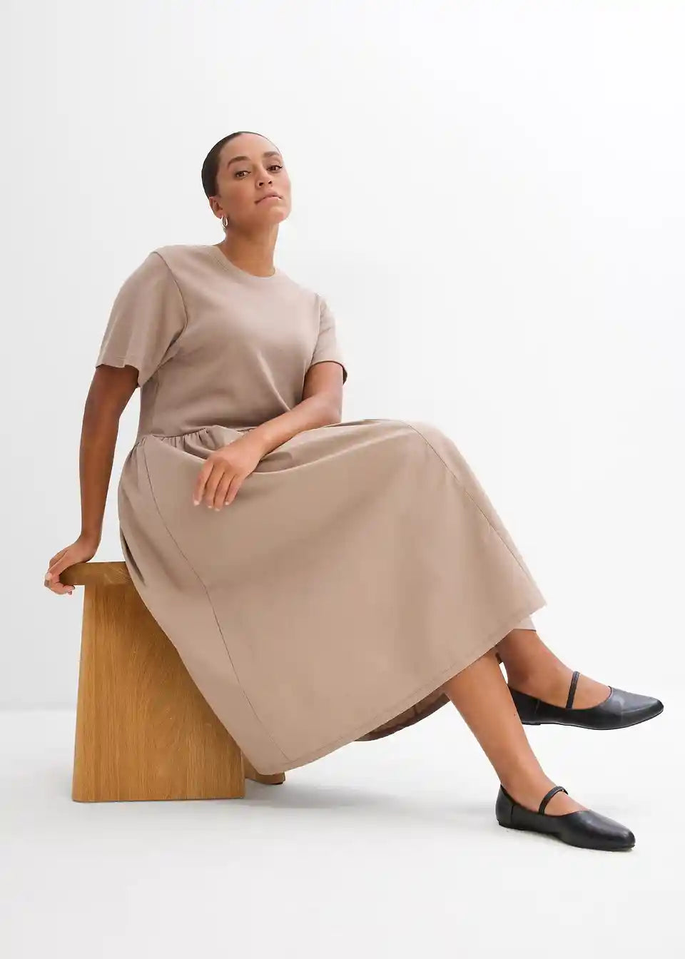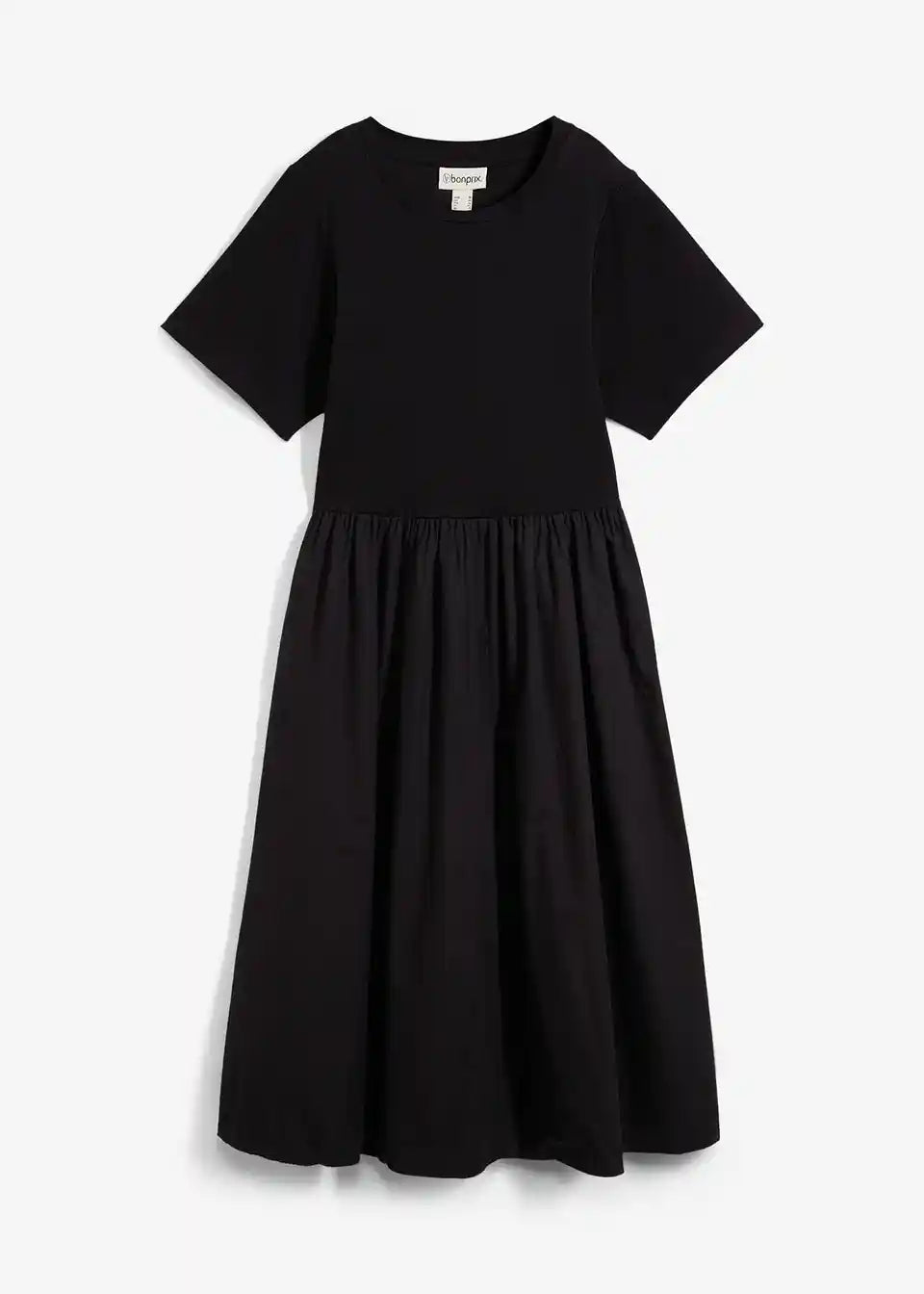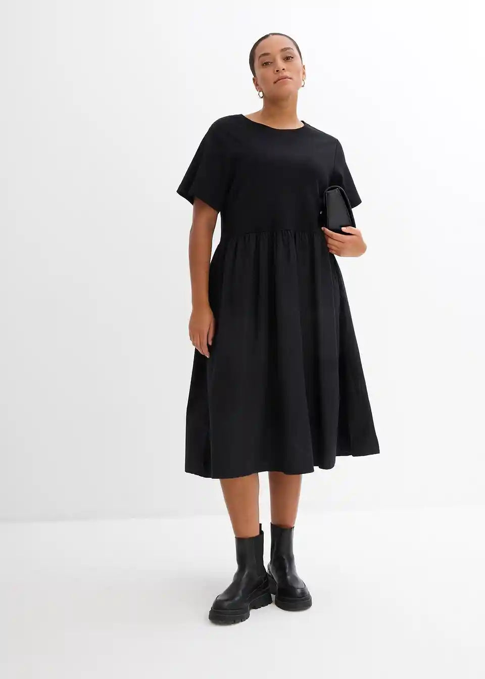 Midihaljina s dugim rukavima i kontrastnim umetkom