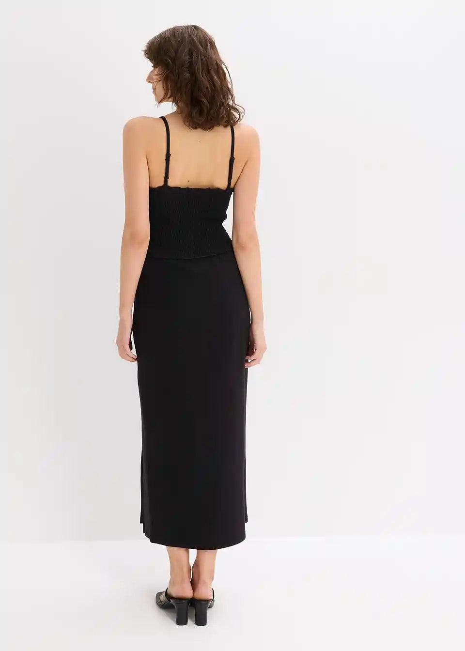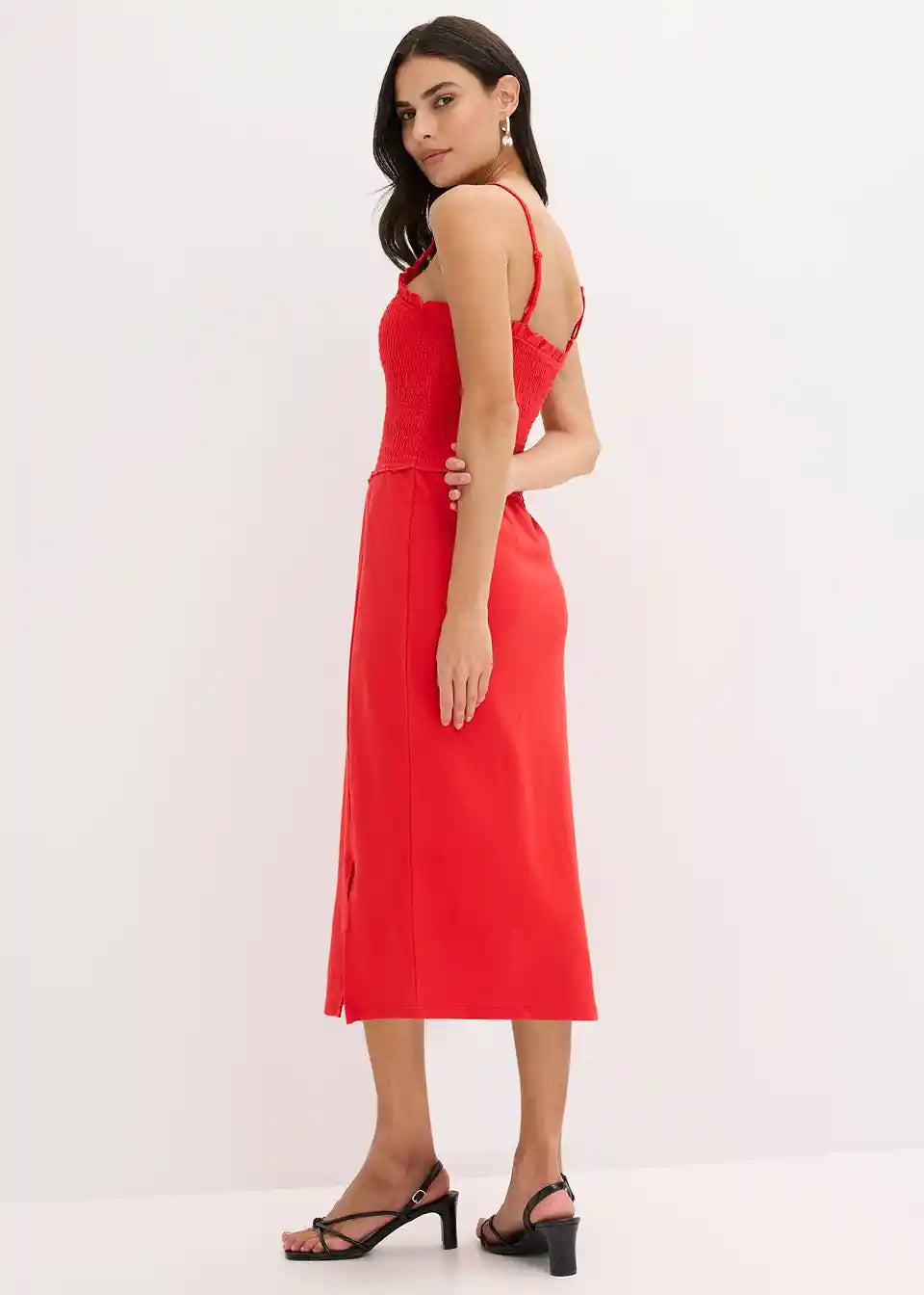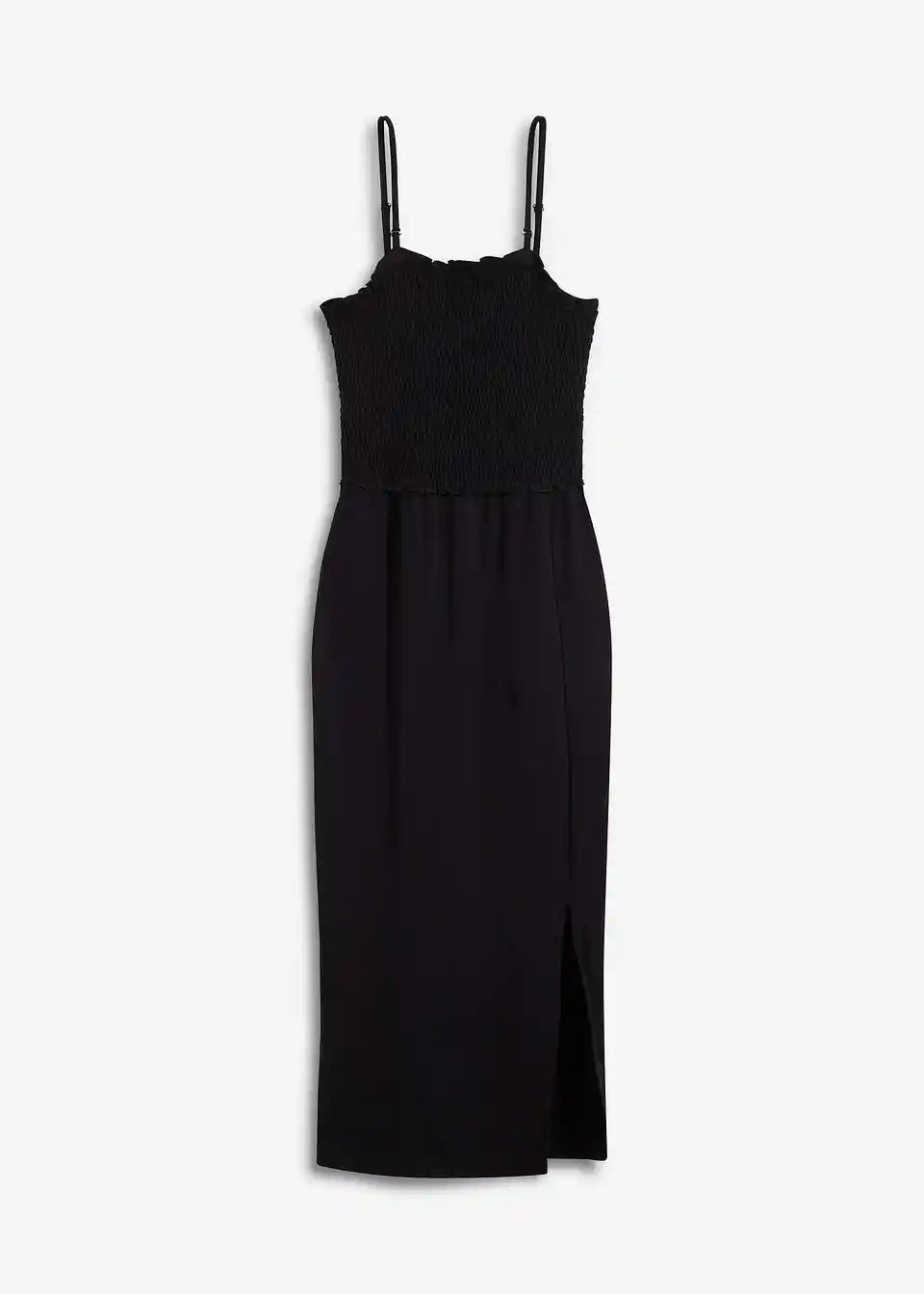 Midi haljina od kompaktnog jerseya s umetkom od gustih nabora i prorezom